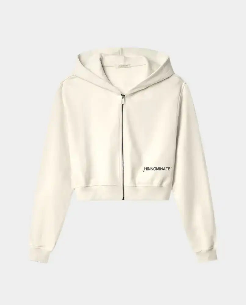 Felpa corta con cappuccio firmata Hinnominate, realizzata in 100% cotone color nocciola. Dotata di zip frontale e stampa logo sul lato sinistro, offre uno stile pulito e versatile, perfetto per abbinamenti casual e streetwear.