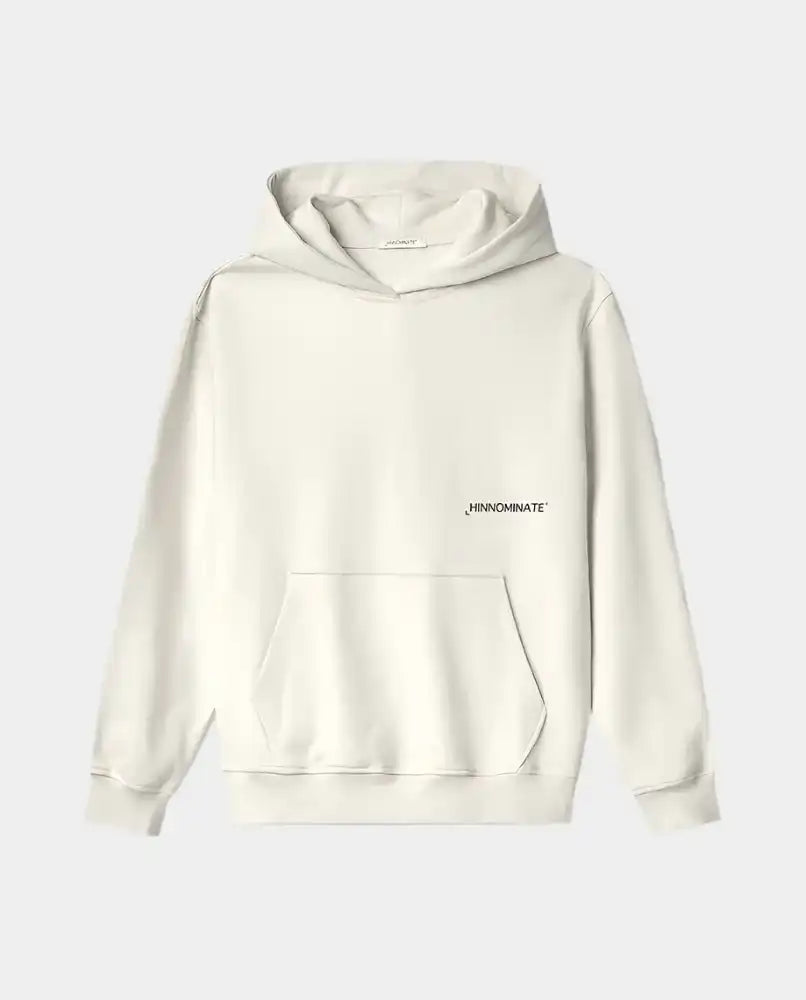 Felpa Hinnominate in cotone color bianco panna, con cappuccio fisso e logo stampato sul lato sinistro. Caratterizzata da una pratica tasca a marsupio e vestibilità regolare, è un capo versatile perfetto per uno stile casual essenziale.