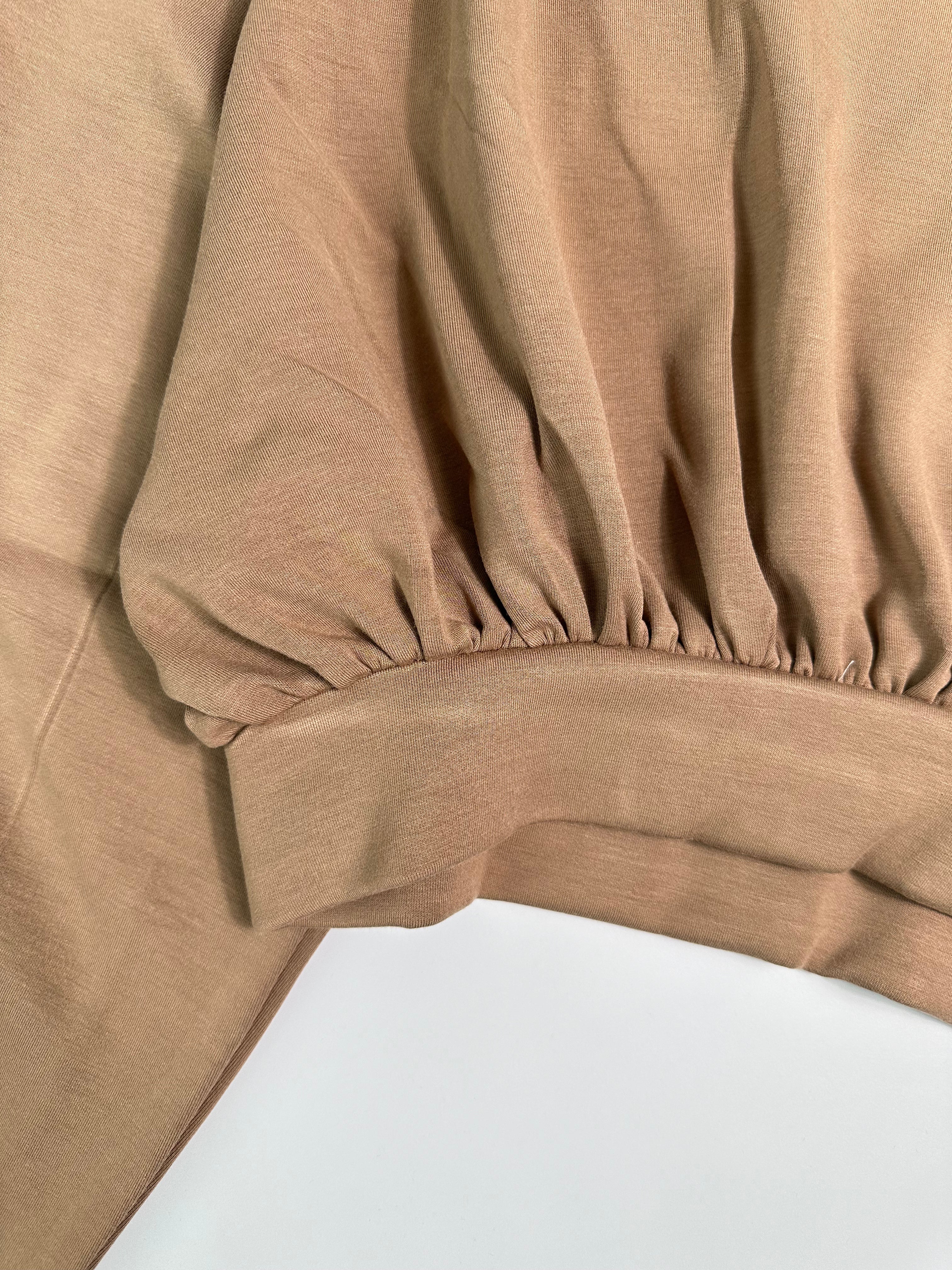 Felpa cropped firmata Hinnominate in color tortora, dal design moderno e femminile. Il modello presenta una linea girocollo senza cappuccio, maniche a sbuffo con polsini aderenti ed elastico in vita per un fit rilassato ma definito. Il logo Hinnominate è stampato sulla manica, aggiungendo un dettaglio distintivo a un capo perfetto per look casual contemporanei.