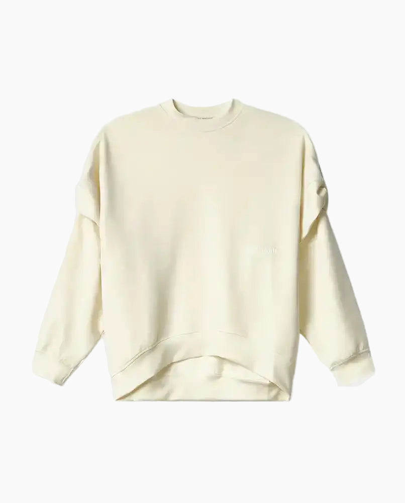 Felpa paricollo firmata Hinnominate, realizzata in tessuto modal dalla mano morbida e fluida. Il modello presenta una silhouette confortevole con spalle leggermente arricciate e una stampa rigonfiante tono su tono sul lato cuore, per un effetto raffinato ed essenziale.