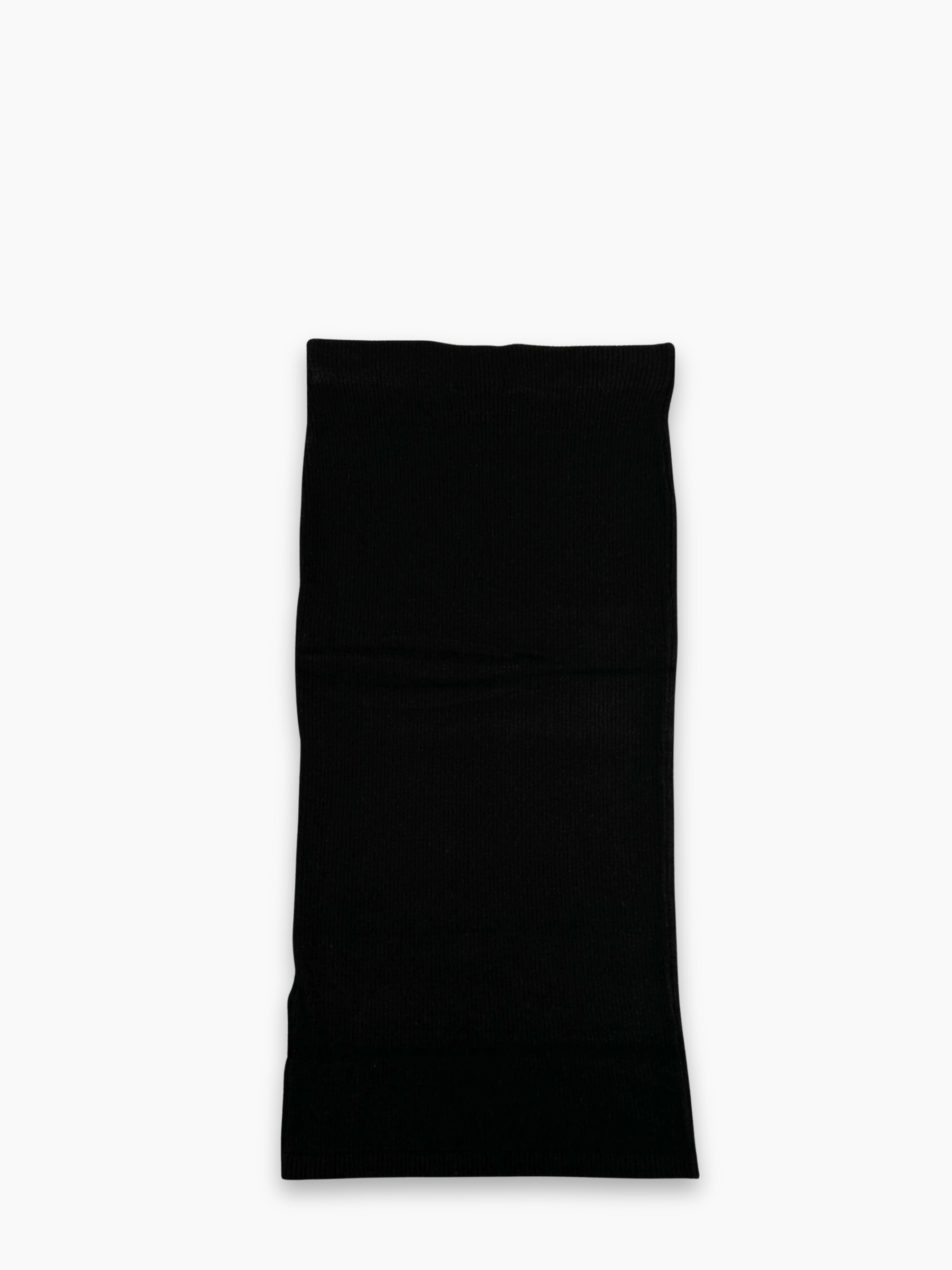 Gonna lunga in maglia a costine color nero con linea aderente e vita elasticizzata. Il design minimal e la texture morbida la rendono perfetta per look eleganti ma rilassati. Da indossare con top o maglie coordinate per un effetto total knit sofisticato e contemporaneo.
