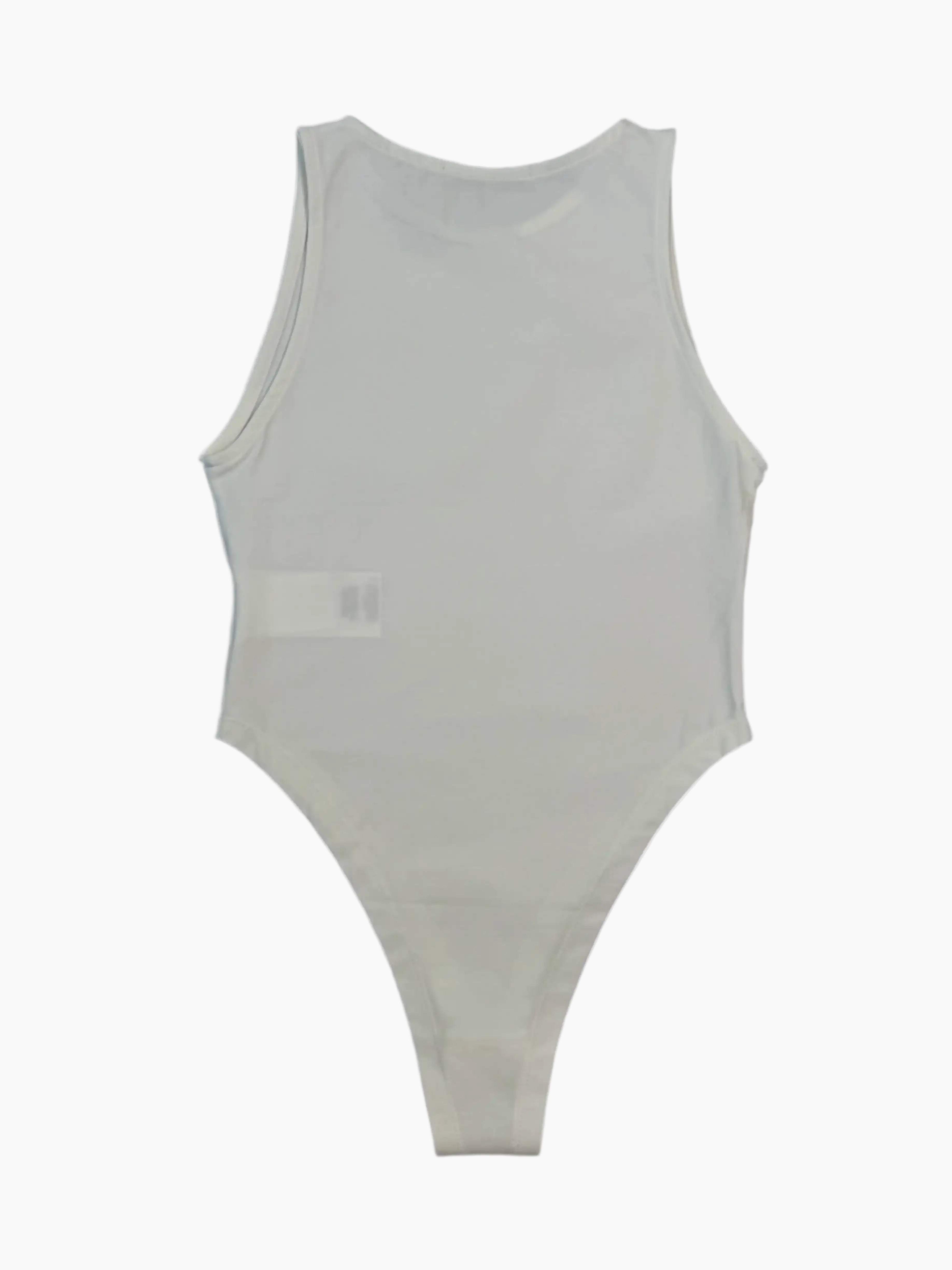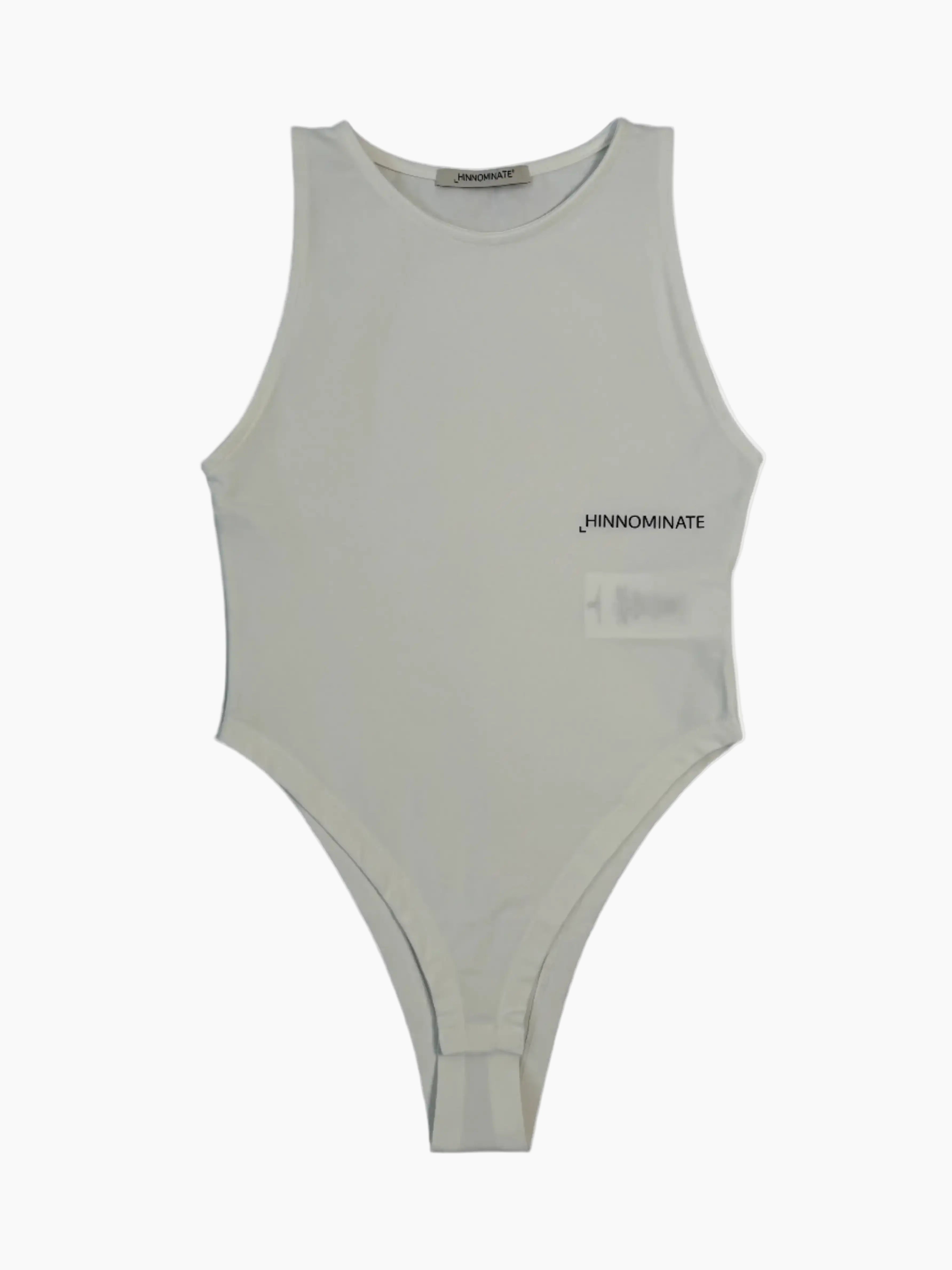 Questo body smanicato bianco si distingue per il design minimal e versatile. Realizzato in tessuto bielastico, aderisce perfettamente al corpo garantendo comfort e libertà di movimento. Il logo Hinnominate stampato in nero sul petto aggiunge un dettaglio grafico deciso. Dotato di chiusura a bottoni automatici al cavallo, è perfetto da abbinare a pantaloni o gonne a vita alta per un look pulito e contemporaneo.
