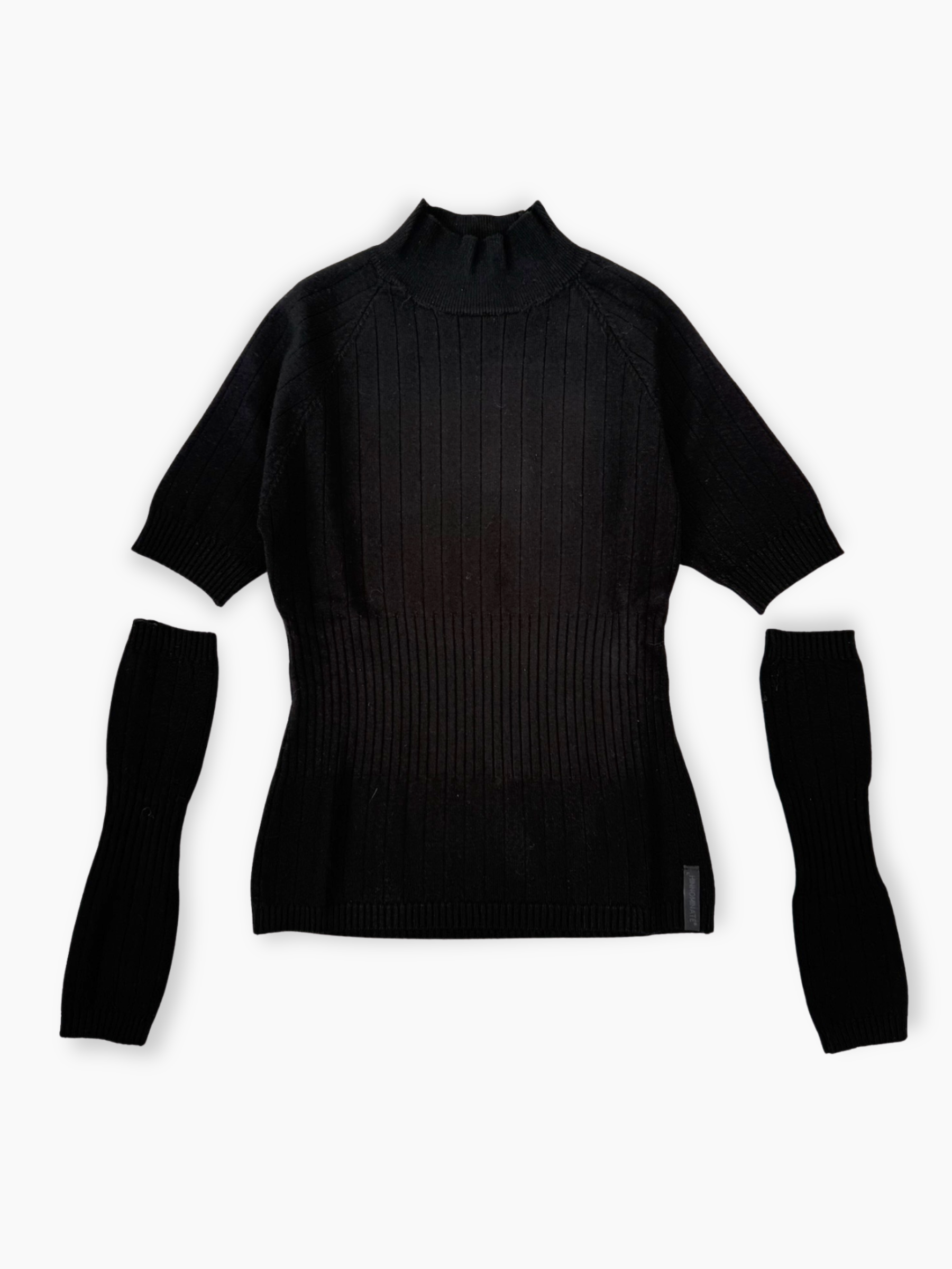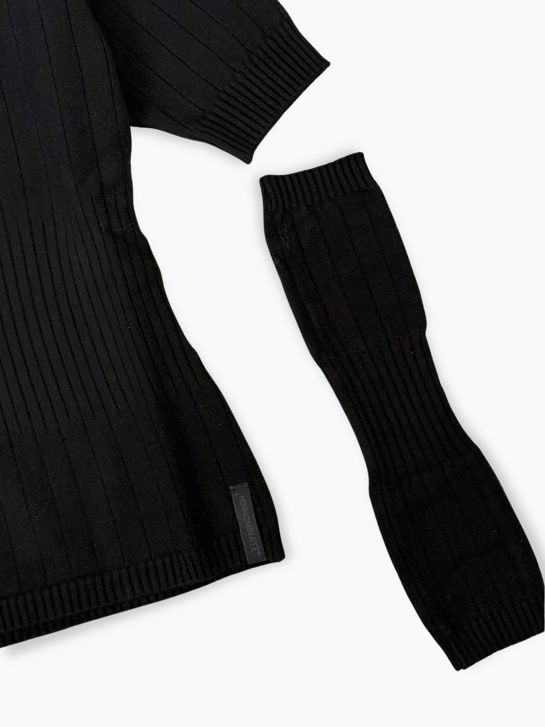 Minimal ma d’impatto, questa maglia nera Hinnominate in costina mossa unisce silhouette slim e dettagli trasformabili. Il design a maniche corte si completa con manicotti removibili, perfetti per cambiare stile in base all’occasione. Il collo alto e la struttura elasticizzata donano comfort e una vestibilità che valorizza la figura.
