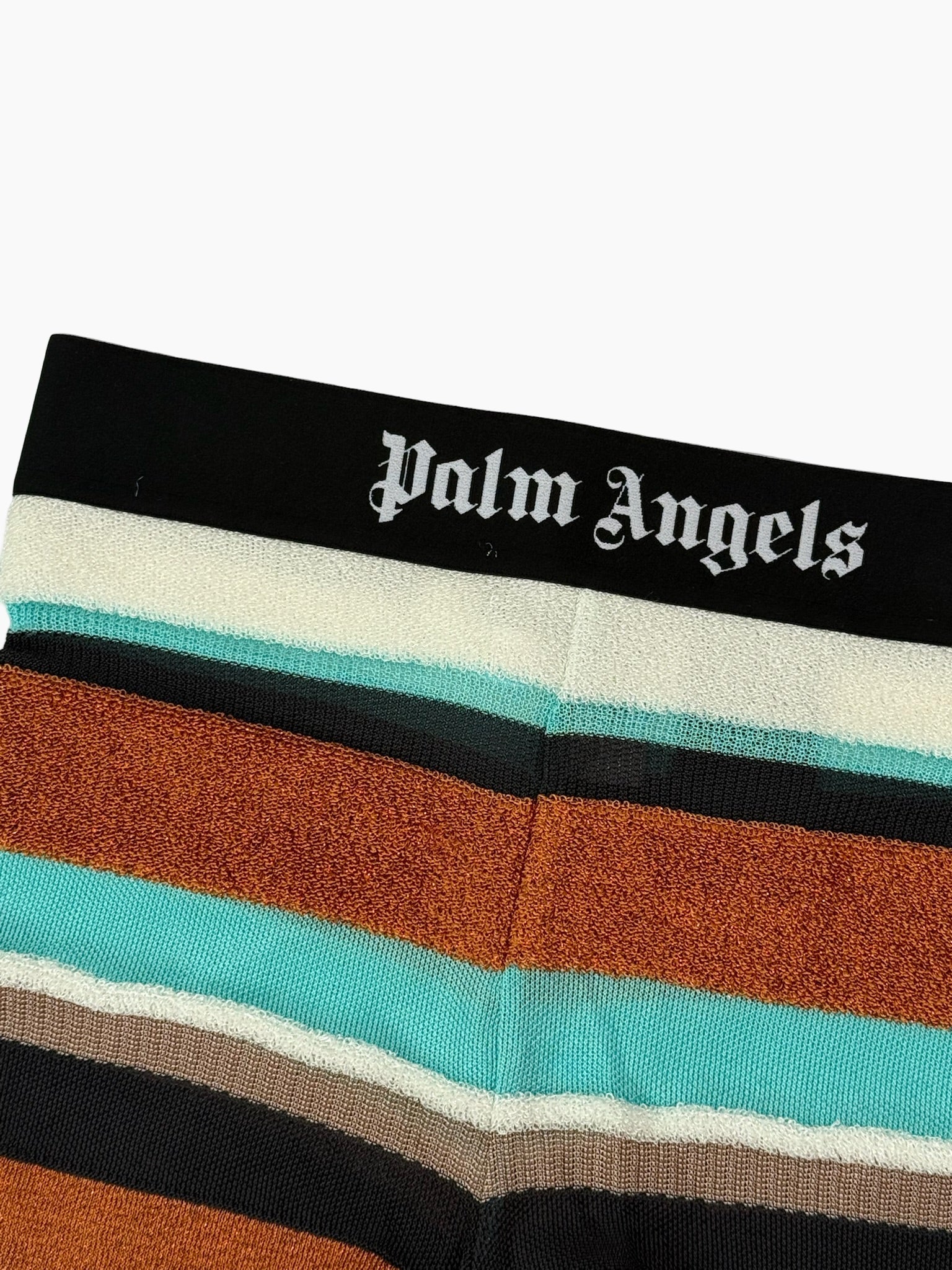 Short aderenti in maglia elasticizzata con motivo a righe multicolor e lavorazione in lurex. Il dettaglio della fascia elastica in vita con logo a contrasto dona un tocco sporty e distintivo, perfetto per look audaci dal gusto Y2K.