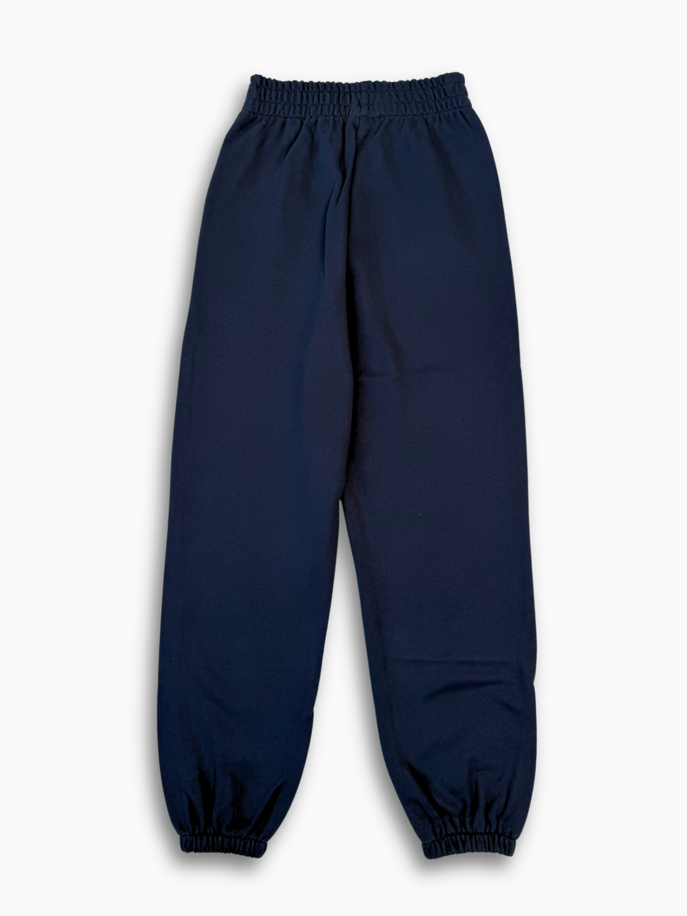 Pantalone in morbida felpa color blu con vita elasticizzata e fondo gamba con elastico. Il logo stampato sul davanti aggiunge un tocco essenziale ma distintivo al design minimal. Un capo comodo e versatile, ideale per il tempo libero o per completare look sporty-chic.