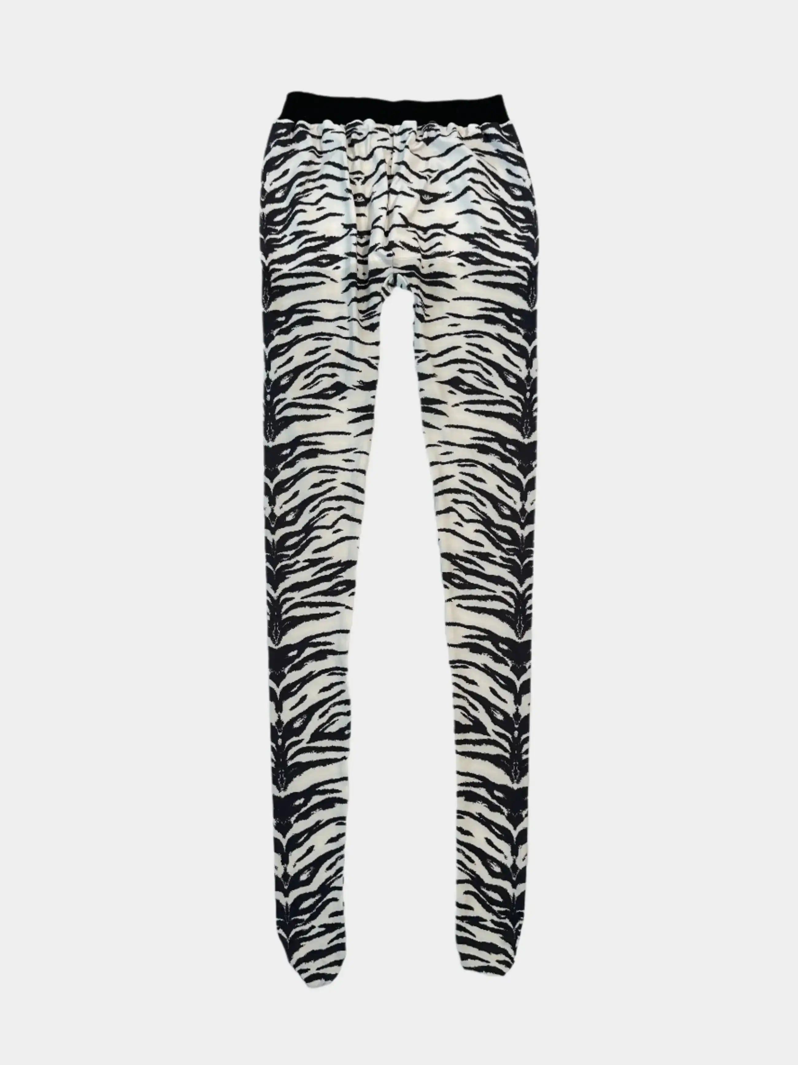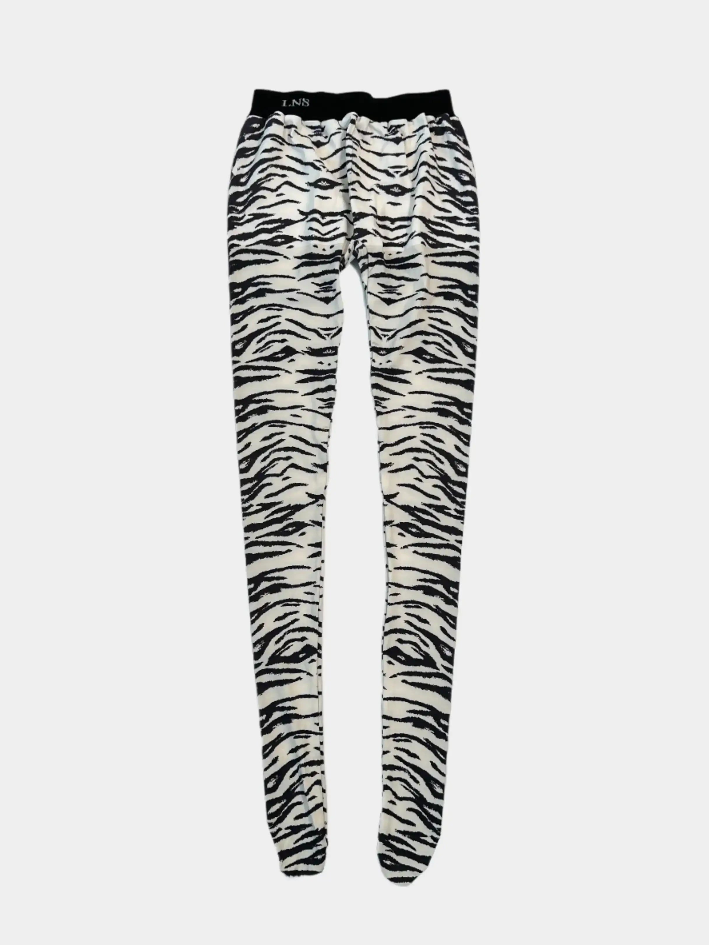 I leggings Laneus con stampa zebrata sono pensati per chi ama uno stile deciso e contemporaneo. Realizzati in maglia elasticizzata, presentano una fascia in vita con logo “L.NS” a contrasto. Il taglio aderente valorizza la silhouette e rende il capo perfetto sia per l’uso quotidiano che per look più audaci.