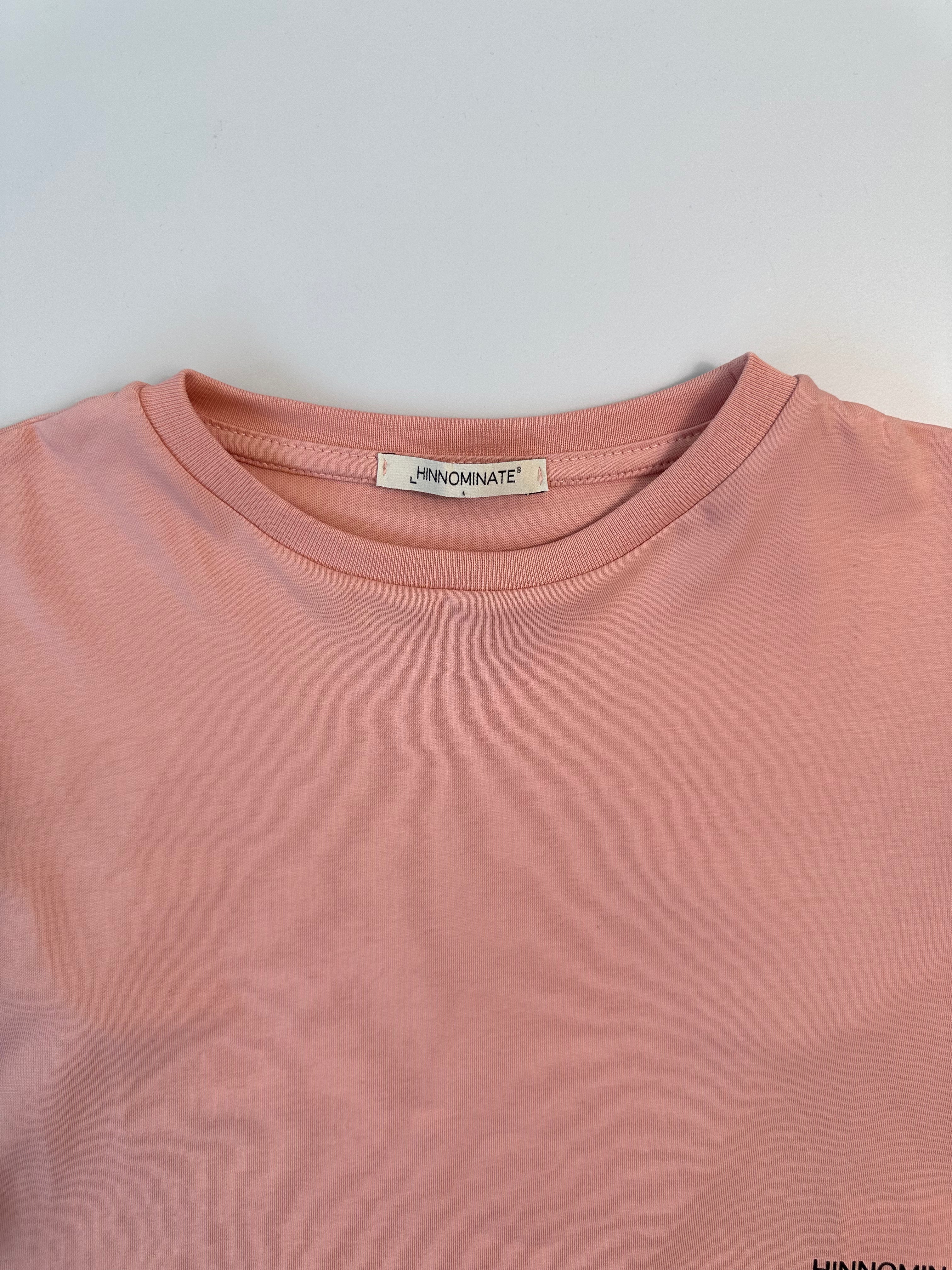 Crop top in jersey color rosa con maniche lunghe e stampa frontale. Un capo dal taglio corto e dalla vestibilità aderente, perfetto per completare look casual e femminili con un tocco streetwear.