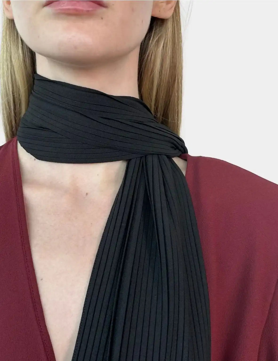 • Profondo scollo a V con dettaglio che avvolge il collo