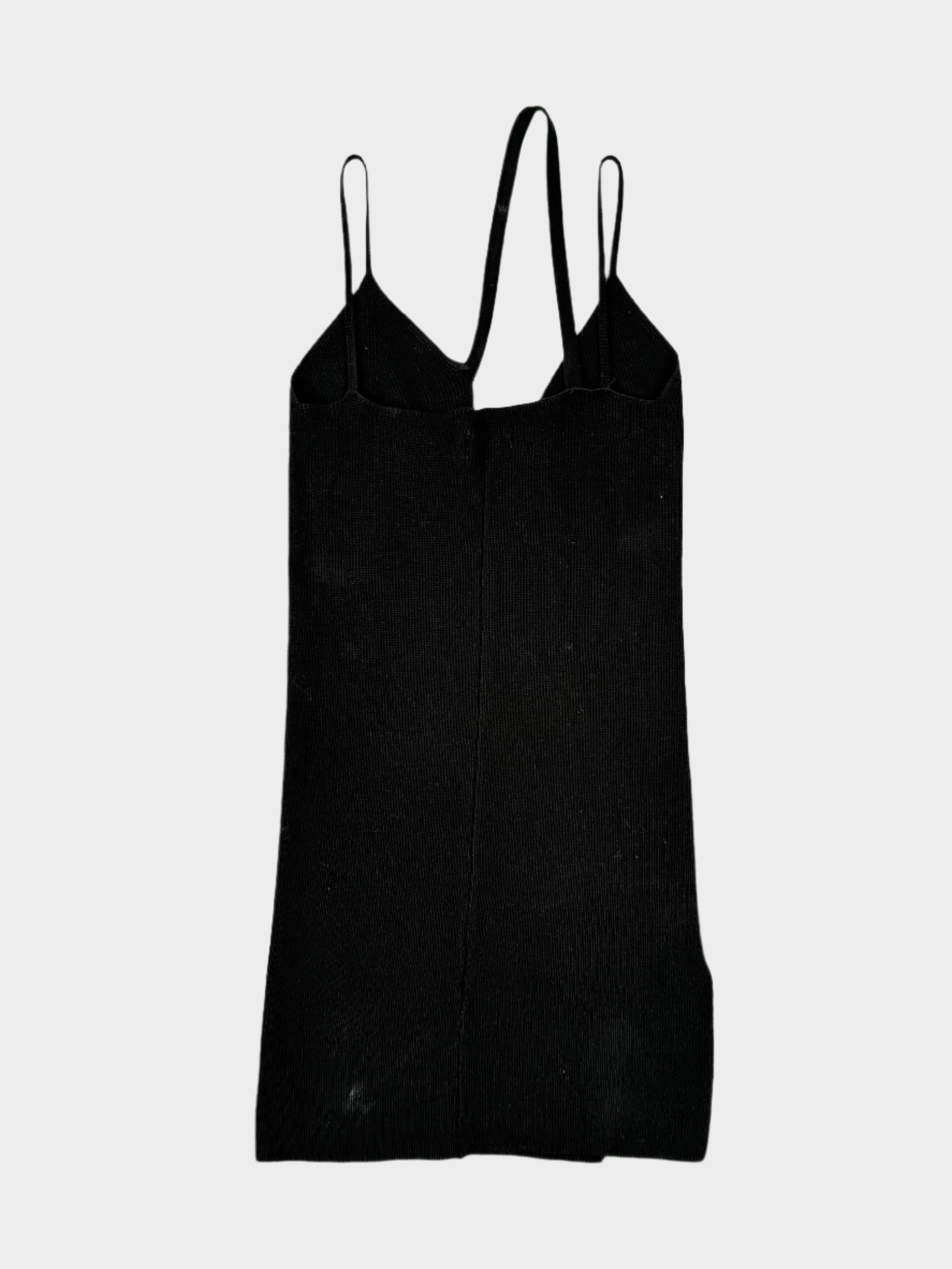 Essenziale ma ricercato, questo top nero in maglia firmato Laneus è perfetto per valorizzare ogni look con un tocco contemporaneo. Realizzato in cotone elasticizzato, è caratterizzato da una linea fasciante, spalline sottili e uno spacco laterale che aggiunge dinamismo e femminilità. Ideale da indossare con pantaloni a vita alta o gonne midi per un effetto chic e moderno.