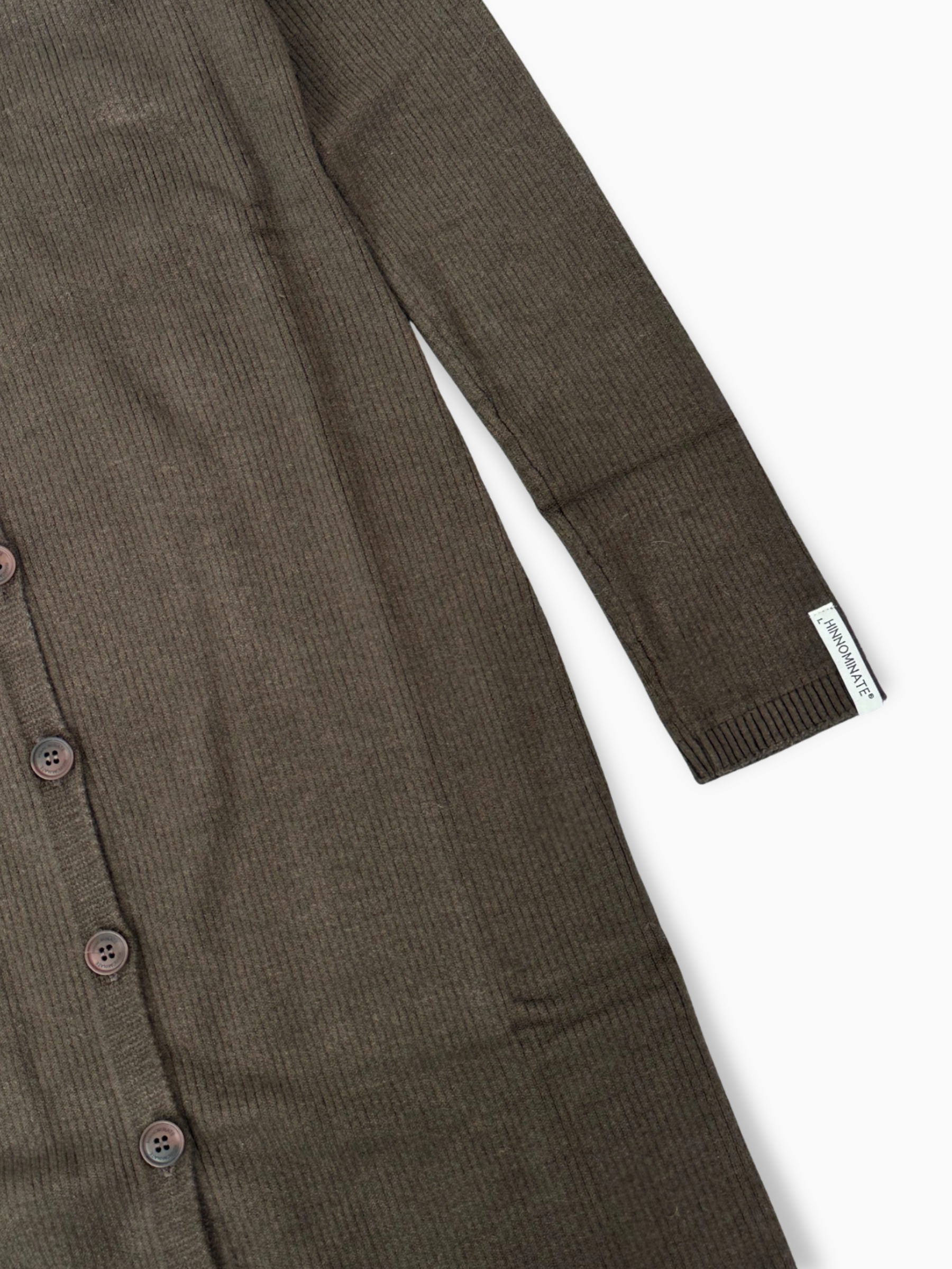 Un abito in maglia che unisce comodità e stile essenziale. Questo modello firmato Hinnominate è realizzato in tessuto a costine e valorizzato da una fila di bottoni sul davanti. Il colore marrone caldo lo rende perfetto per la stagione, da indossare sia con sneakers che con stivali.