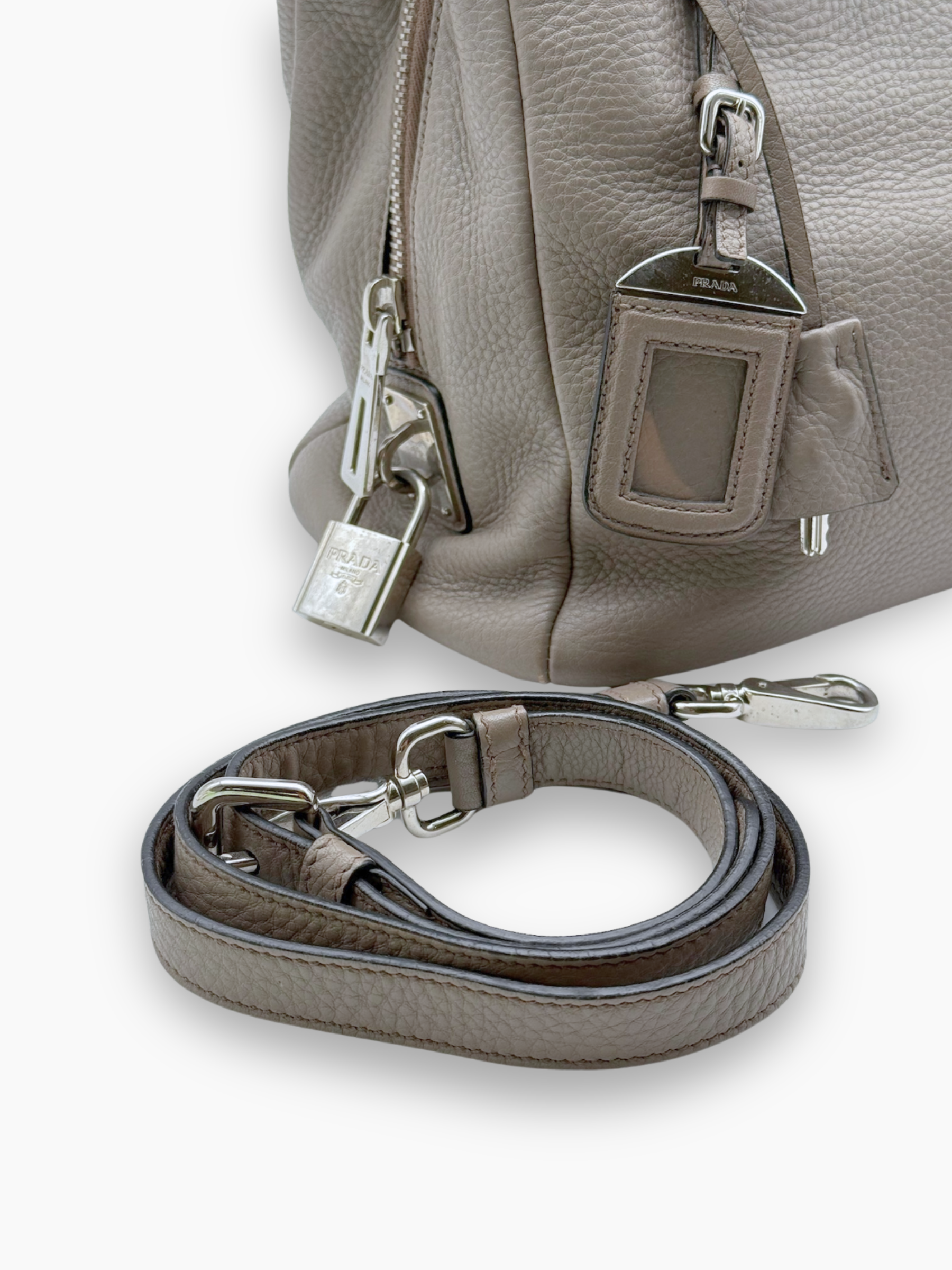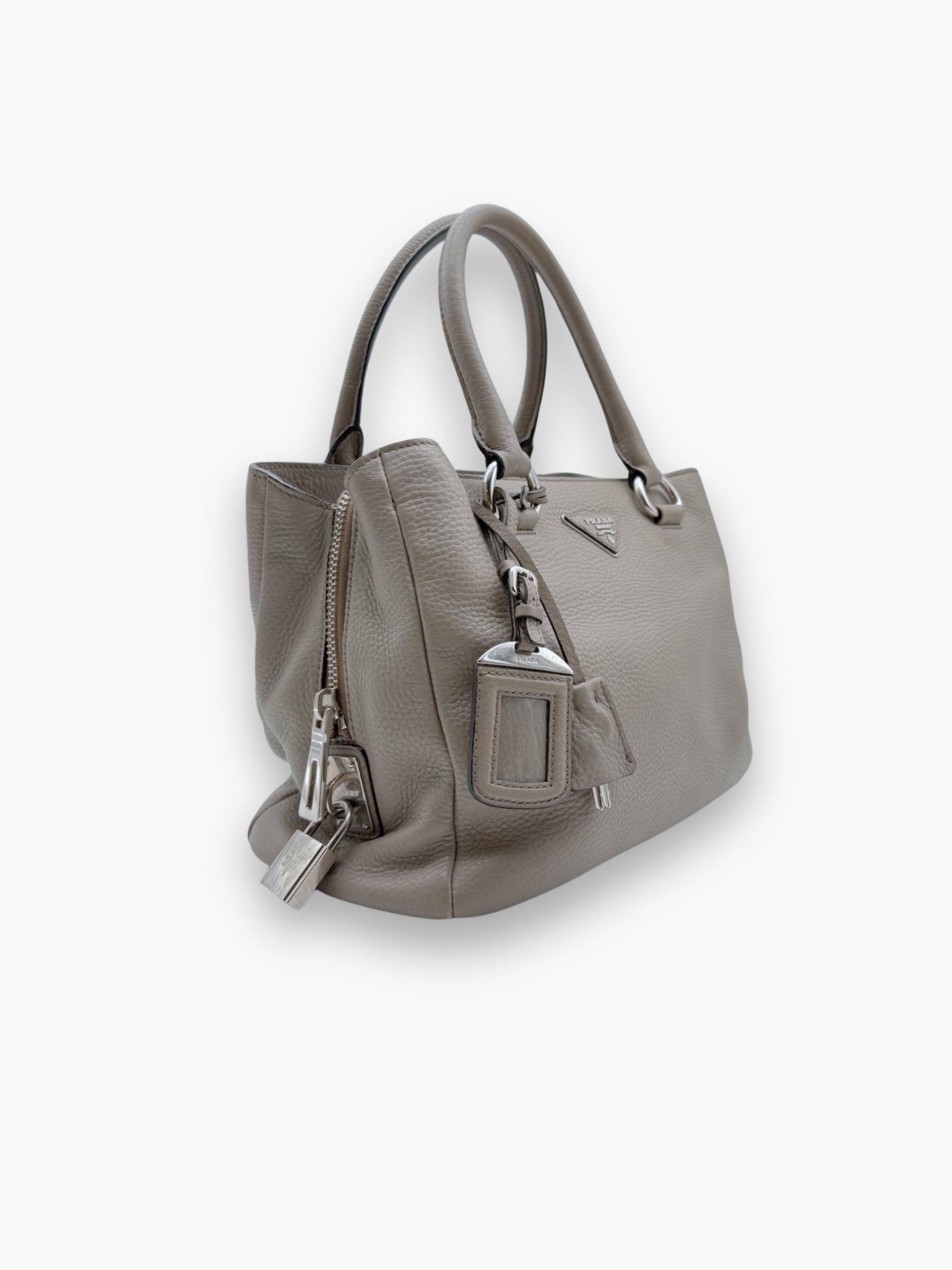 La borsa Prada Vitello Phenix Open Convertible Tote è caratterizzata da linee morbide e da una pelle liscia di altissima qualità. Un modello versatile, elegante e funzionale.