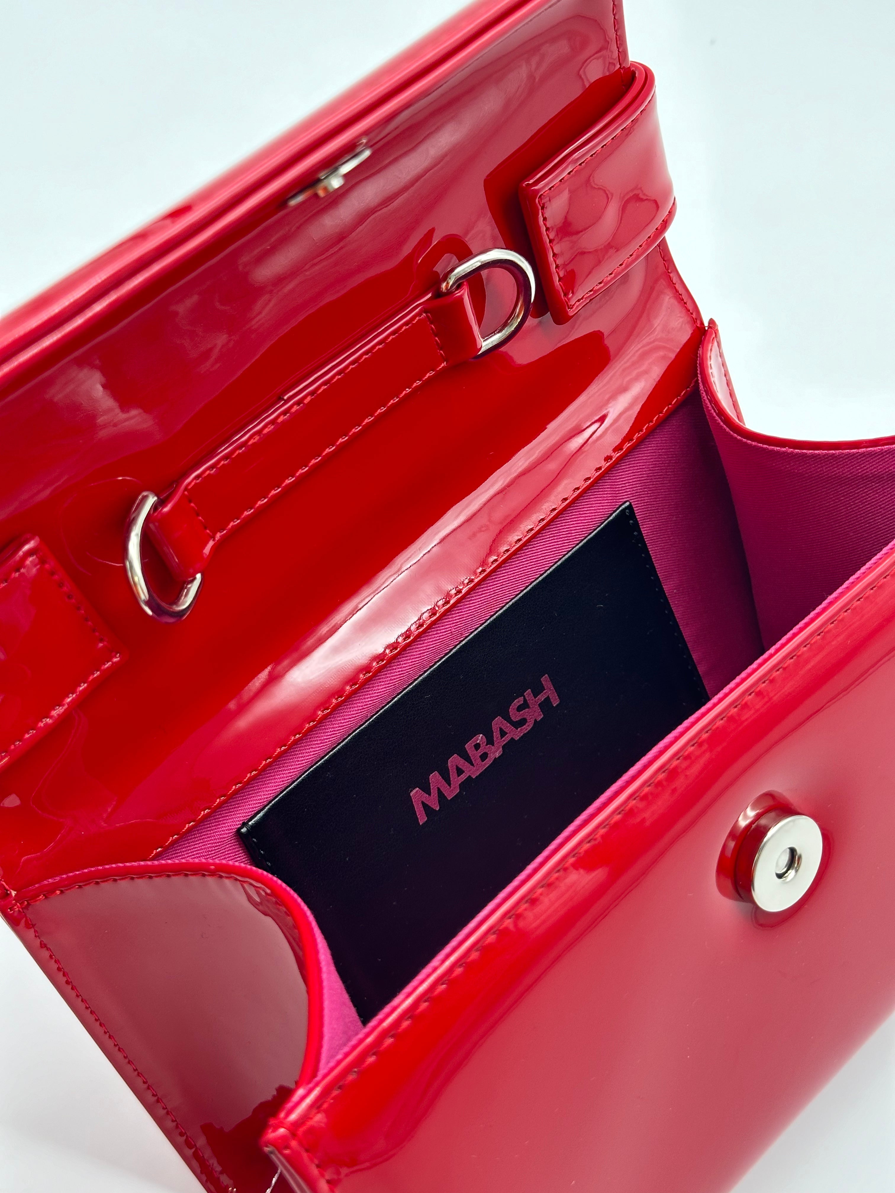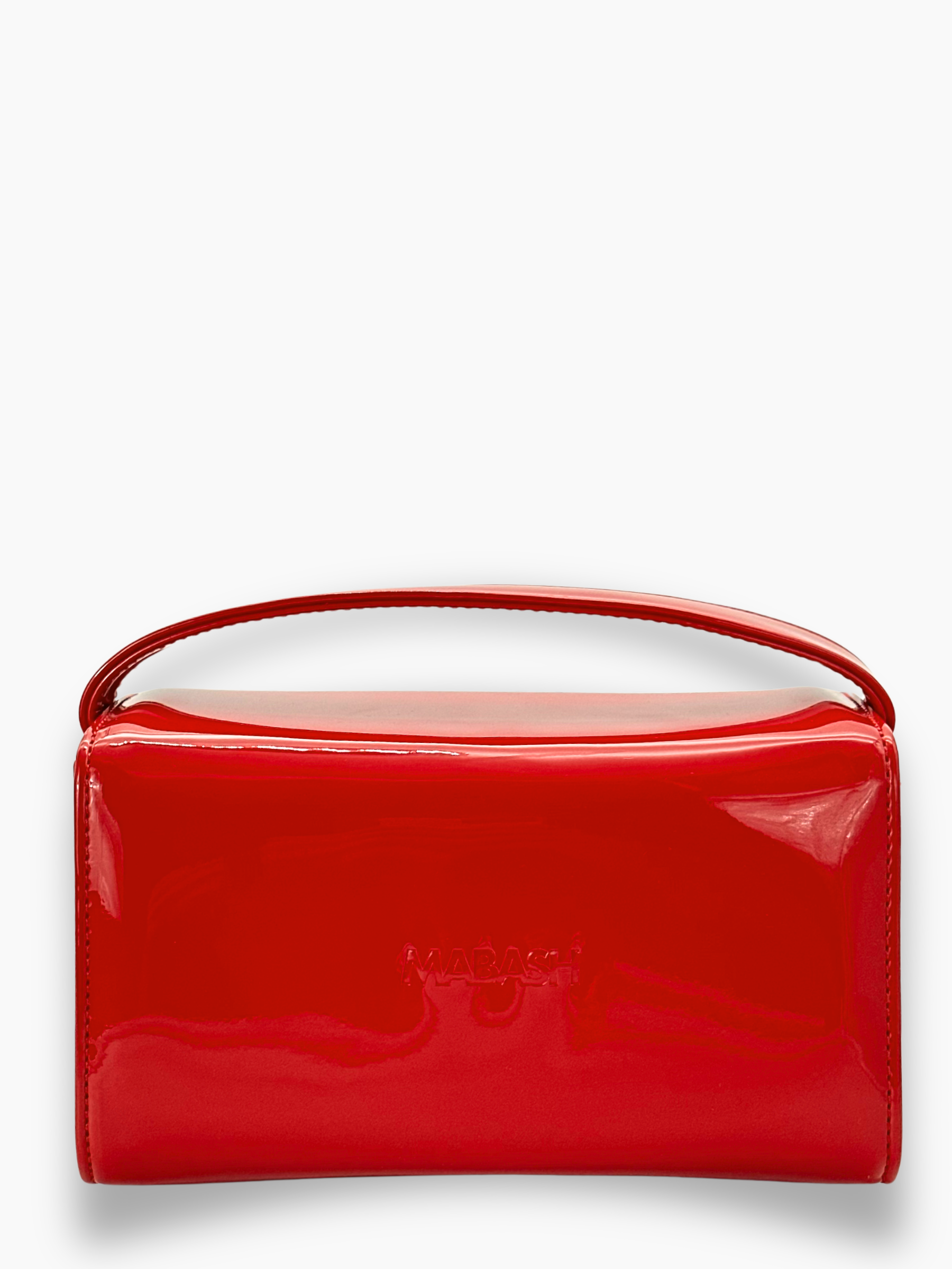 Borsa compatta in vernice lucida rosso brillante, dal design minimal e dalla struttura rigida. Il manico superiore ne esalta la linea pulita, rendendola perfetta per look serali o per aggiungere un accento vivace a outfit più sobri.