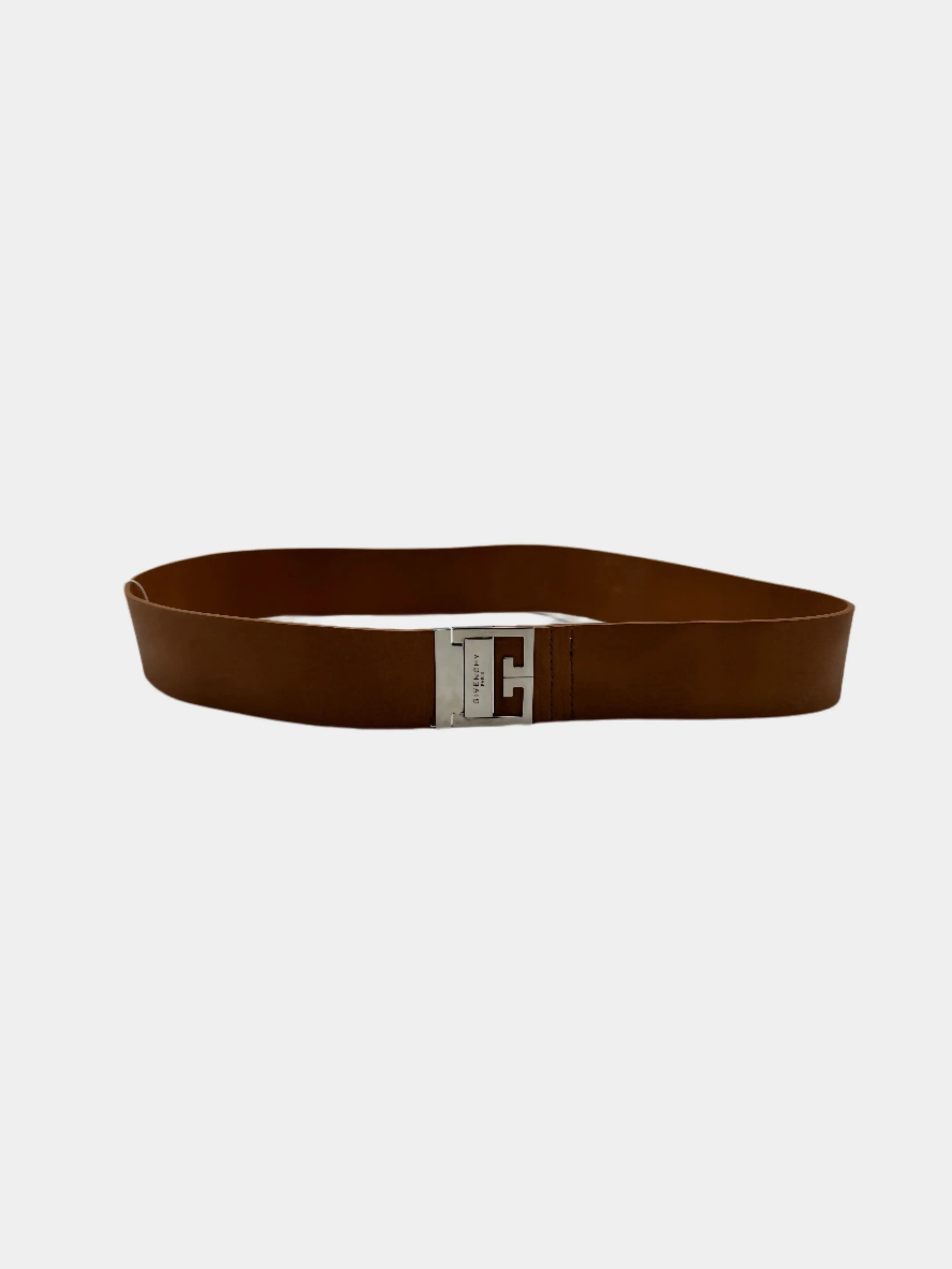 La cintura in pelle marrone di Givenchy unisce sobrietà e riconoscibilità grazie alla fibbia in metallo lucido a forma di G squadrata, emblema grafico della maison. Realizzata in pelle liscia di alta qualità, si distingue per le cuciture pulite e l’estetica lineare. Perfetta per valorizzare outfit eleganti o formali, aggiunge un tocco sofisticato e iconico al look.