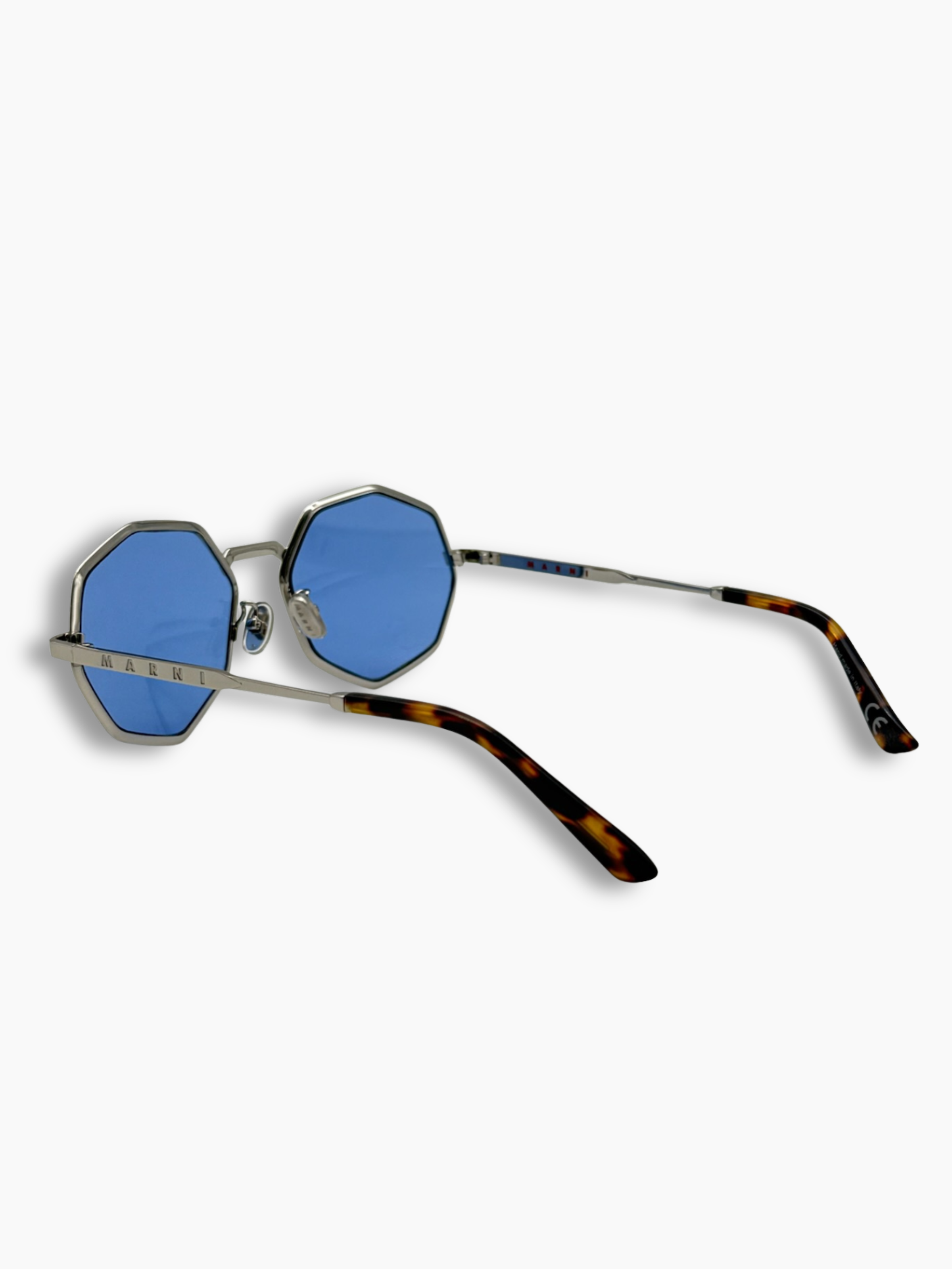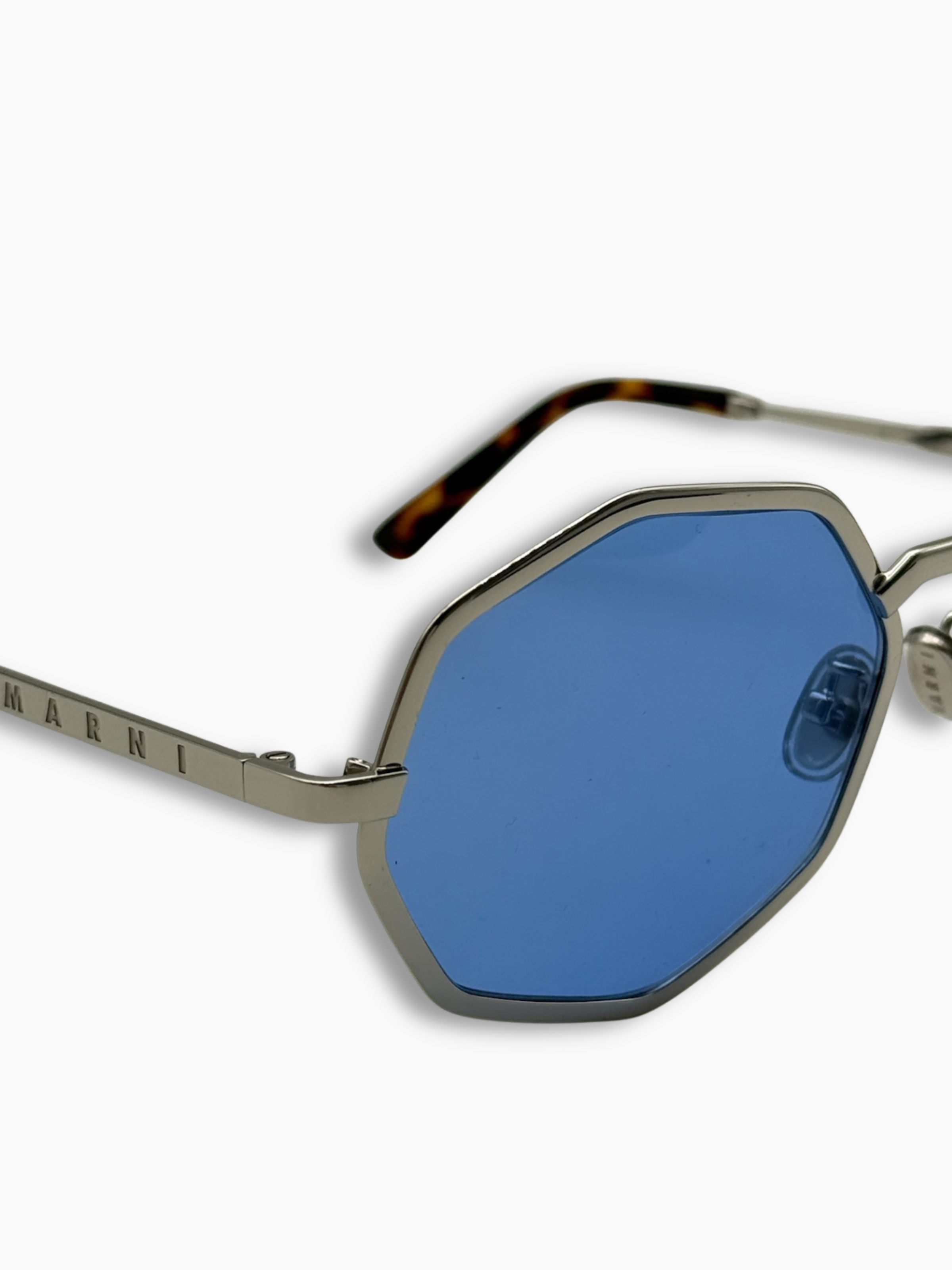 Dal design ricercato e dal carattere contemporaneo, questi occhiali da sole Marni uniscono linee architettoniche e dettagli raffinati. La montatura in metallo color argento si distingue per la forma geometrica delle lenti verdi, che donano un tocco moderno e sofisticato. Realizzati artigianalmente in Italia, rappresentano l’equilibrio perfetto tra stile, originalità e qualità.