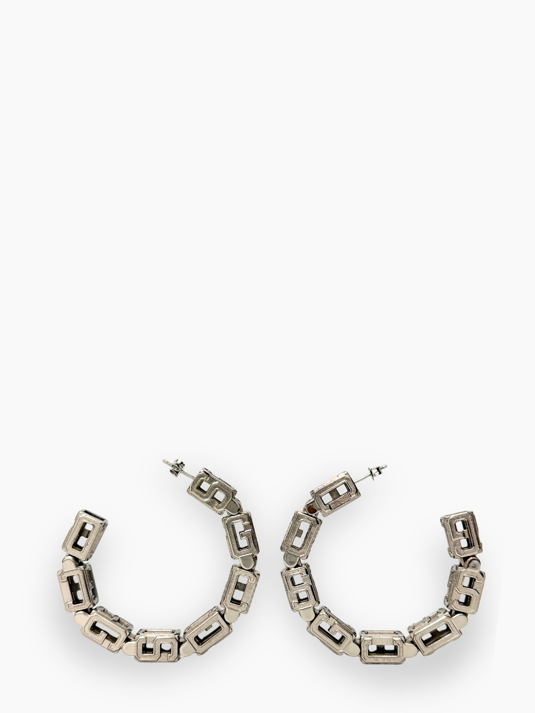 Orecchini a cerchio dal design strutturato e moderno, composti da una sequenza di maglie metalliche a forma di “G” che richiamano l’estetica iconica GCDS. Realizzati in finitura argento lucido, aggiungono carattere e brillantezza a qualsiasi look, perfetti per dare un tocco bold a outfit casual e serali.