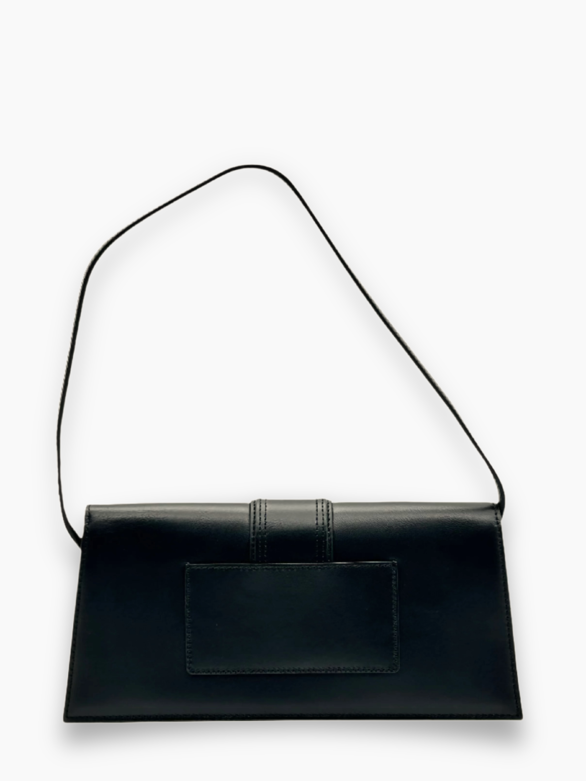 La borsa Jacquemus Le Bambino Long nera è un modello dal design minimale e sofisticato, realizzato in pelle opaca. Caratterizzata da una silhouette allungata con patta frontale e manico superiore rigido, è impreziosita dal logo Jacquemus in metallo dorato. Dotata di tracolla regolabile e rimovibile con moschettoni, presenta una chiusura magnetica con linguetta e un interno foderato con tasca piatta. Un accessorio versatile ed elegante, perfetto per look day-to-night, fornito con sacca antipolvere ed etichetta originale.