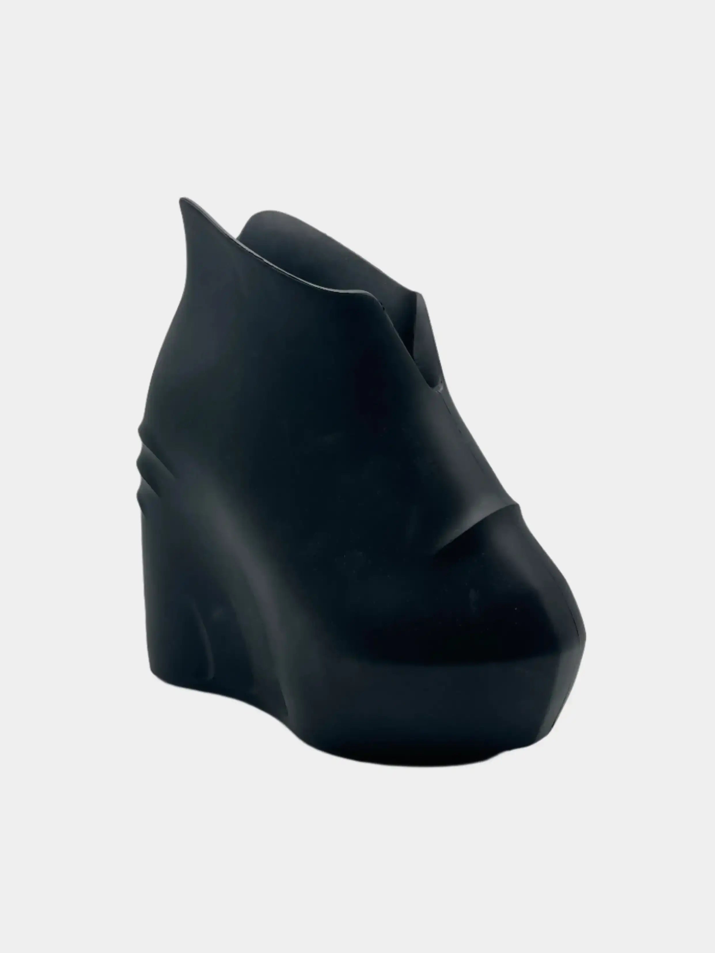 Questi stivaletti in gomma firmati Givenchy si distinguono per il loro design scultoreo e audace. Realizzati interamente in gomma nera, uniscono funzionalità e stile grazie alla silhouette voluminosa con suola alta e punta squadrata. Ideali per completare look contemporanei con un tocco avanguardistico, sono perfetti anche in condizioni meteo avverse.