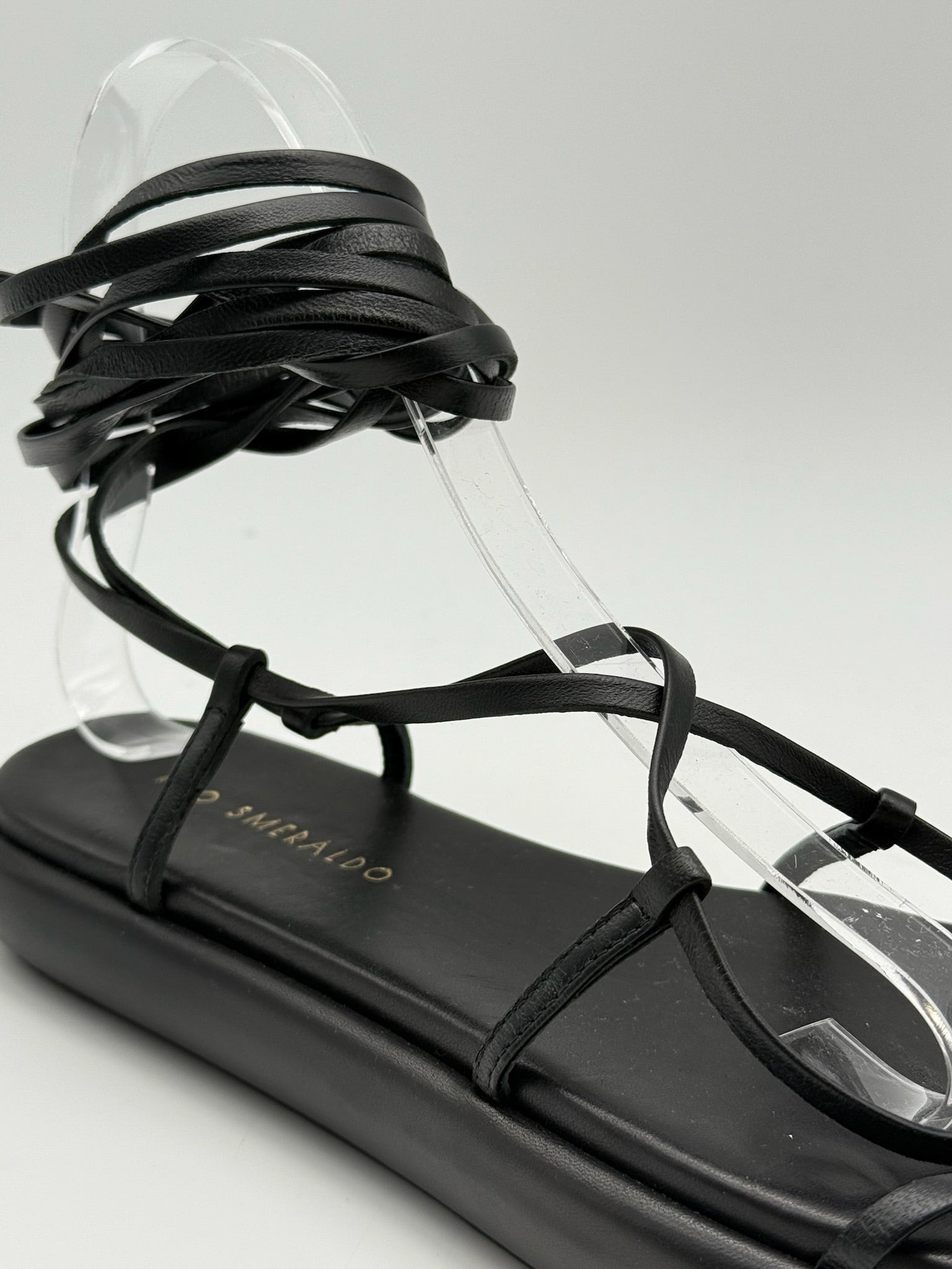 Sandali bassi dal design minimal ma ricercato, perfetti per chi cerca comodità e stile nei mesi più caldi. Realizzati in pelle neri con lacci sottili alla caviglia e punta squadrata, presentano una suola imbottita che garantisce comfort e leggerezza durante tutto il giorno. L’essenzialità della silhouette è valorizzata da dettagli curati e una costruzione artigianale di qualità. Perfetti con abiti lunghi estivi, pantaloni cropped o denim relaxed.