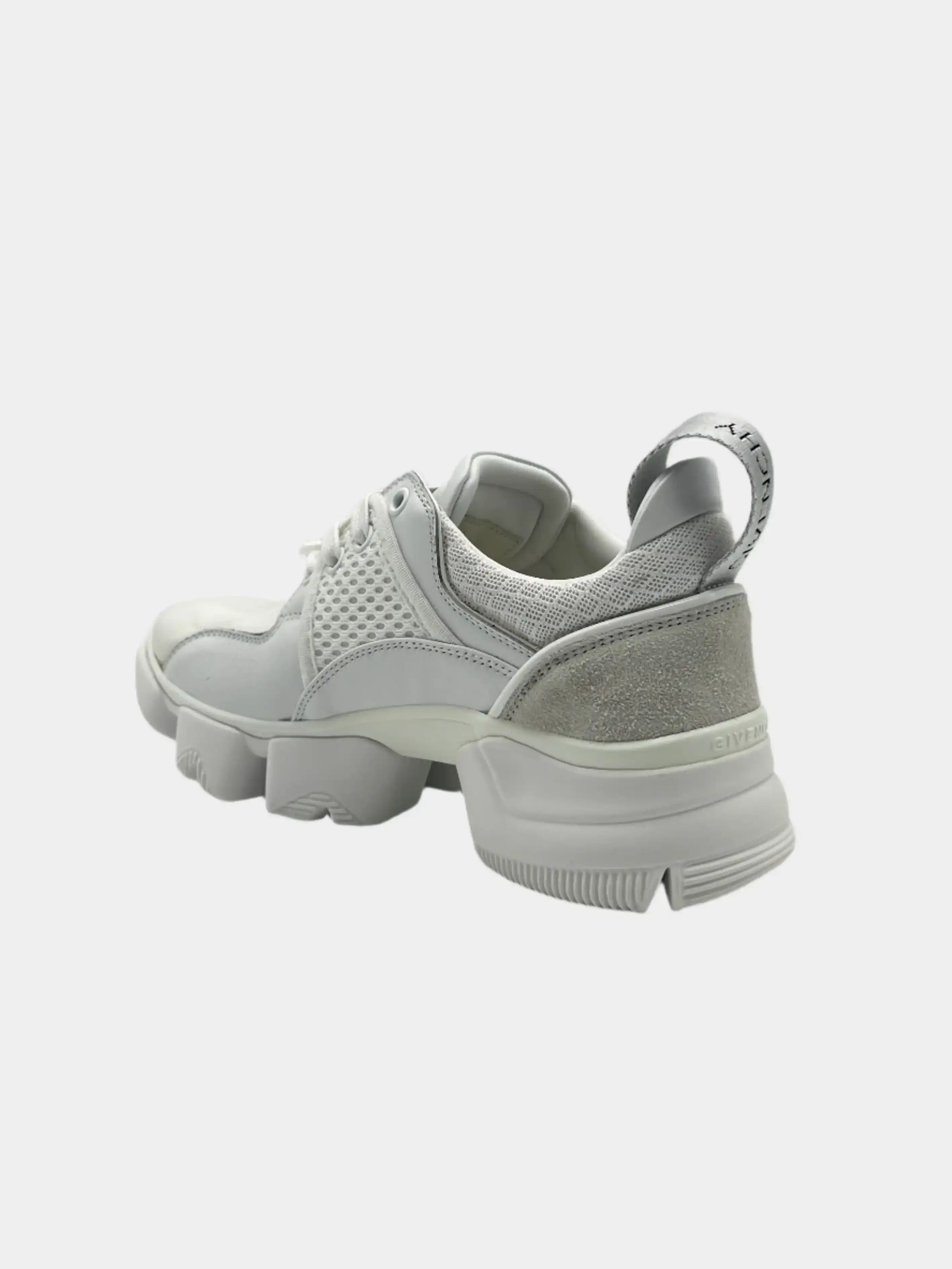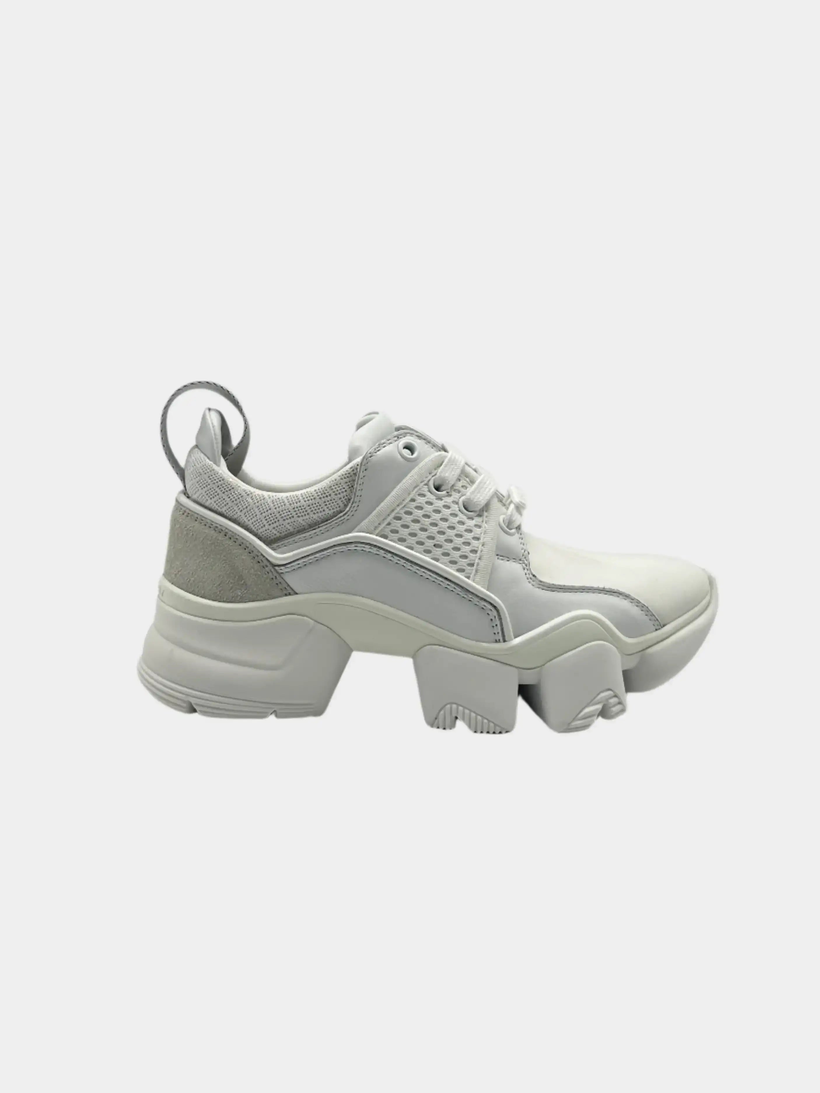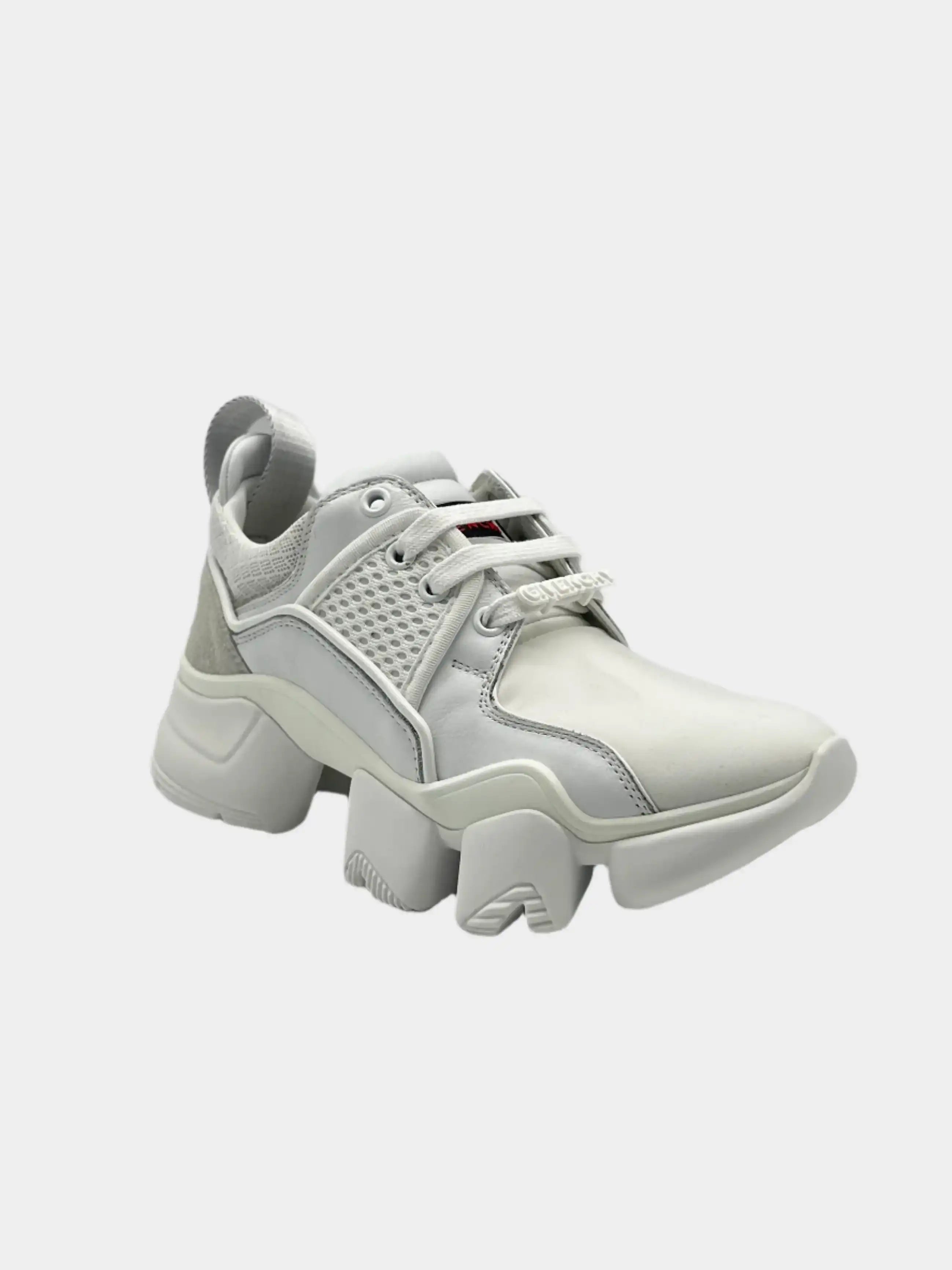 La sneakers Jaw bianca di Givenchy coniuga futurismo e sportività grazie al design audace della suola dentellata e all’accostamento di materiali tecnici. La tomaia in mesh e pelle con inserti elastici e dettagli strutturati offre leggerezza e sostegno, per uno stile deciso e contemporaneo.