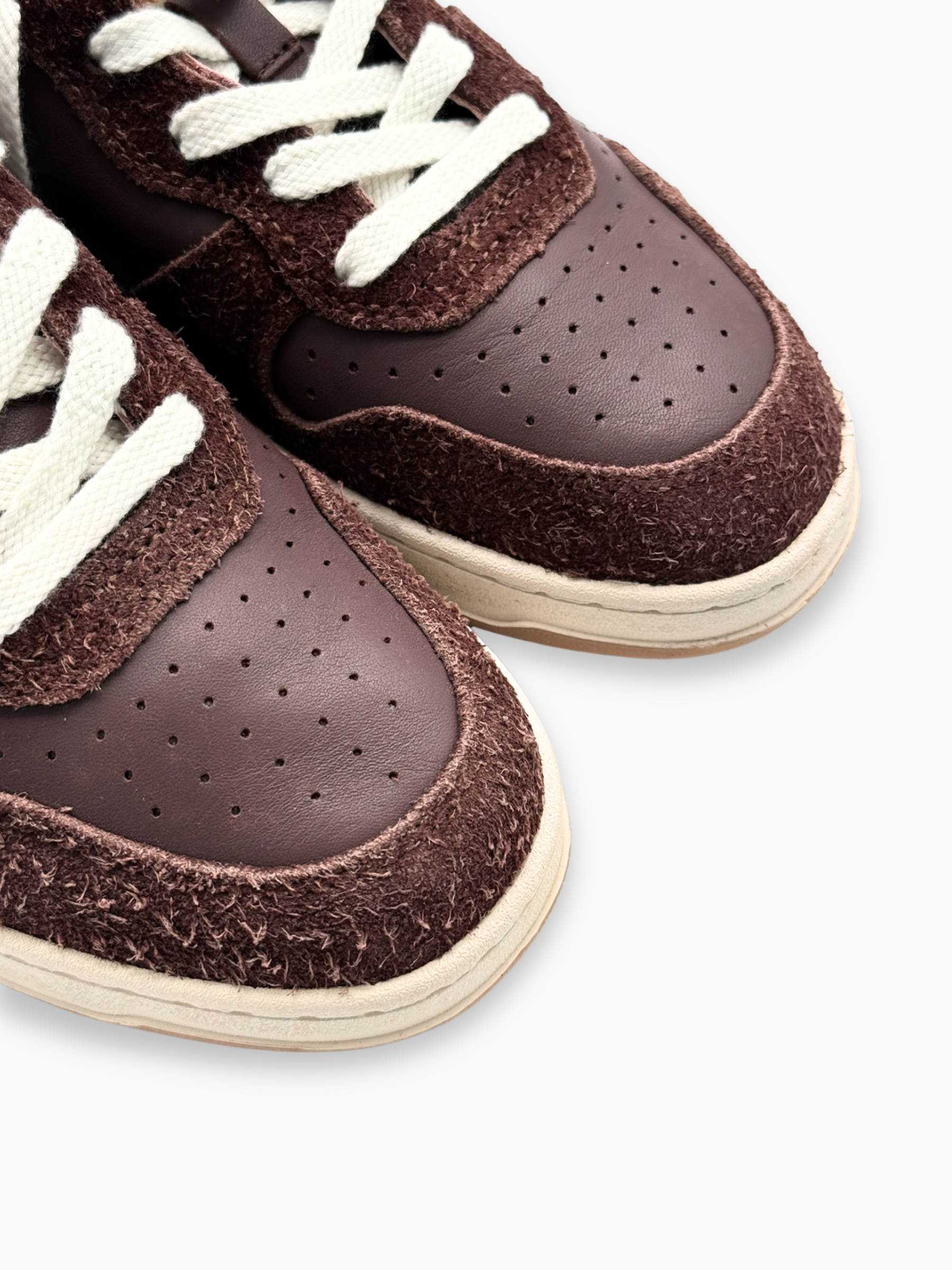· Tomaia in pelle e suede color marrone cioccolato