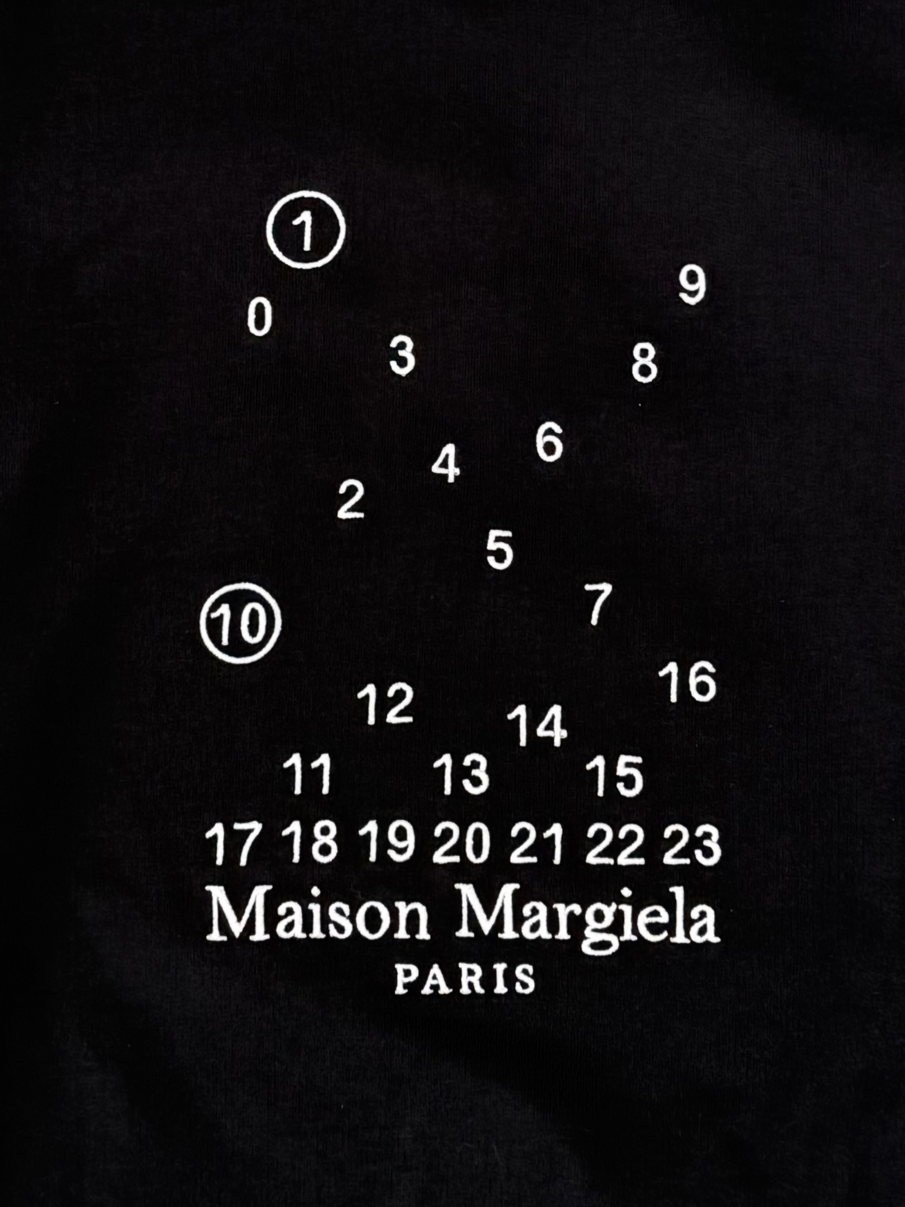 Felpa nera Maison Margiela in cotone con cappuccio e stampa logo numerica bianca sul fronte. Dal design essenziale e contemporaneo, questa felpa unisce comfort e stile con un richiamo all’identità iconica della maison parigina. Perfetta per look streetwear e casual.
