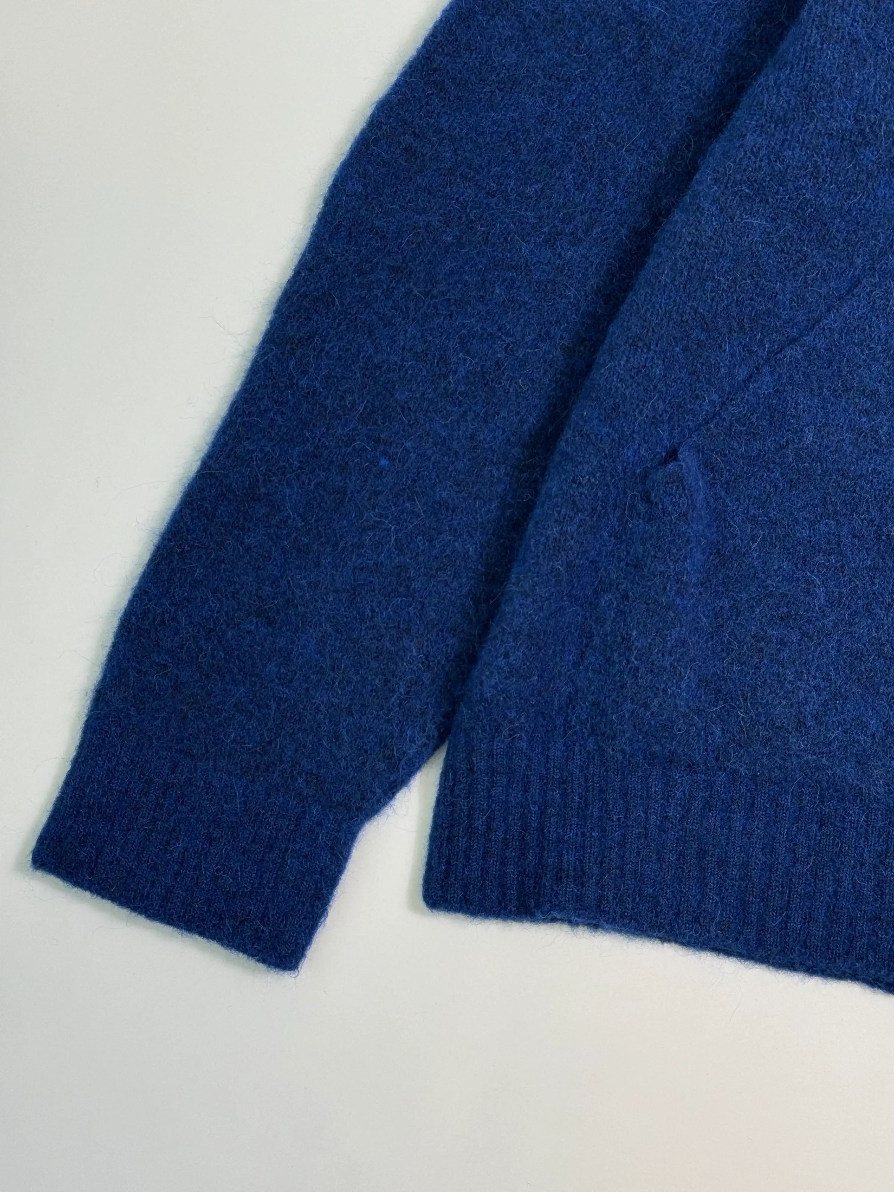 Morbida e avvolgente, questa felpa blu in maglia è pensata per offrire calore e stile durante la stagione fredda. Il design con cappuccio e tasca frontale a marsupio dona un tocco casual, mentre il filato pregiato in baby alpaca garantisce una sensazione lussuosa sulla pelle. Perfetta per look rilassati ma curati.