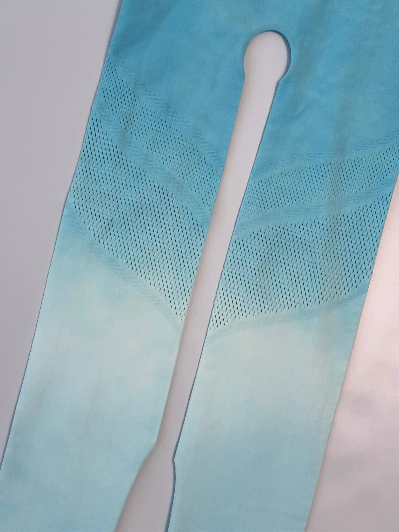 I leggings seamless firmati Palm Angels si distinguono per la sfumatura azzurra effetto degradé che si fonde con un design tecnico e moderno. Realizzati in tessuto elasticizzato a maglia senza cuciture, offrono massima aderenza e comfort. Il logo Palm Angels è posizionato sulla fascia elastica nera a contrasto. Ideali per completare look sportivi e streetwear con un tocco contemporaneo e riconoscibile.
