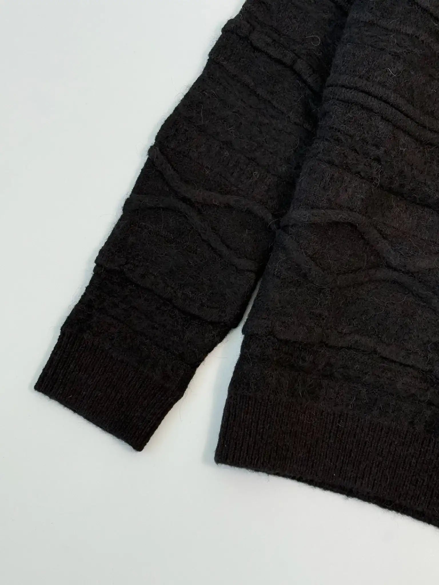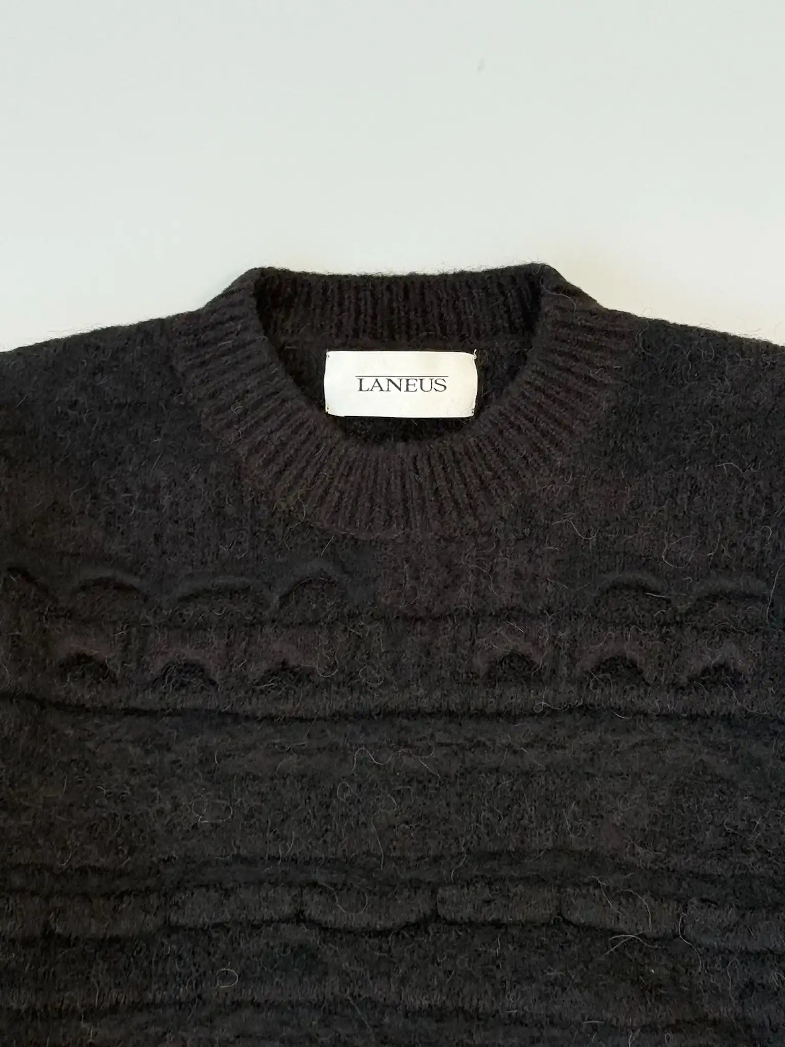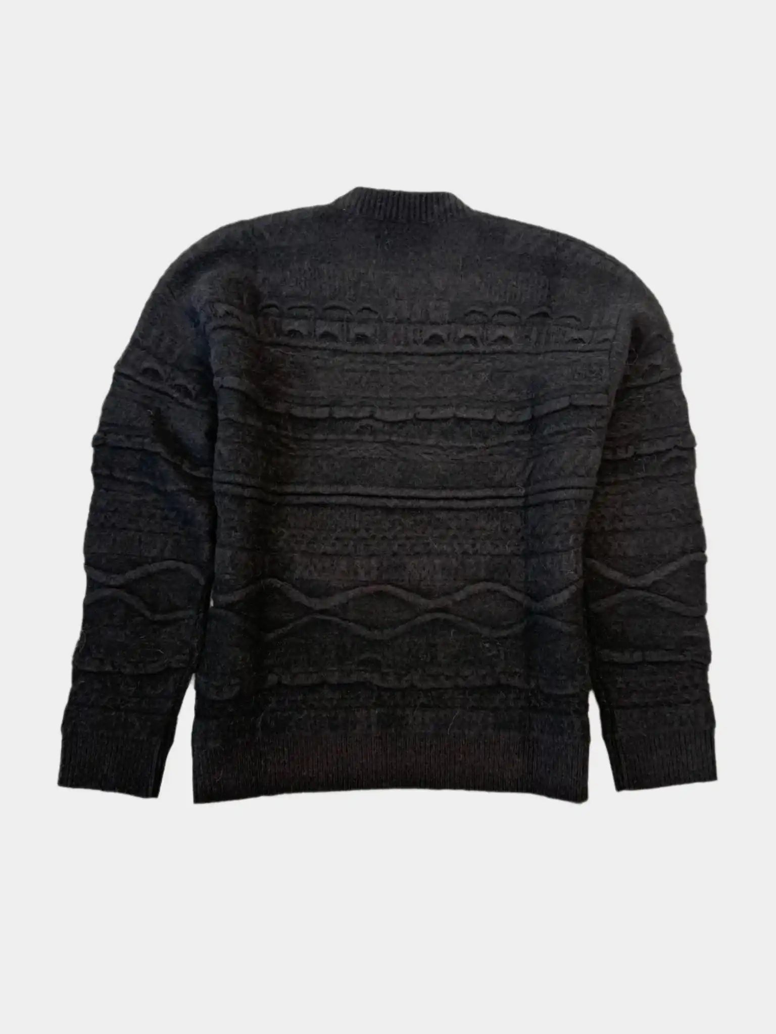 Questo maglione nero firmato Laneus esprime uno stile ricercato attraverso una lavorazione jacquard tridimensionale, che conferisce texture e movimento al capo. Realizzato in una morbida miscela di alpaca, lana e viscosa, è perfetto per affrontare la stagione fredda con carattere e raffinatezza. Un capo versatile, ideale sia con jeans che con pantaloni sartoriali.