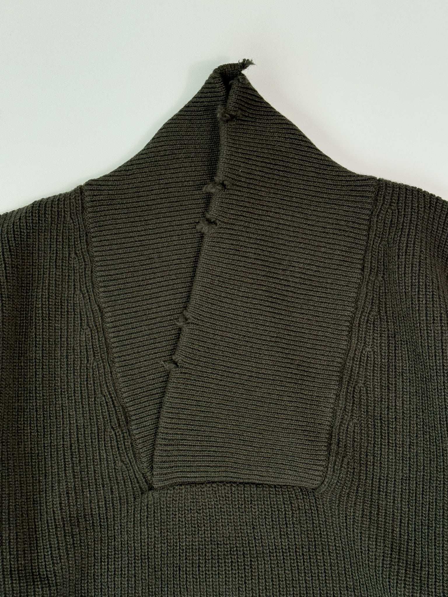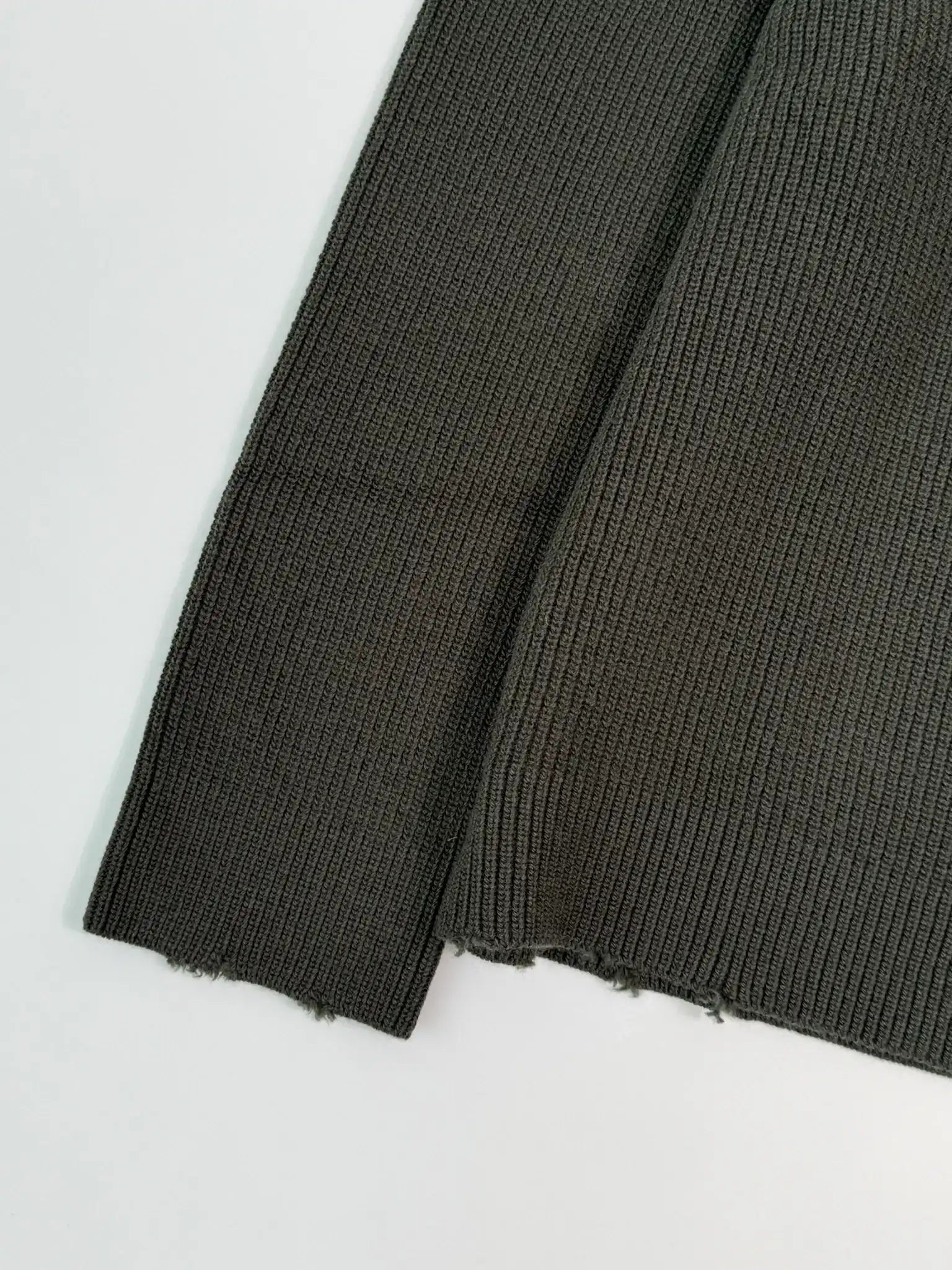 Con un design destrutturato e un fascino grezzo, questo maglione verde firmato Laneus si distingue per il suo scollo squadrato e il bordo sfrangiato. Realizzato in maglia a costine, presenta una silhouette rilassata con polsini lunghi e finiture tagliate a vivo. Perfetto per look contemporanei e layering creativi, è il capo ideale per chi ama uno stile non convenzionale.