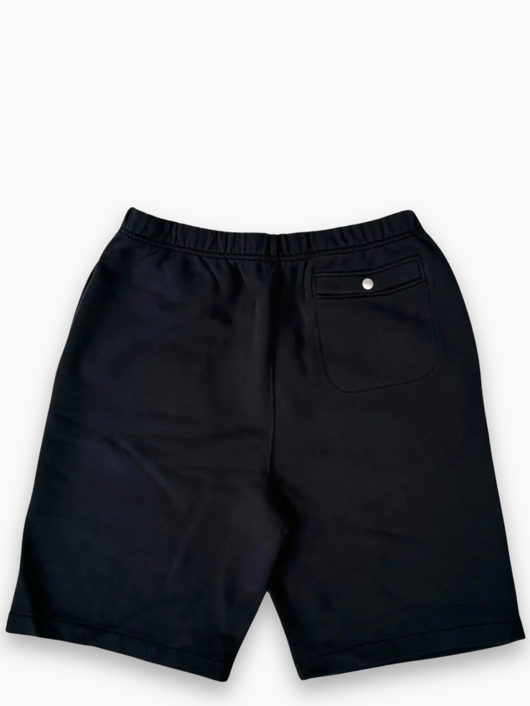 Pantaloncini neri Heron Preston in cotone riciclato, caratterizzati da una silhouette relaxed e dettagli signature del brand. Presentano una patch logo arancione applicata sul fronte e un taschino singolo sul retro con bottone a pressione. Ideali per un look casual ma distintivo, combinano estetica streetwear e sostenibilità.