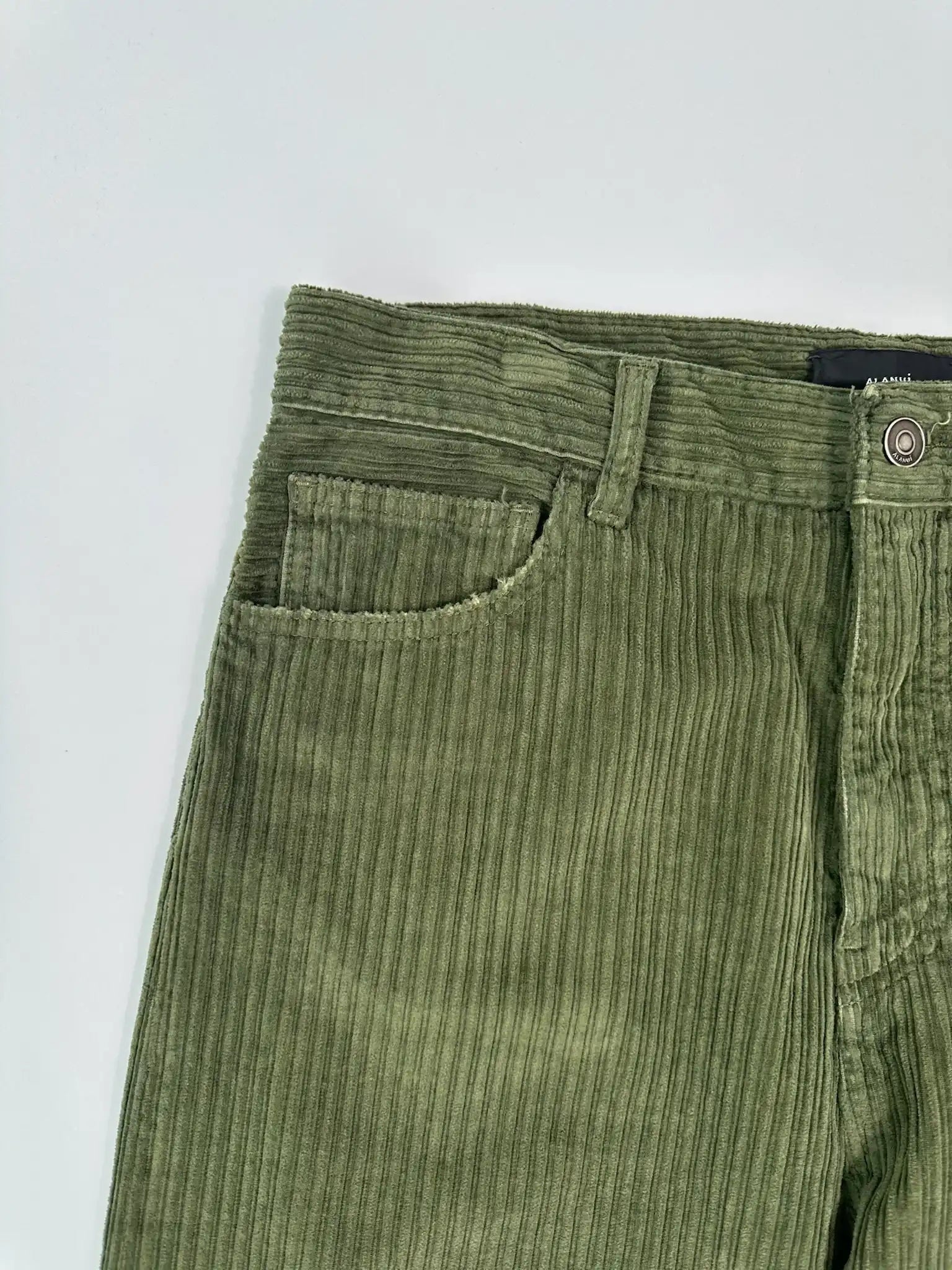 I pantaloni Alanui in velluto a coste sono un capo essenziale rivisitato con eleganza e comfort. Realizzati in velluto di cotone verde militare, presentano una silhouette dritta e pulita, con tasche classiche e chiusura frontale con bottone. Il fit rilassato e la texture vellutata li rendono ideali per uno stile casual ricercato, perfetto per la stagione fredda.