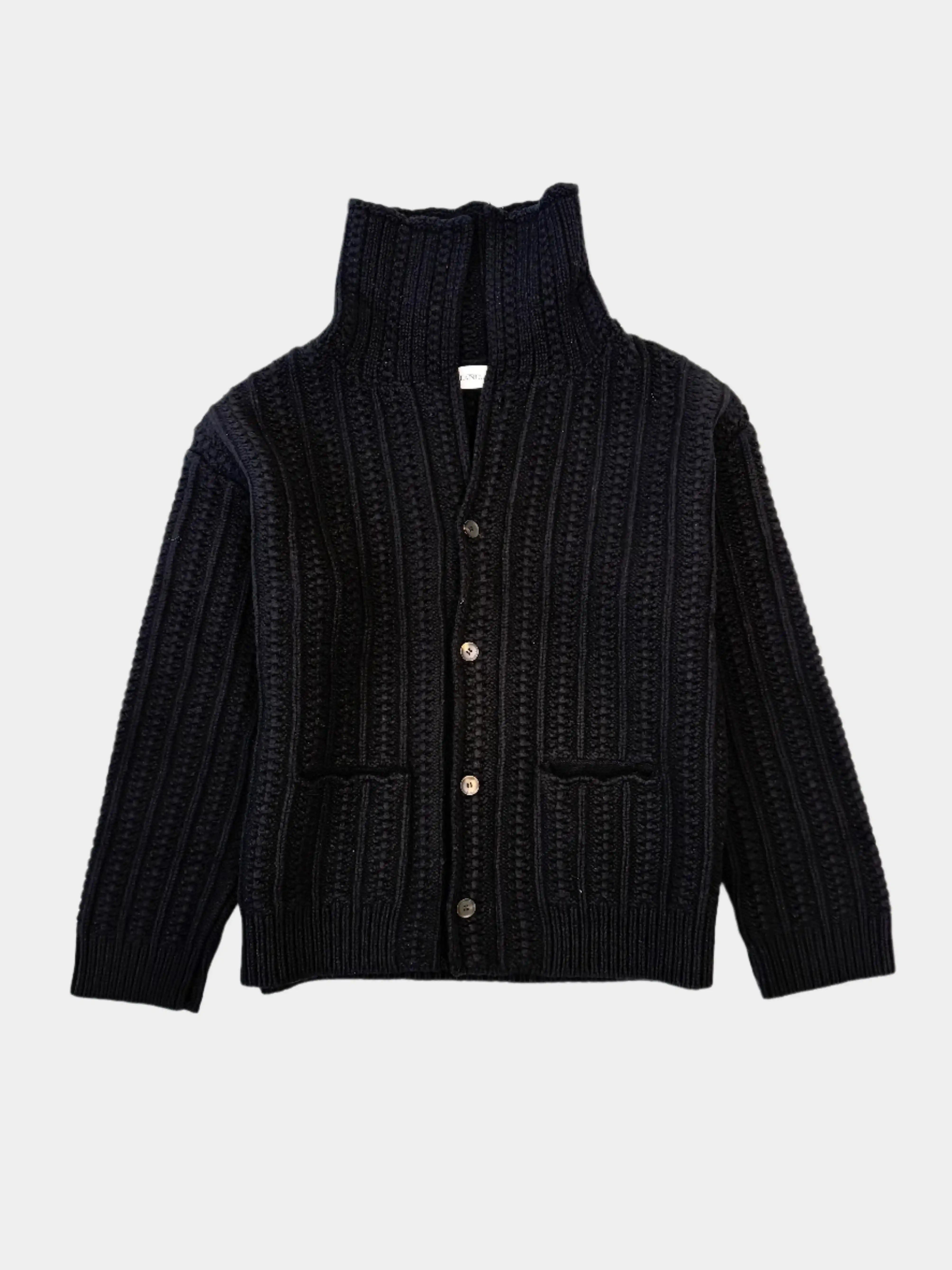 Questa polo in maglia si distingue per la lavorazione strutturata a coste e l’intreccio tridimensionale che dona profondità al capo. Il collo alto e i bottoni frontali la rendono perfetta per completare look eleganti o casual, mantenendo sempre un tocco sofisticato. Realizzata in 100% lana vergine per un comfort termico naturale.