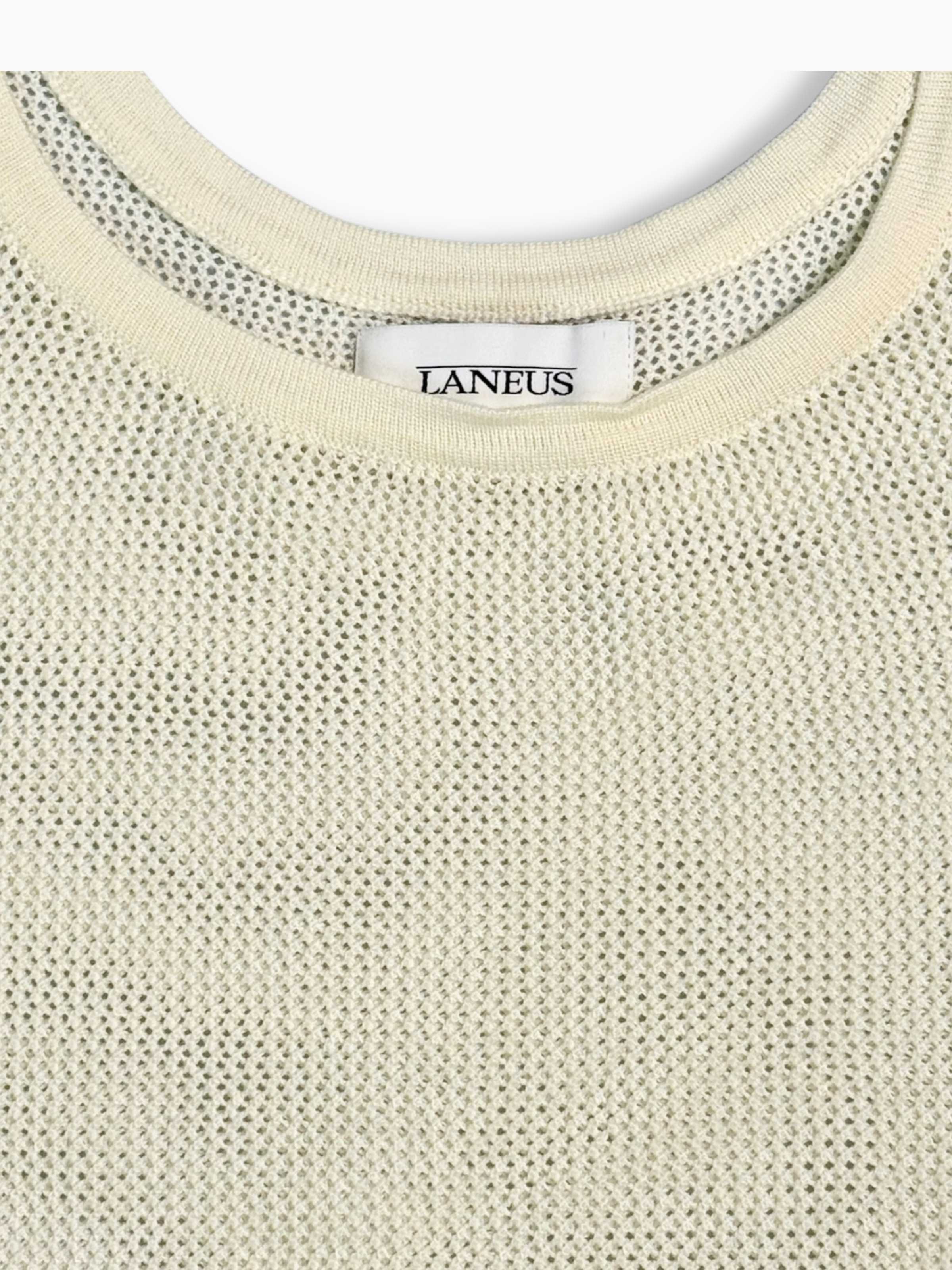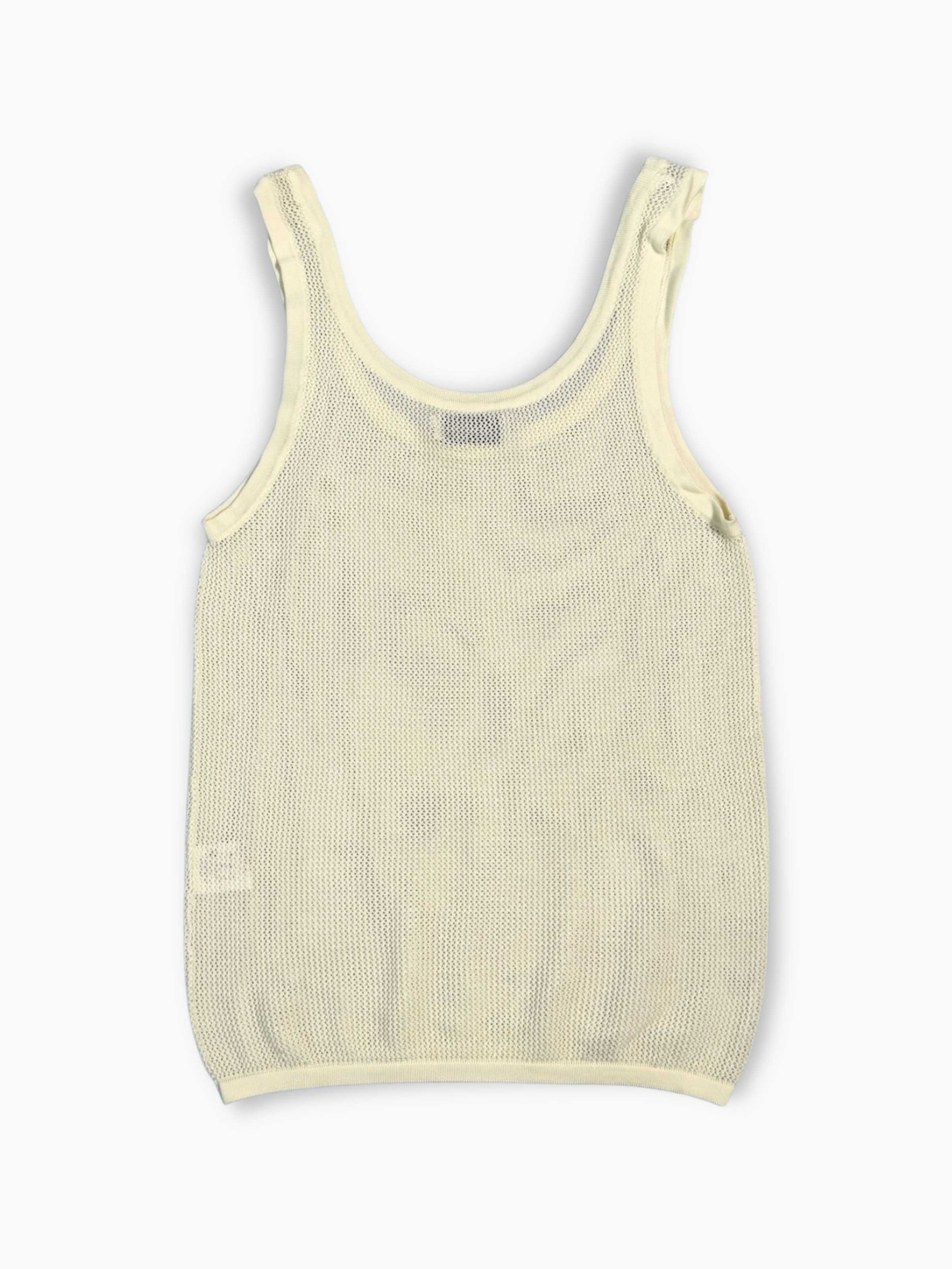 Canotta panna in maglia a rete dal design minimal e traspirante. Realizzata in tessuto leggero e confortevole, è perfetta come capo base per look estivi o come strato versatile sotto giacche e camicie. Un modello essenziale che unisce praticità e stile contemporaneo.