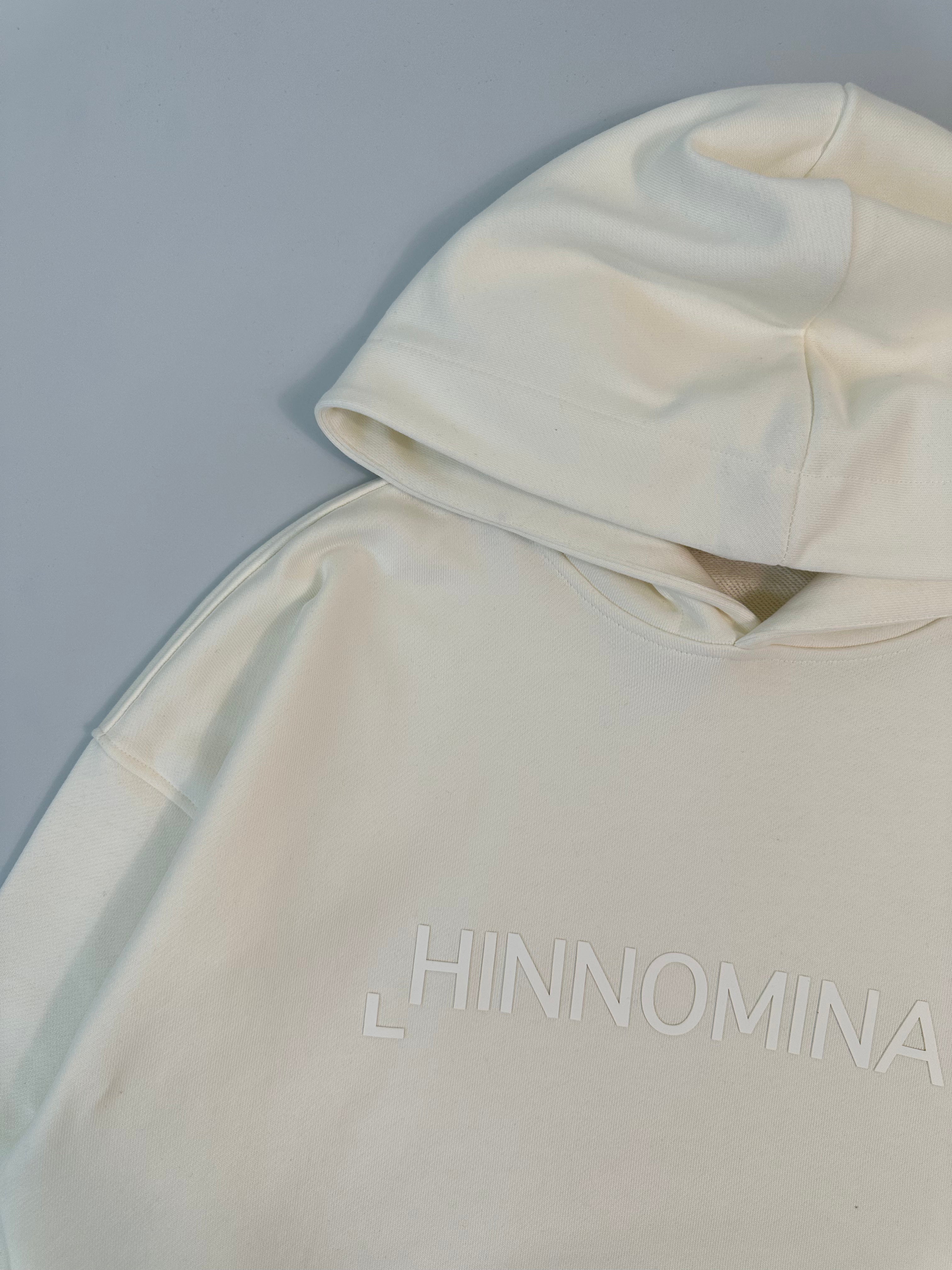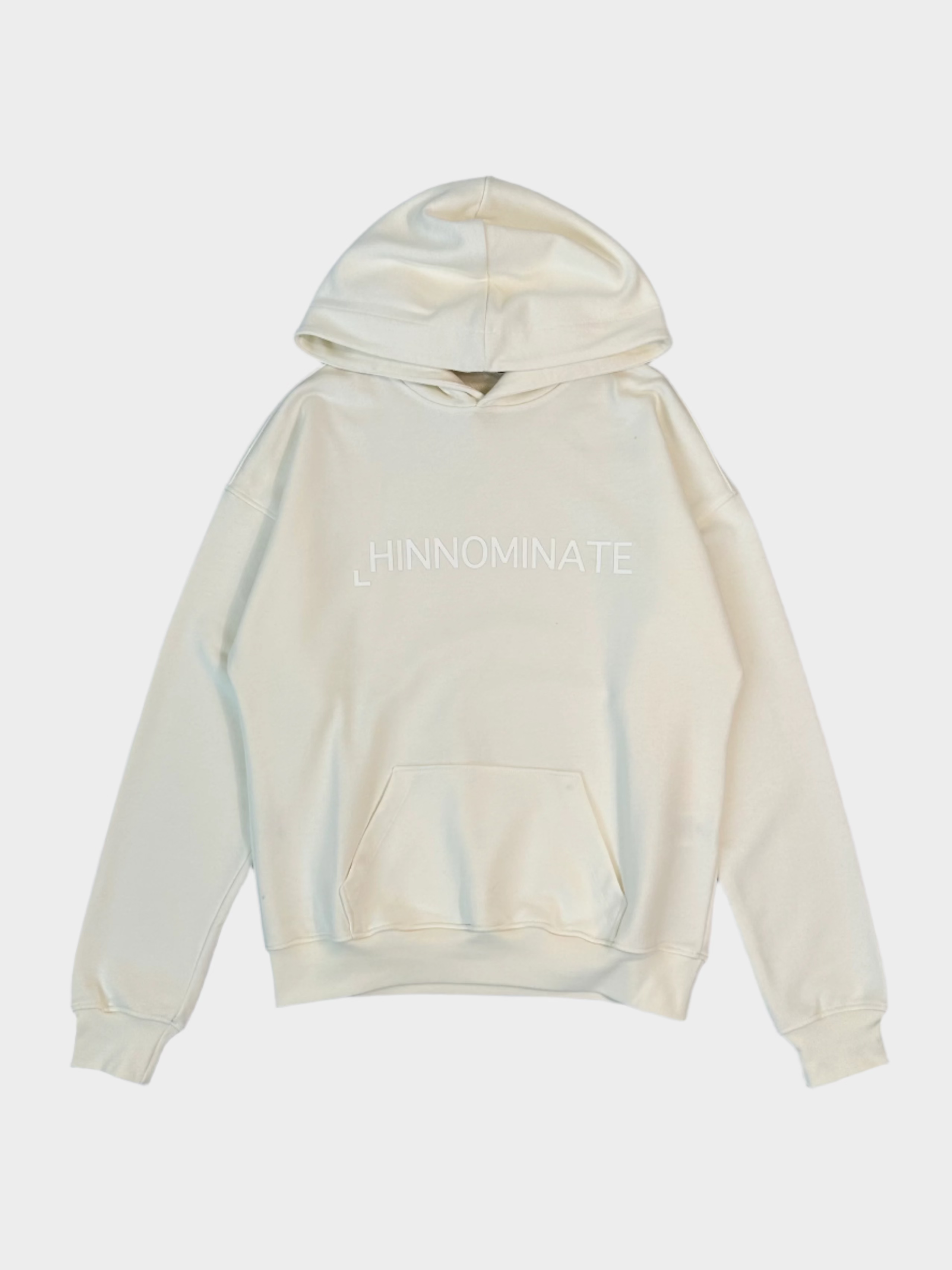 La felpa Hinnominate off white con cappuccio è un capo dallo stile minimal e deciso. Realizzata in 100% cotone, si distingue per la scritta gommata tono su tono sul petto, che aggiunge un tocco grafico al design essenziale. Dotata di cappuccio fisso e ampia tasca a marsupio, è perfetta per completare outfit casual e streetwear con comfort e carattere.