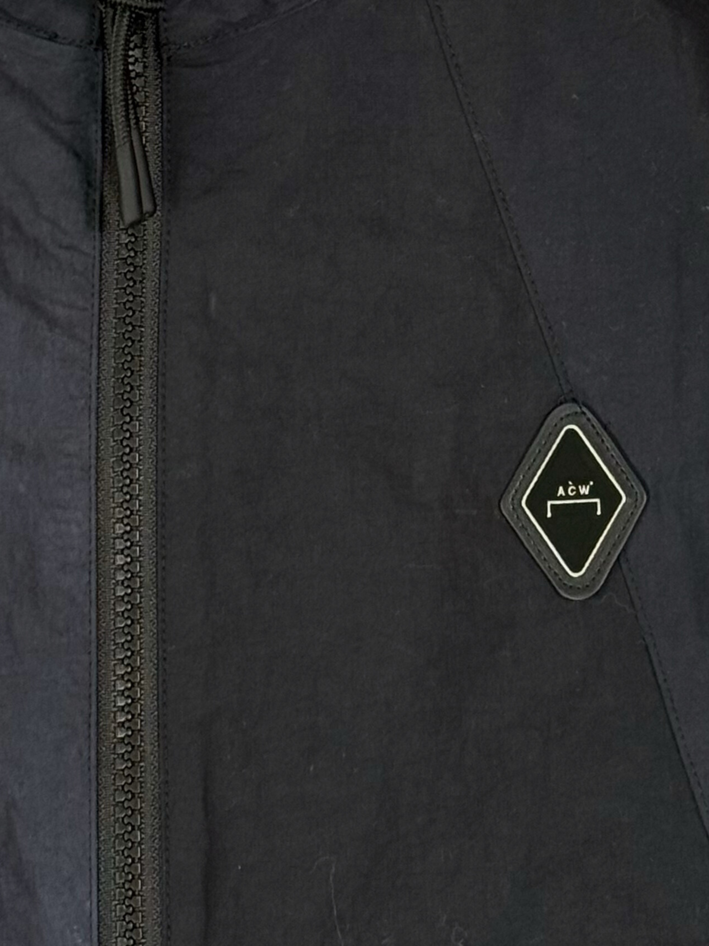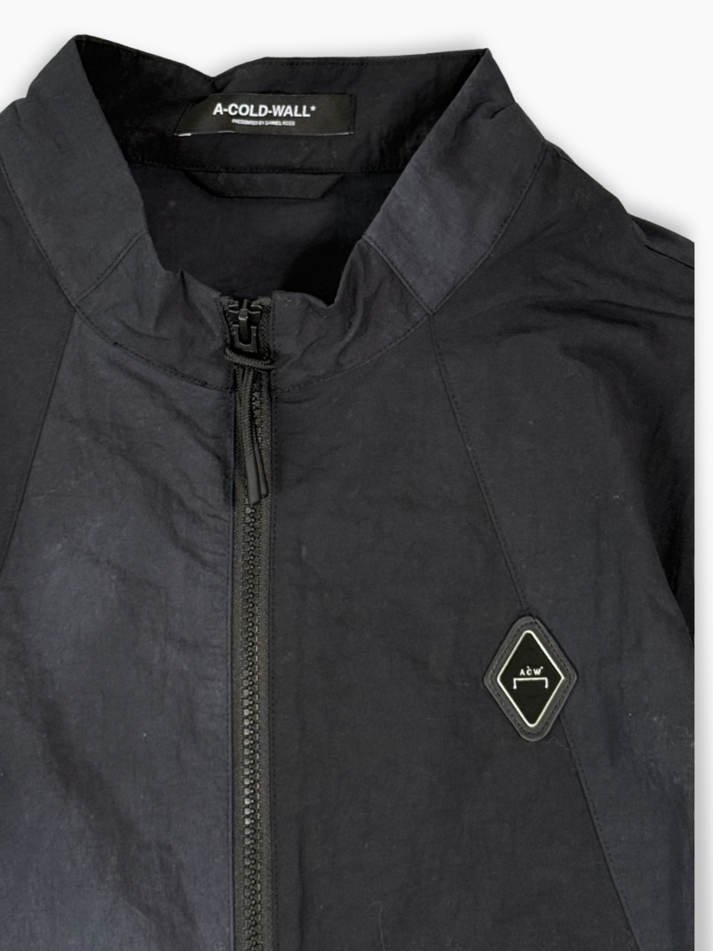 Giacca tecnica nera A-COLD-WALL* dal design minimal e funzionale. Realizzata in tessuto resistente con finitura opaca, presenta chiusura a zip frontale, tasche laterali con zip. Un capo versatile perfetto per un look urban contemporaneo.
