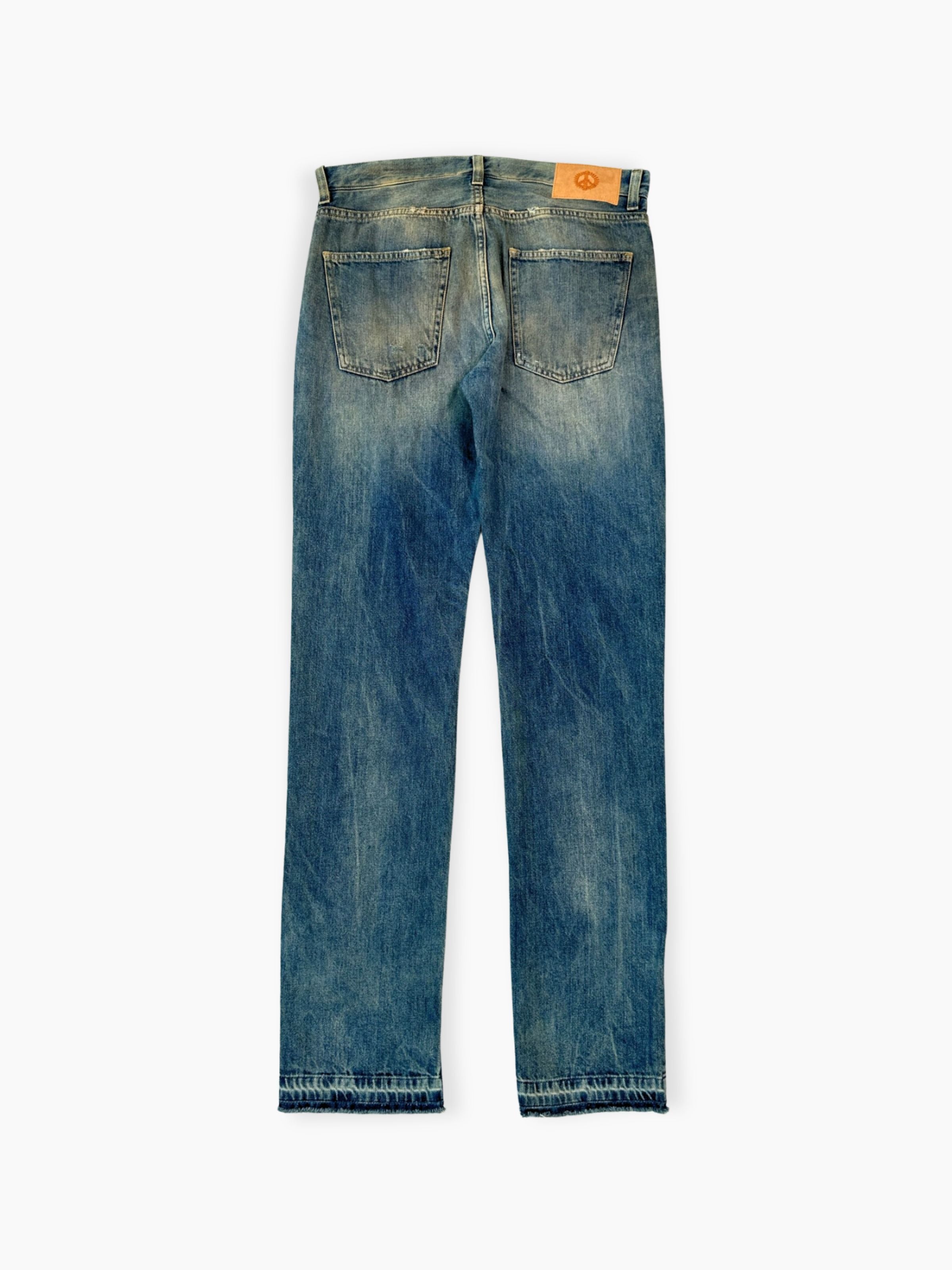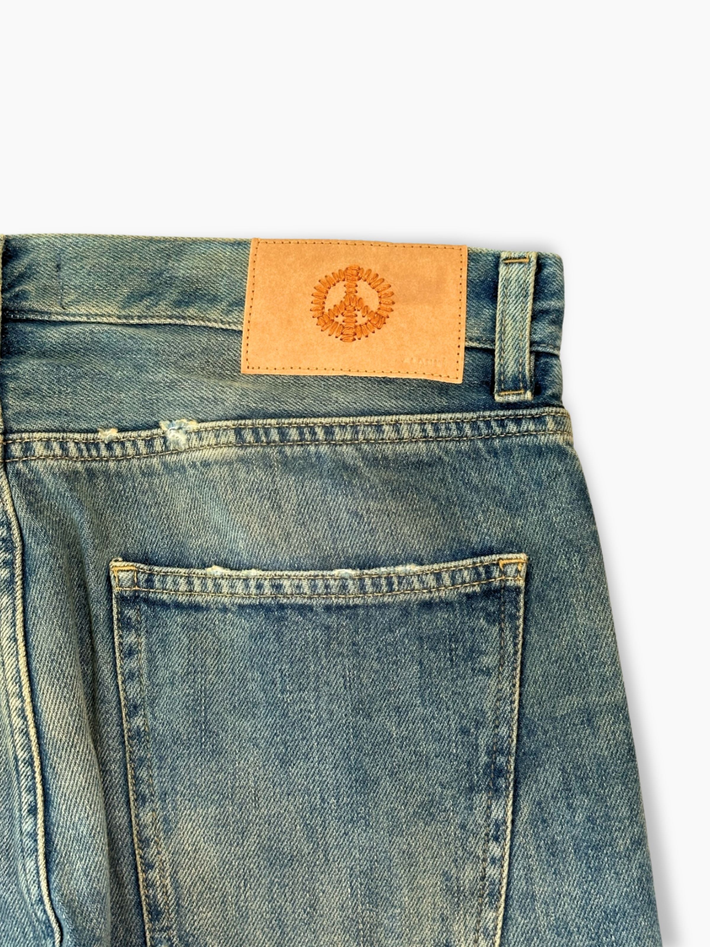 Questi jeans Alanui in denim blu si distinguono per l’effetto usurato e la lavorazione vissuta, perfetti per un look casual e contemporaneo. Il taglio dritto e l’orlo sfrangiato donano un tocco autentico e ricercato, ideale per chi ama lo stile denim con carattere. Un capo versatile che può essere abbinato sia a t-shirt che a camicie per outfit dinamici e moderni.