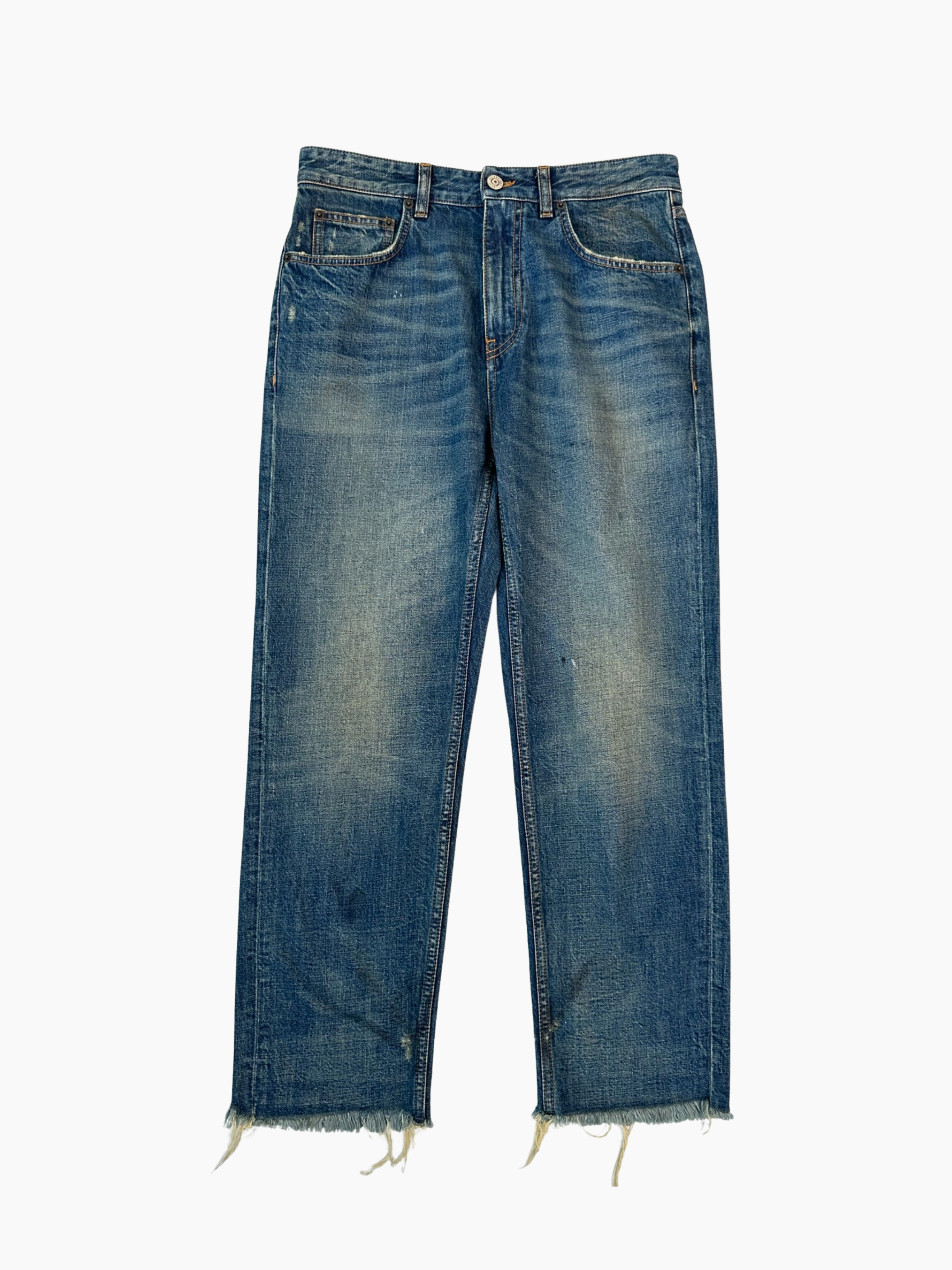 Essenziali, iconici, autentici. Questi jeans Balenciaga uniscono il fascino del denim dal lavaggio vintage a un taglio dritto e pulito, con un tocco destrutturato dato dall’orlo grezzo sfrangiato. Il capo perfetto per completare un look urbano con attitudine grunge e sartorialità contemporanea.