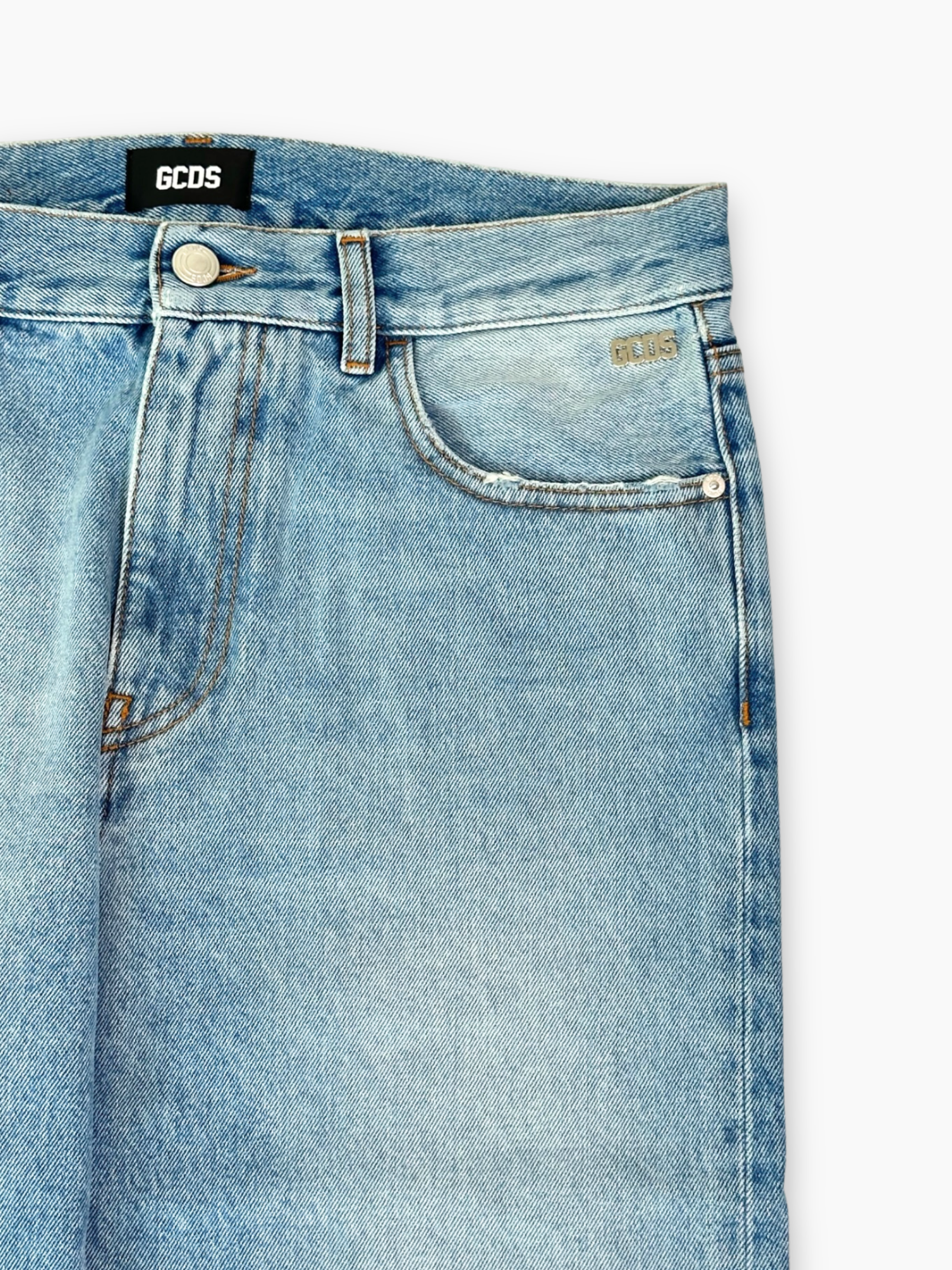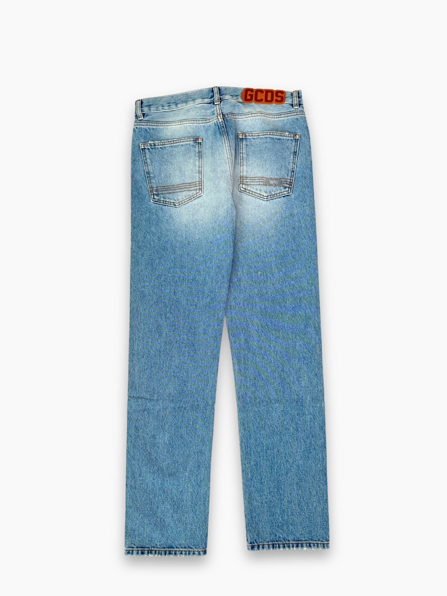 Jeans straight fit firmati GCDS, realizzati in denim di alta qualità con lavaggio medio e linee pulite. Un modello essenziale ma ricco di dettagli, pensato per offrire comodità e un’estetica moderna. La silhouette dritta valorizza ogni look, rendendolo un capo ideale per l’uso quotidiano con un tocco distintivo.