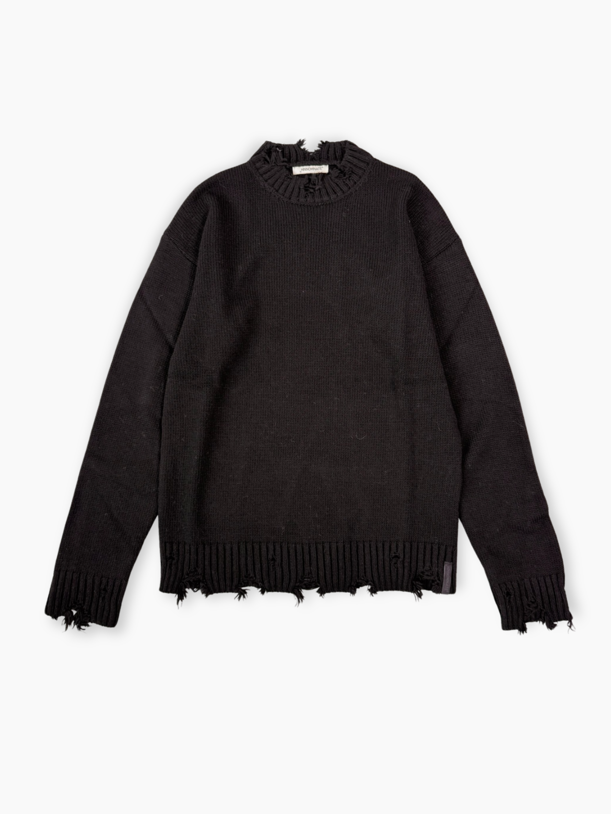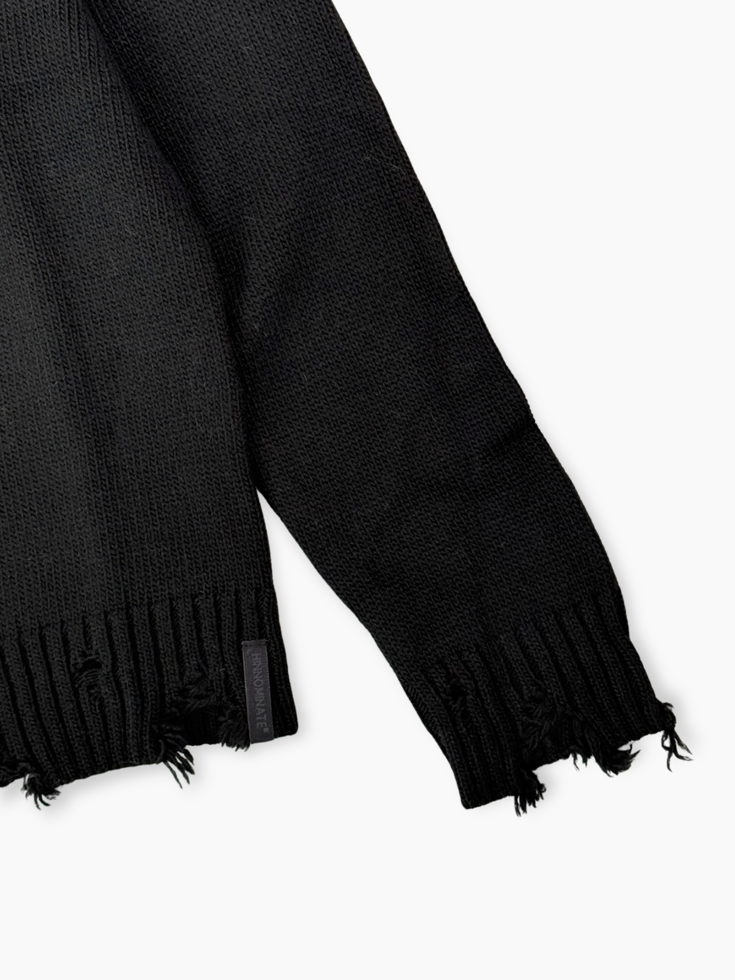 Maglione nero Hinnominate con effetto distressed, realizzato in misto lana per un equilibrio perfetto tra calore e leggerezza. Il design vissuto con bordi tagliati a vivo aggiunge un tocco grunge e contemporaneo a ogni outfit. Perfetto da indossare con jeans o pantaloni sartoriali per un contrasto moderno.