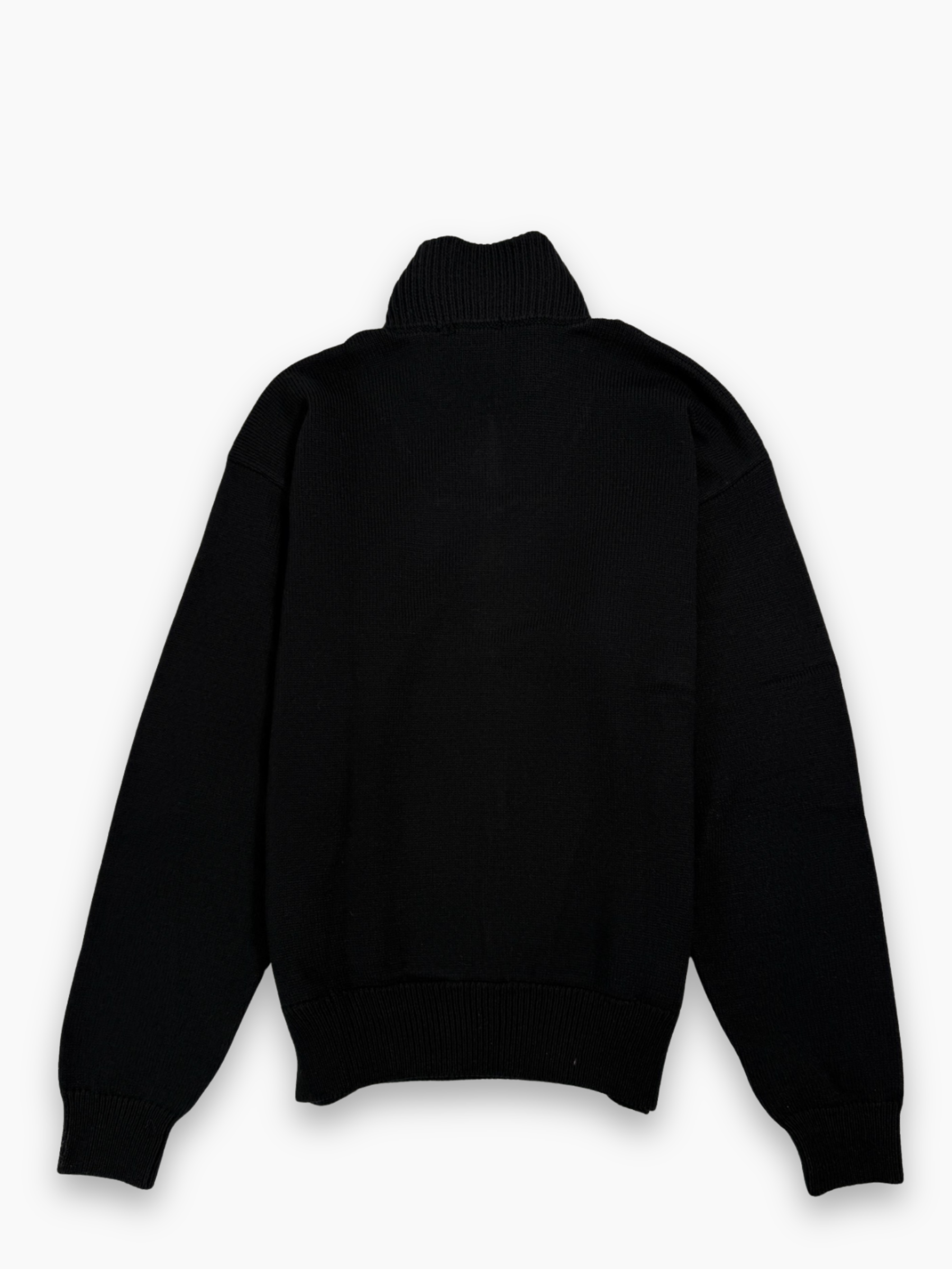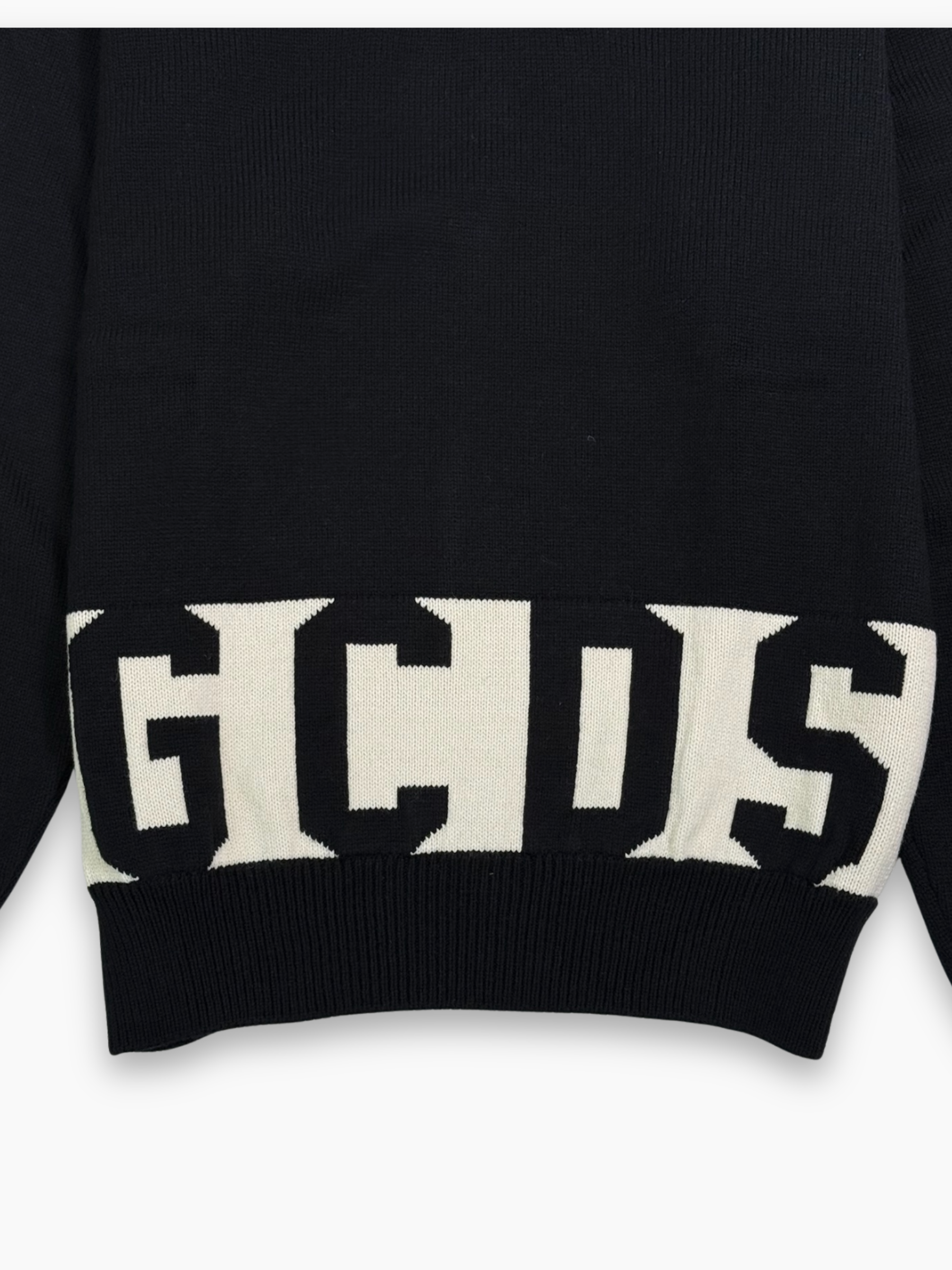Maglia nera con collo alto a mezza zip e maxi logo GCDS a contrasto sul fondo. Il design in maglia compatta offre una vestibilità calda e strutturata, mentre il dettaglio zip dona un tocco moderno e funzionale. Un capo versatile, perfetto per look casual dal carattere distintivo.