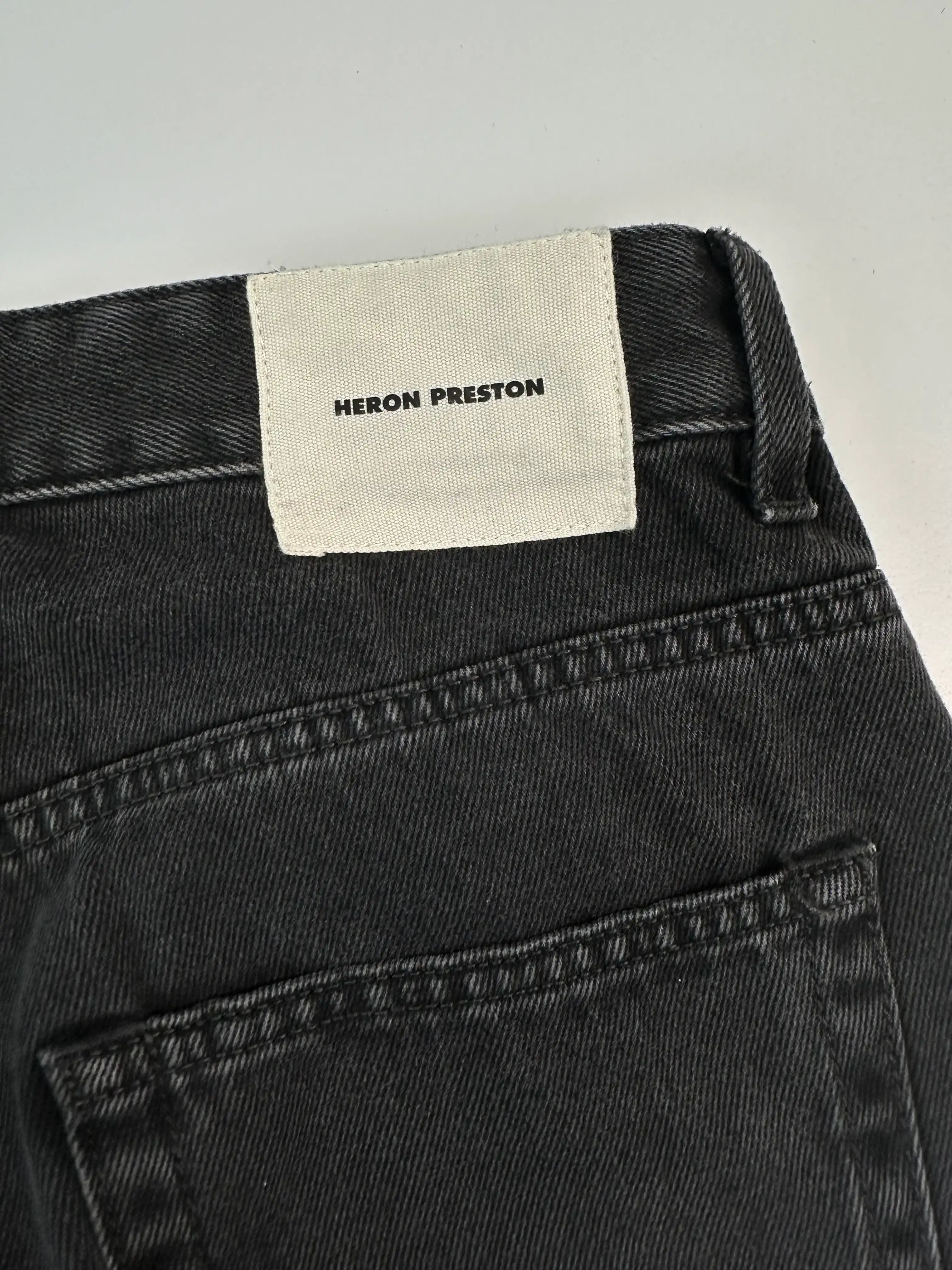 Il pantalone in denim nero di Heron Preston combina linee pulite e design essenziale con l’attitudine streetwear tipica del brand. Caratterizzato da una chiusura frontale a bottoni, tasche a fessura laterali e una gamba a taglio regolare, questo capo offre una vestibilità comoda e versatile. I dettagli minimal e l’estetica contemporanea lo rendono un must-have per un look urbano curato e senza tempo.