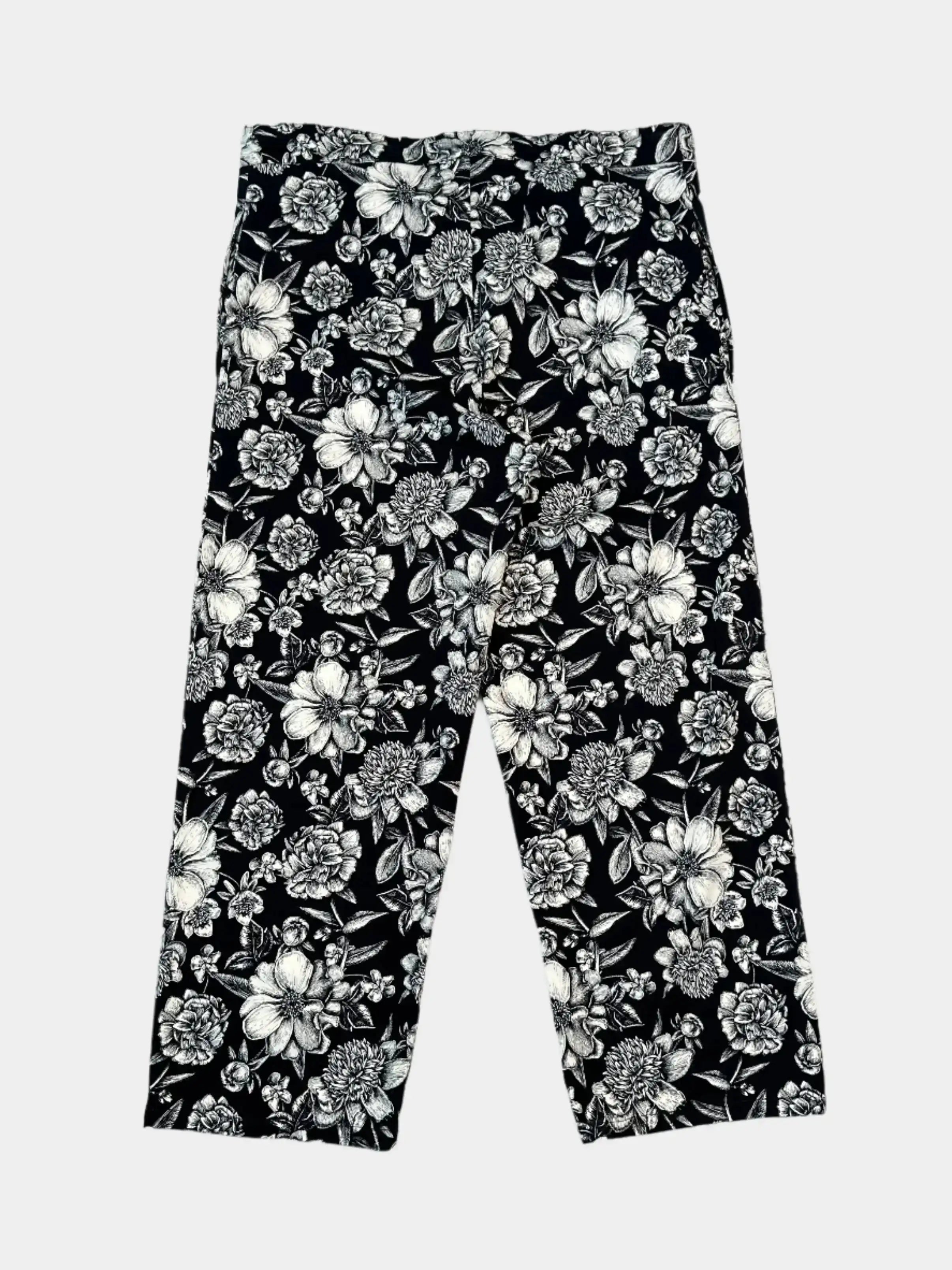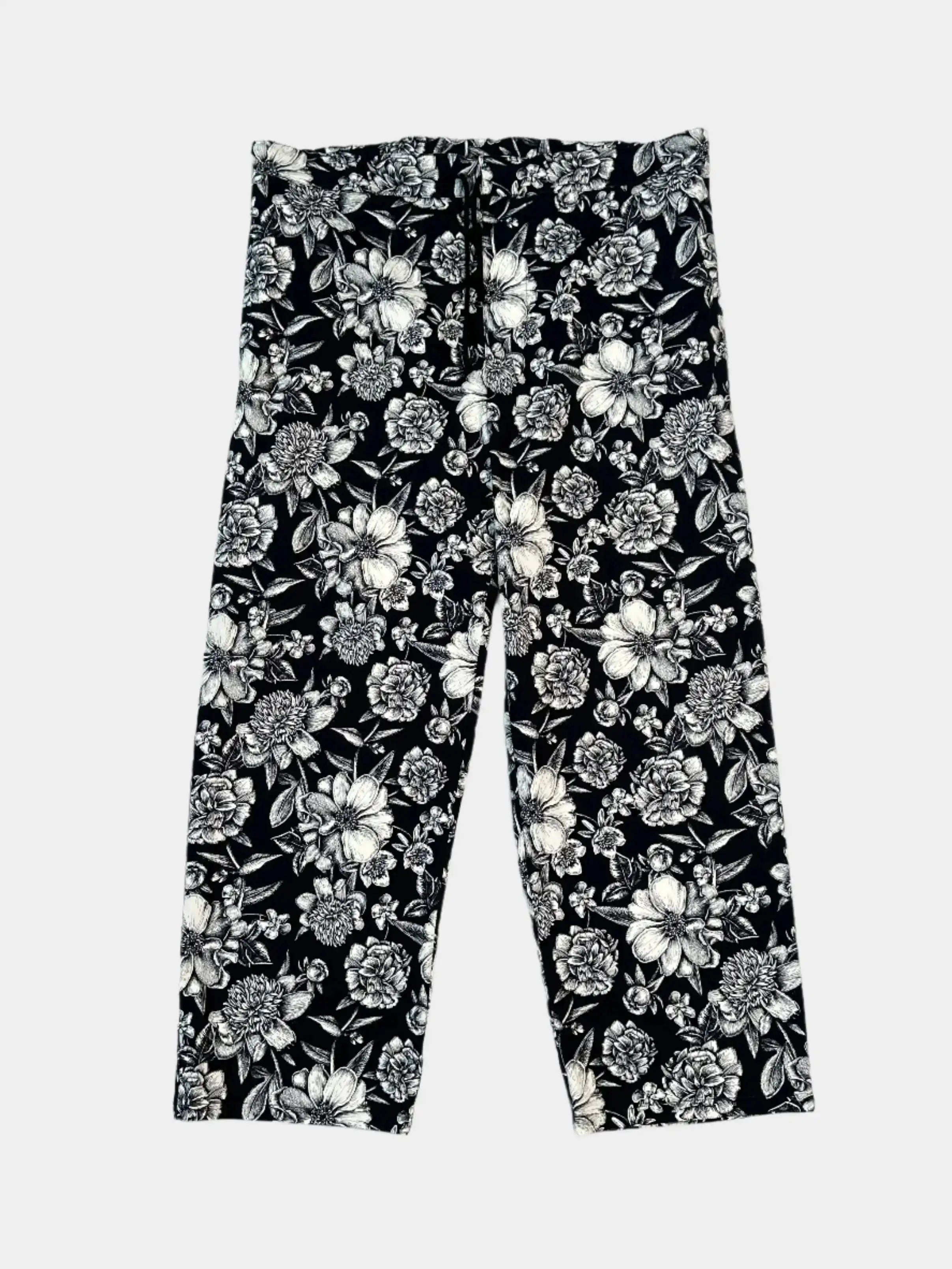 Pantaloni a gamba dritta con stampa floreale nei toni del bianco e nero, realizzati in cotone elasticizzato. La vita elasticizzata con coulisse garantisce comfort e praticità. Ideali per look casual d'impatto o abbinamenti più ricercati.