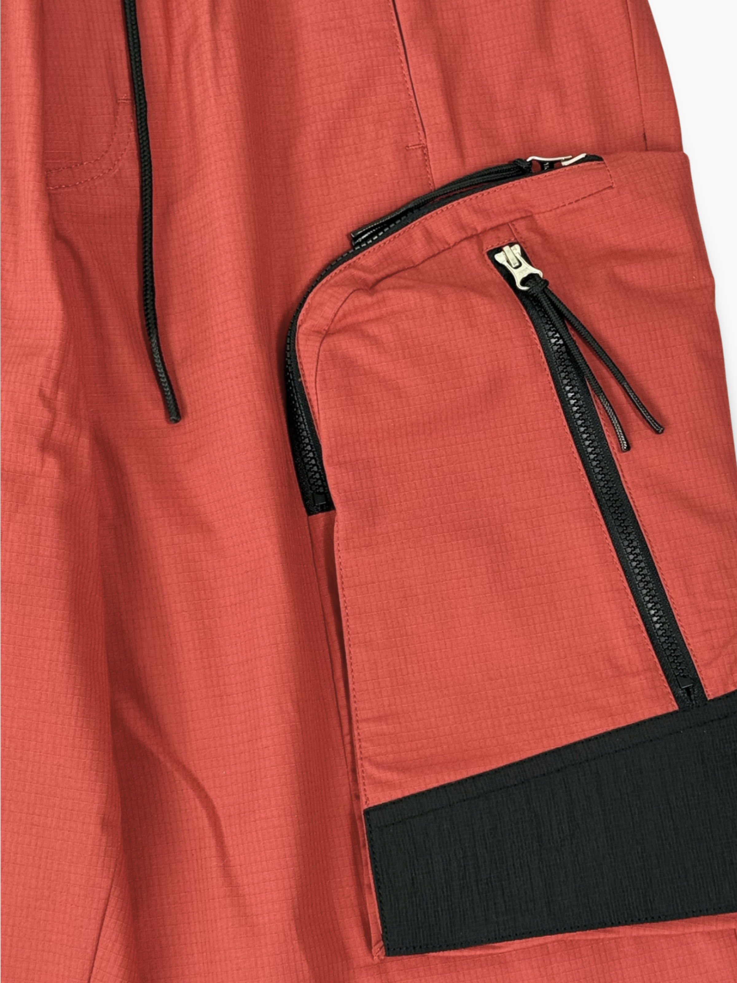 Pantaloni tecnici A-COLD-WALL* in tessuto resistente rosso mattone con design d’ispirazione utility. Caratterizzati da maxi stampa logo laterale a contrasto, ampie tasche con zip e dettagli funzionali, sono ideali per un look streetwear contemporaneo e deciso.