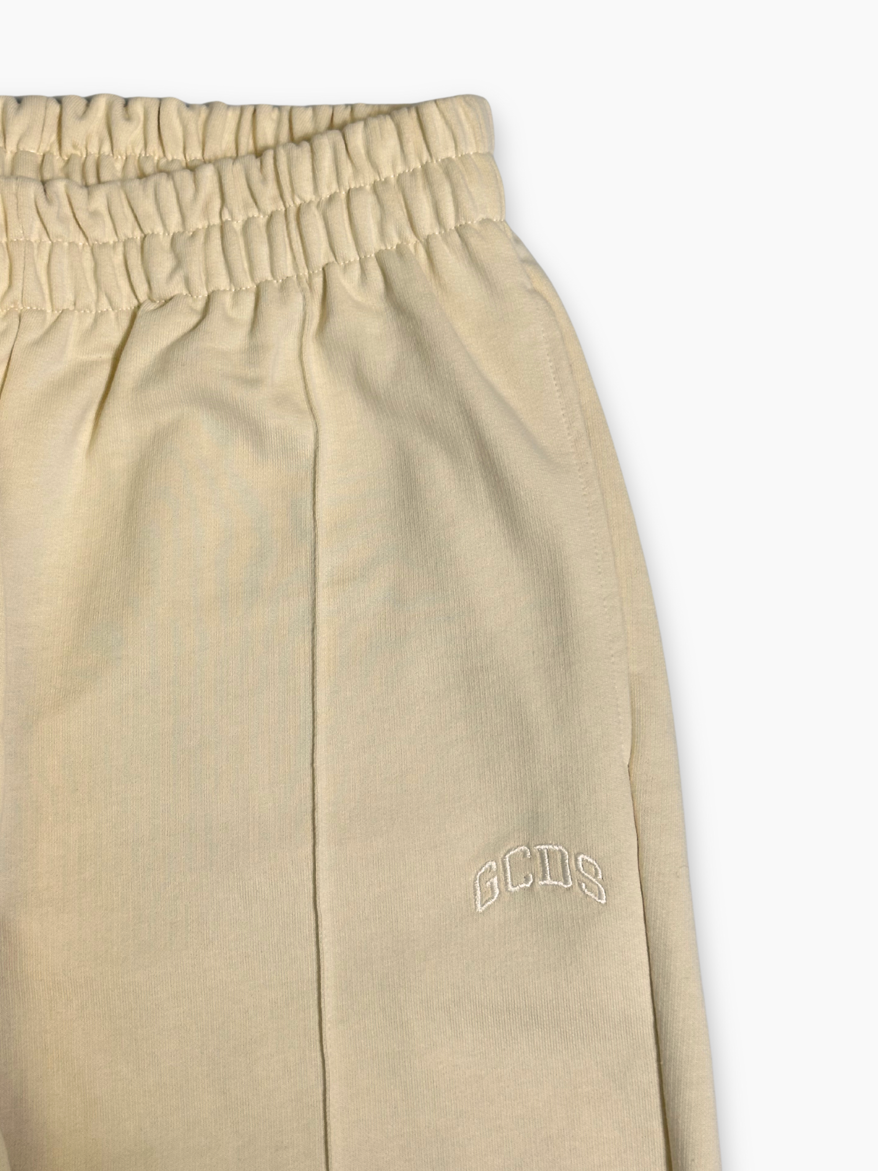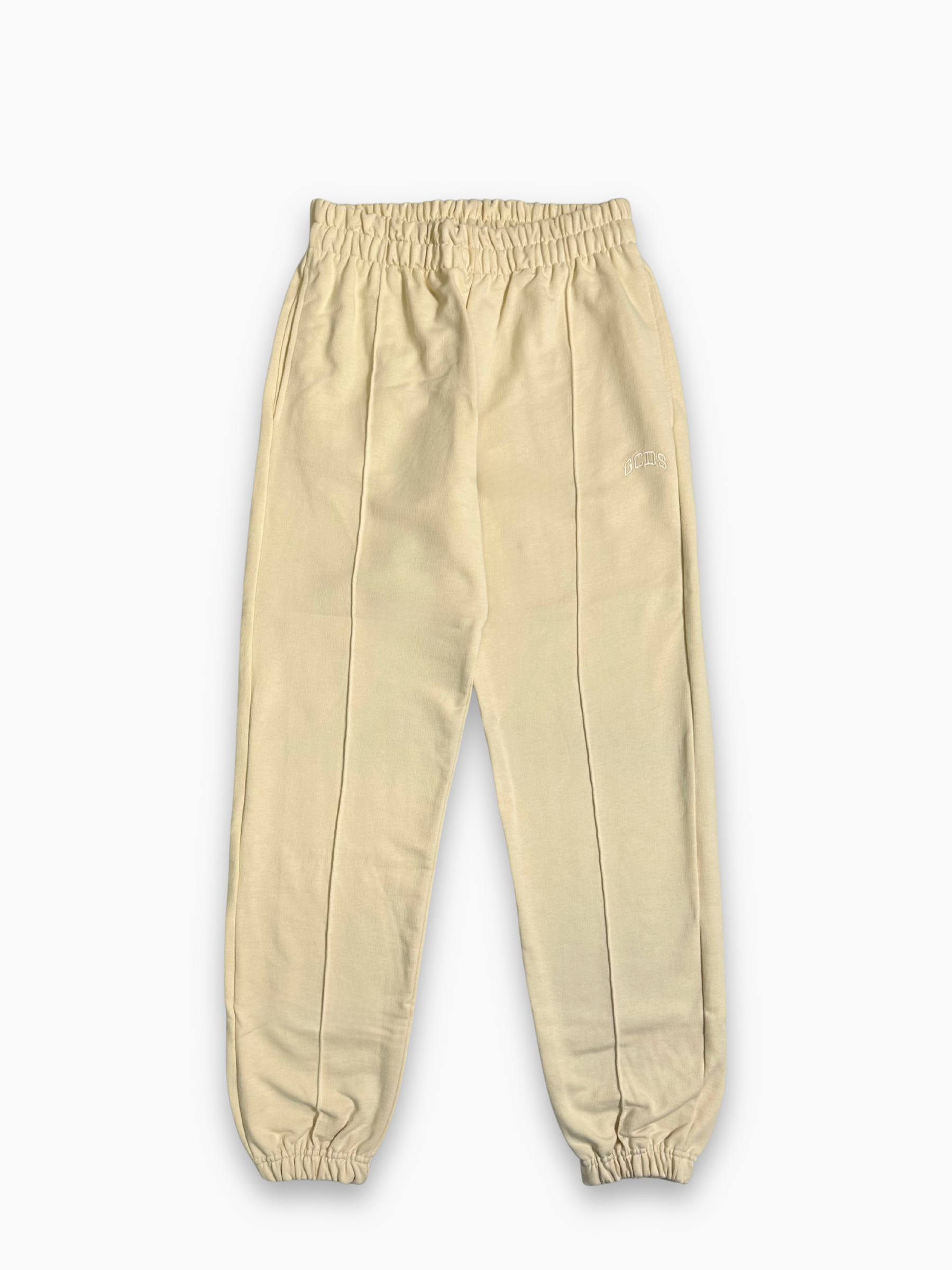 Pantaloni beige in tessuto morbido con linea dritta e fondo elasticizzato. La vita elasticata garantisce comfort e praticità, mentre la piega centrale incisa dona un aspetto più strutturato e raffinato. Un modello versatile, perfetto per look casual ma curati.