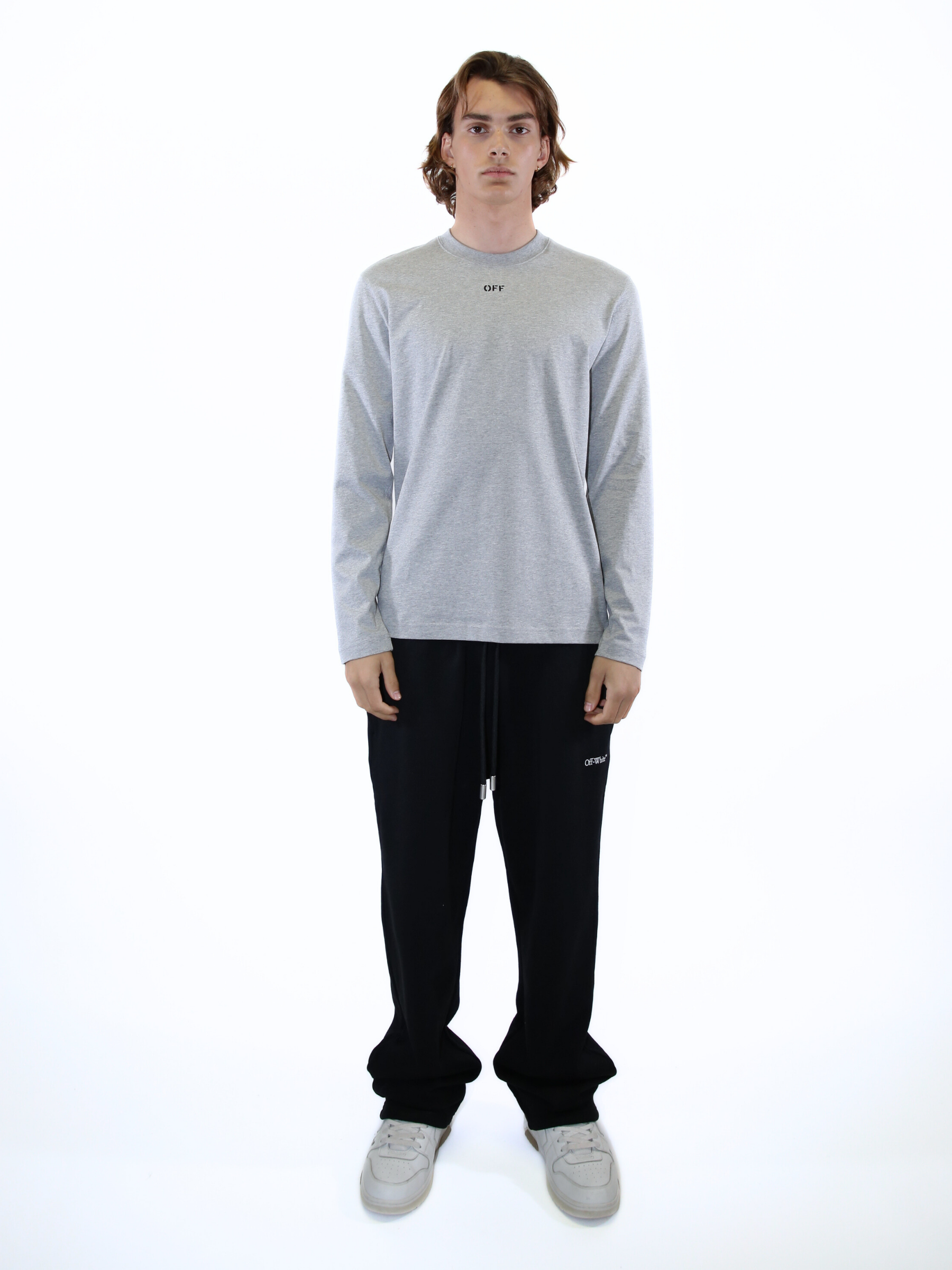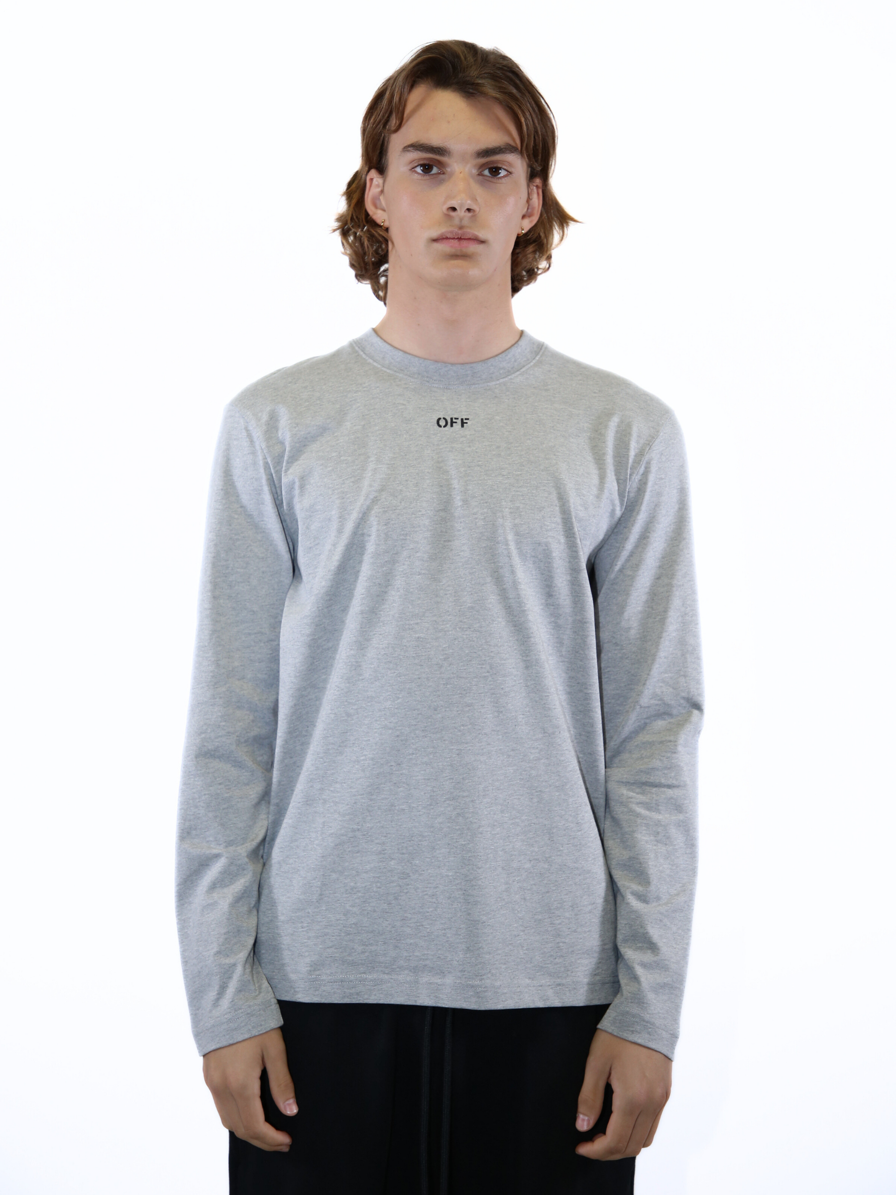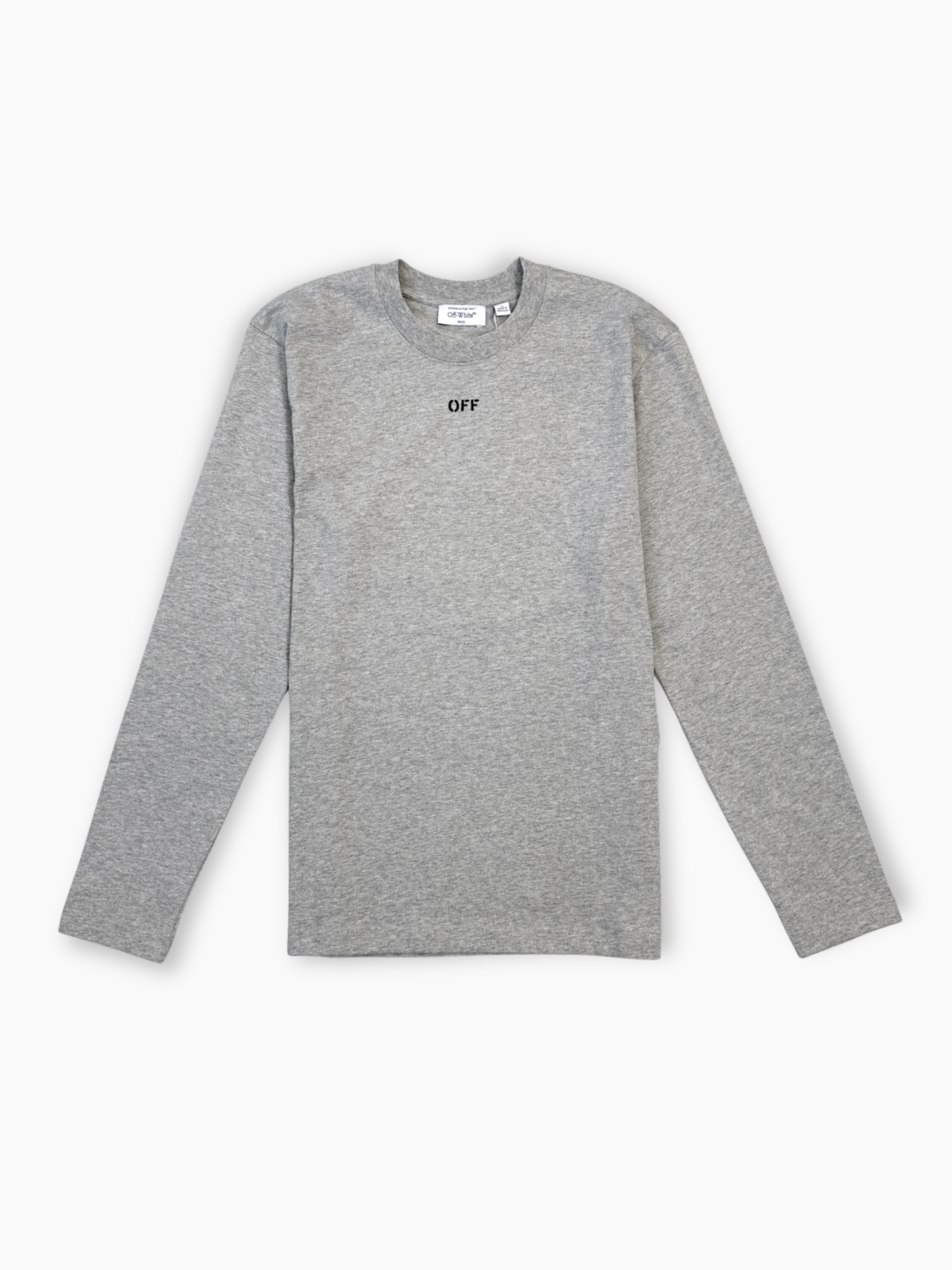 Maglia grigia a maniche lunghe firmata Off-White, realizzata in morbido cotone. Il modello presenta girocollo, stampa “OFF” sul petto e linea pulita dal design essenziale. Perfetta per look casual e contemporanei, è un capo versatile dallo stile raffinato.