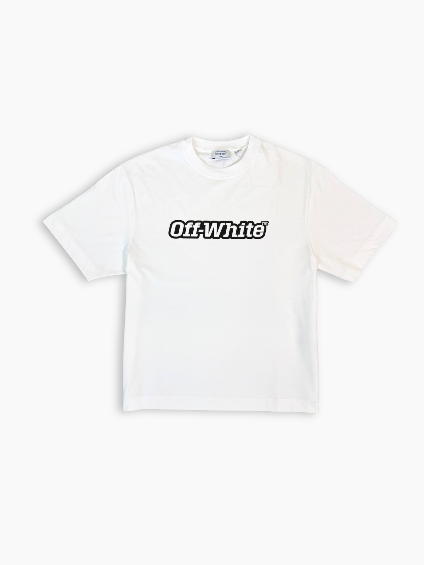 T-shirt in jersey di cotone bianco con logo “Off-White” stampato sul petto in versione outline. Un modello dallo stile minimal e contemporaneo, perfetto per completare look casual o streetwear. La texture morbida del cotone e la vestibilità rilassata garantiscono comfort e versatilità.