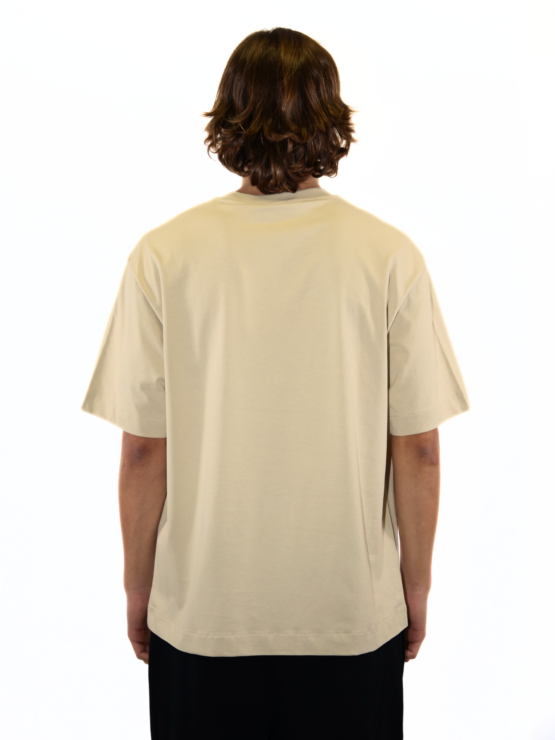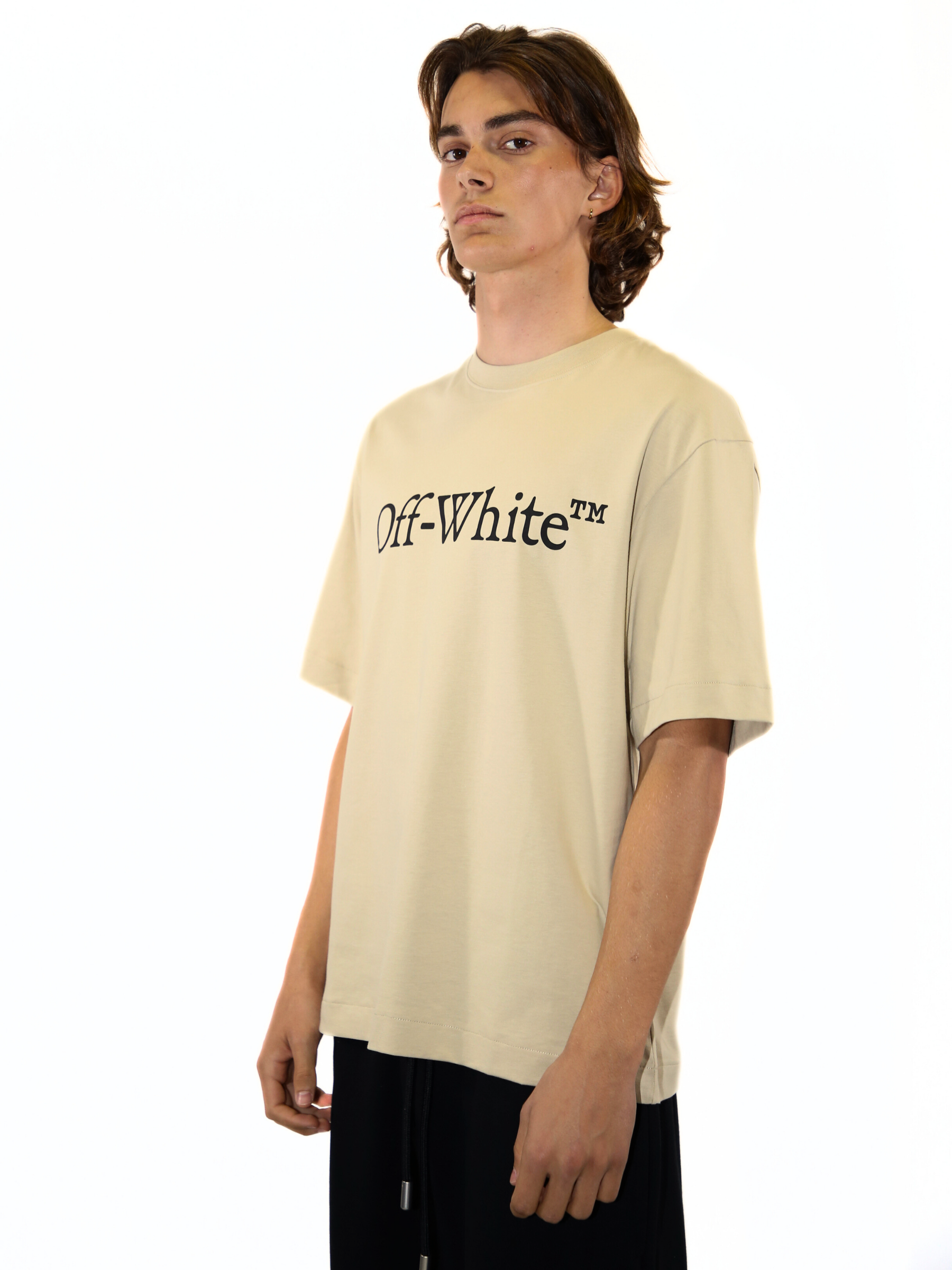 T-shirt in jersey di cotone beige con maxi logo “Off-White™” stampato sul petto. Un capo essenziale dal design pulito e sofisticato, ideale per look casual e contemporanei. La texture morbida e la vestibilità relaxed la rendono perfetta per un uso quotidiano con stile.