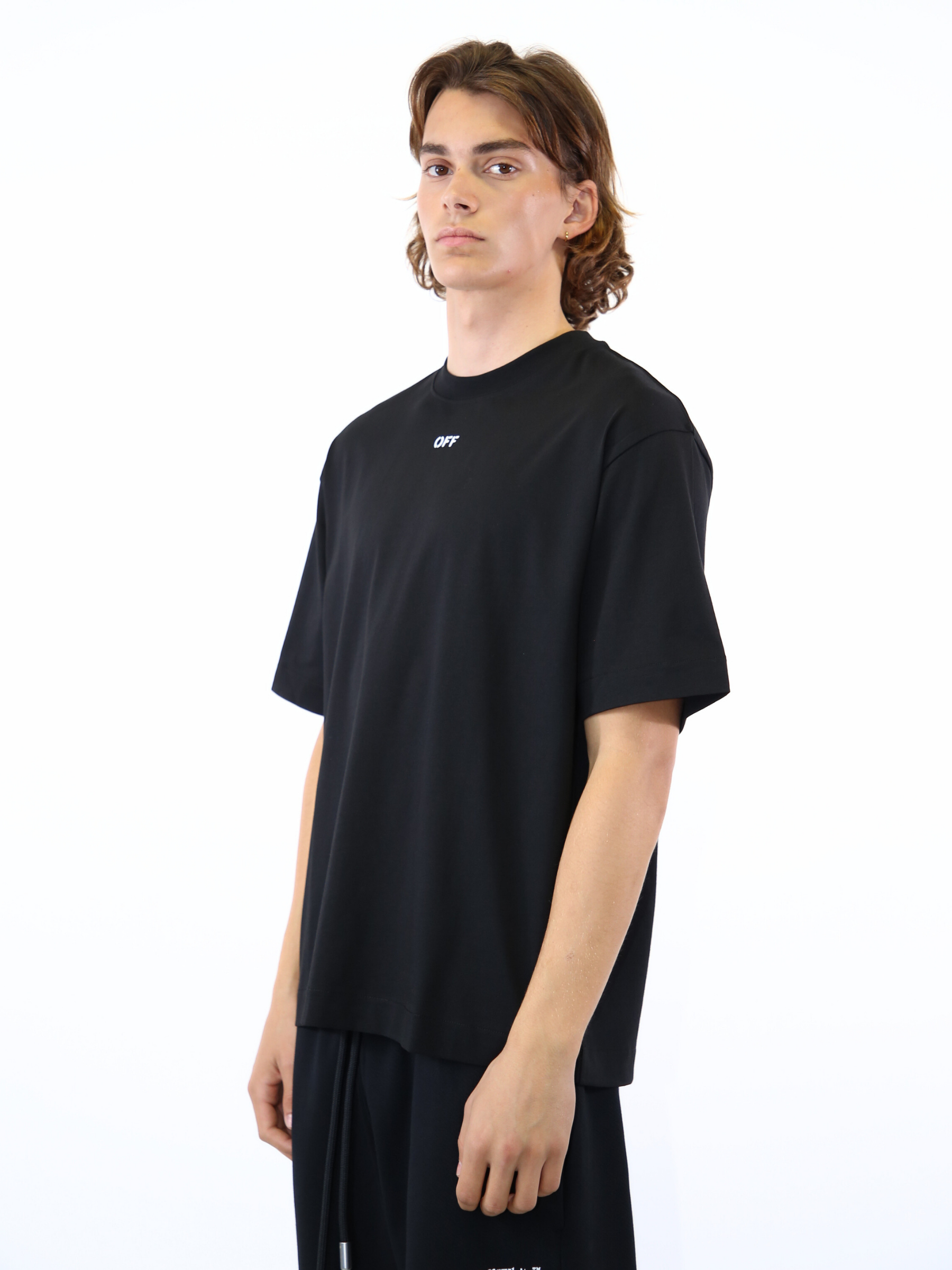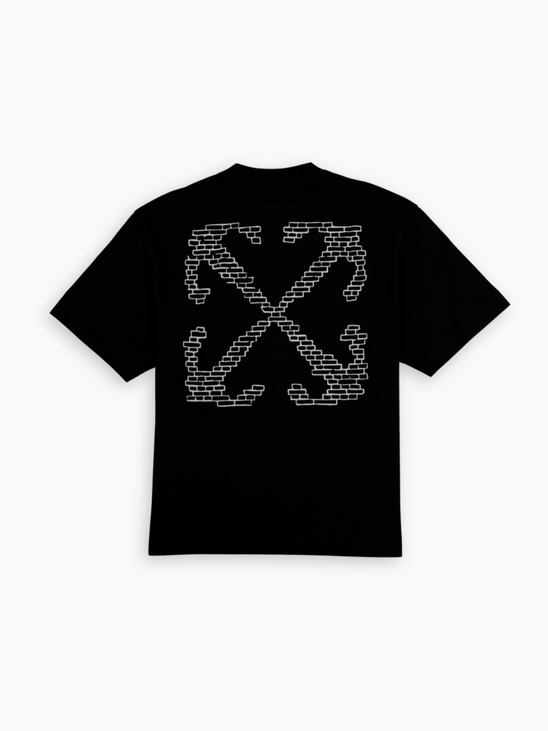 T-shirt in jersey di cotone nero caratterizzata dal logo “OFF” stampato sul petto e dall’iconica freccia “Arrow” sul retro realizzata con effetto mattoncini. Il design contemporaneo e grafico esprime l’estetica distintiva del brand, perfetta per look streetwear dal carattere deciso.