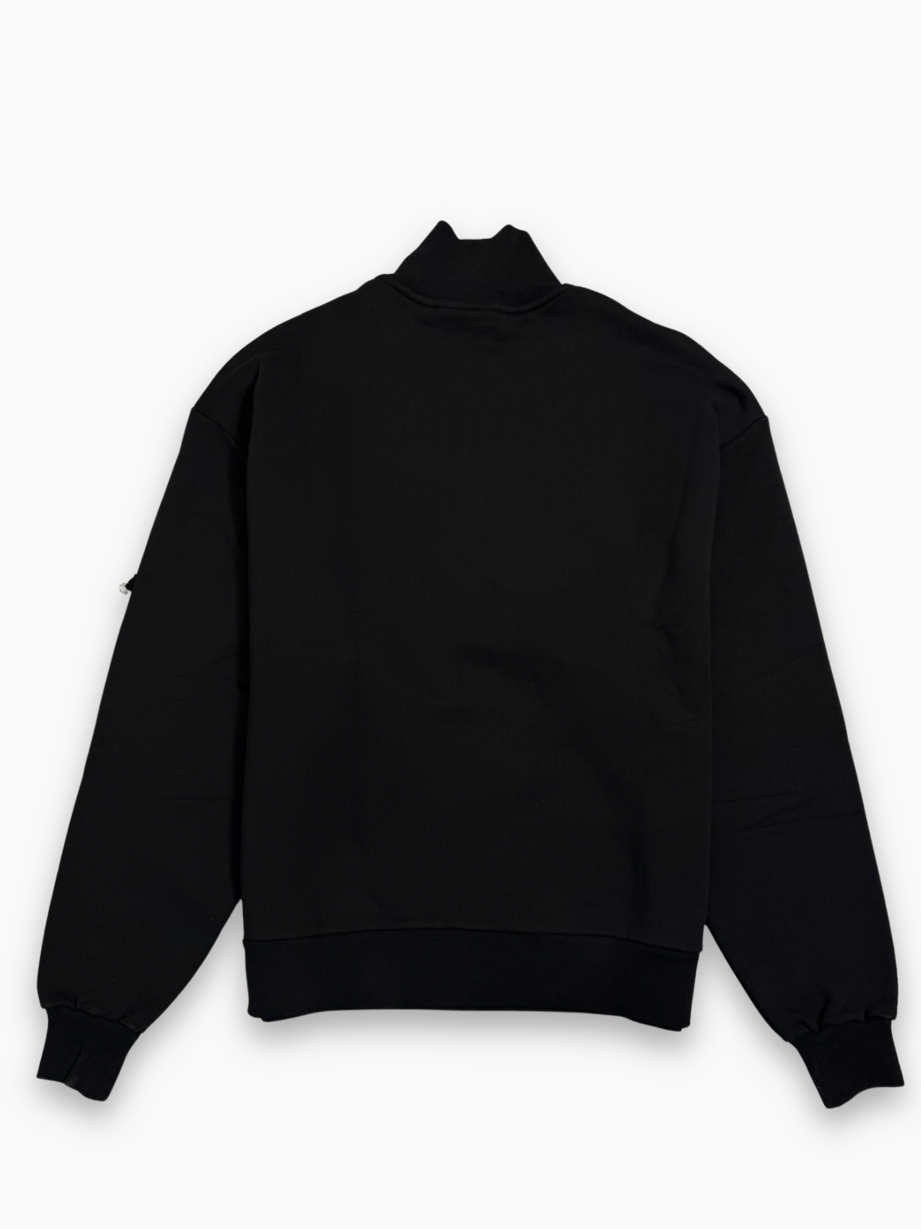 Felpa nera GCDS dal taglio regular con mezza zip frontale e maxi scritta “G.C. GCDS WEAR” ricamata sul petto. Realizzata in cotone morbido, presenta collo alto, polsini e fondo a costine per un fit confortevole e contemporaneo.