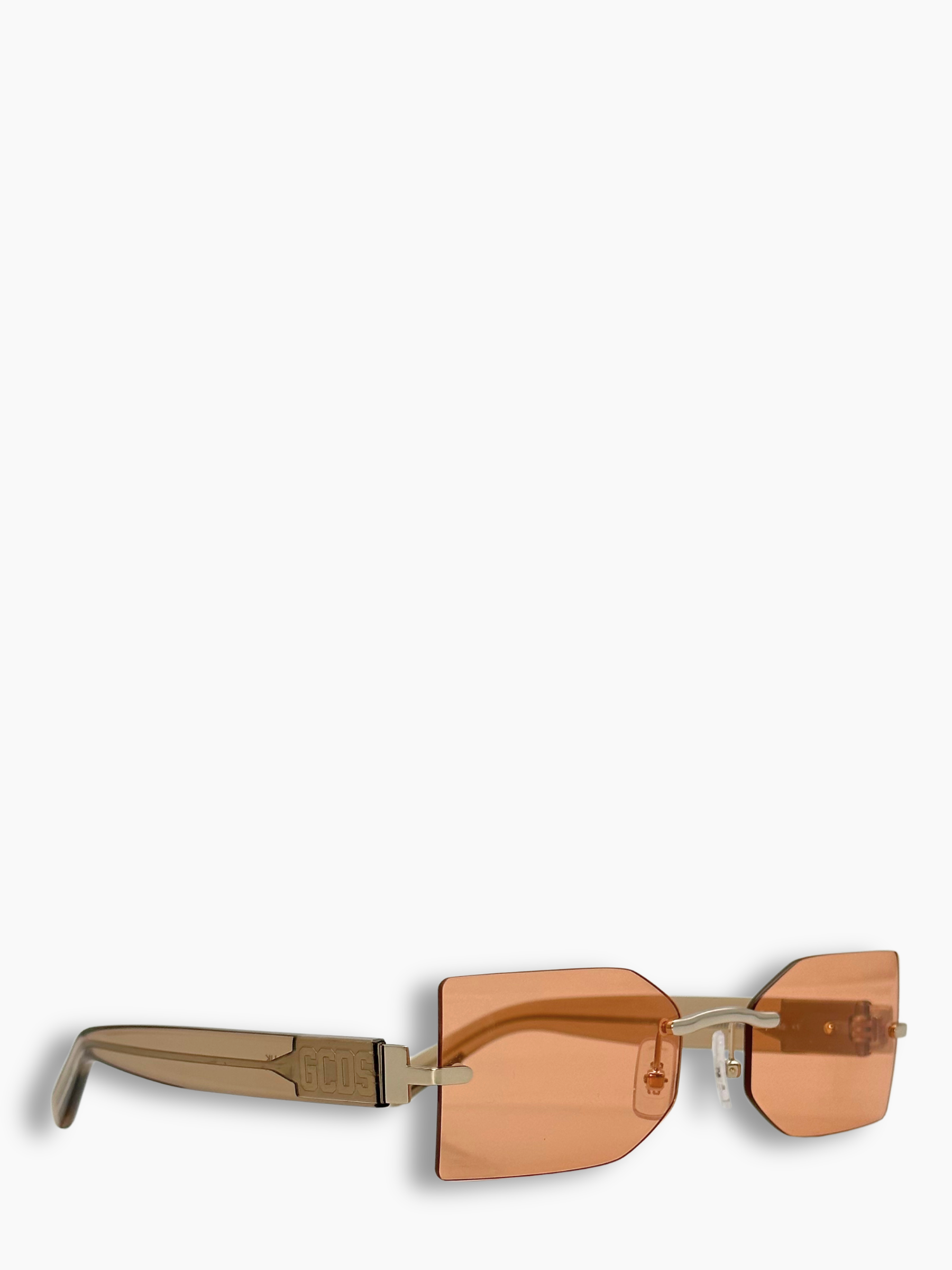 Occhiali da sole dal design minimal e ultramoderno, caratterizzati da lenti geometriche arancioni senza montatura e aste sottili in metallo. Il profilo pulito e futuristico li rende un accessorio perfetto per aggiungere un tocco fashion e distintivo a qualsiasi look. Leggeri, versatili e contemporanei.